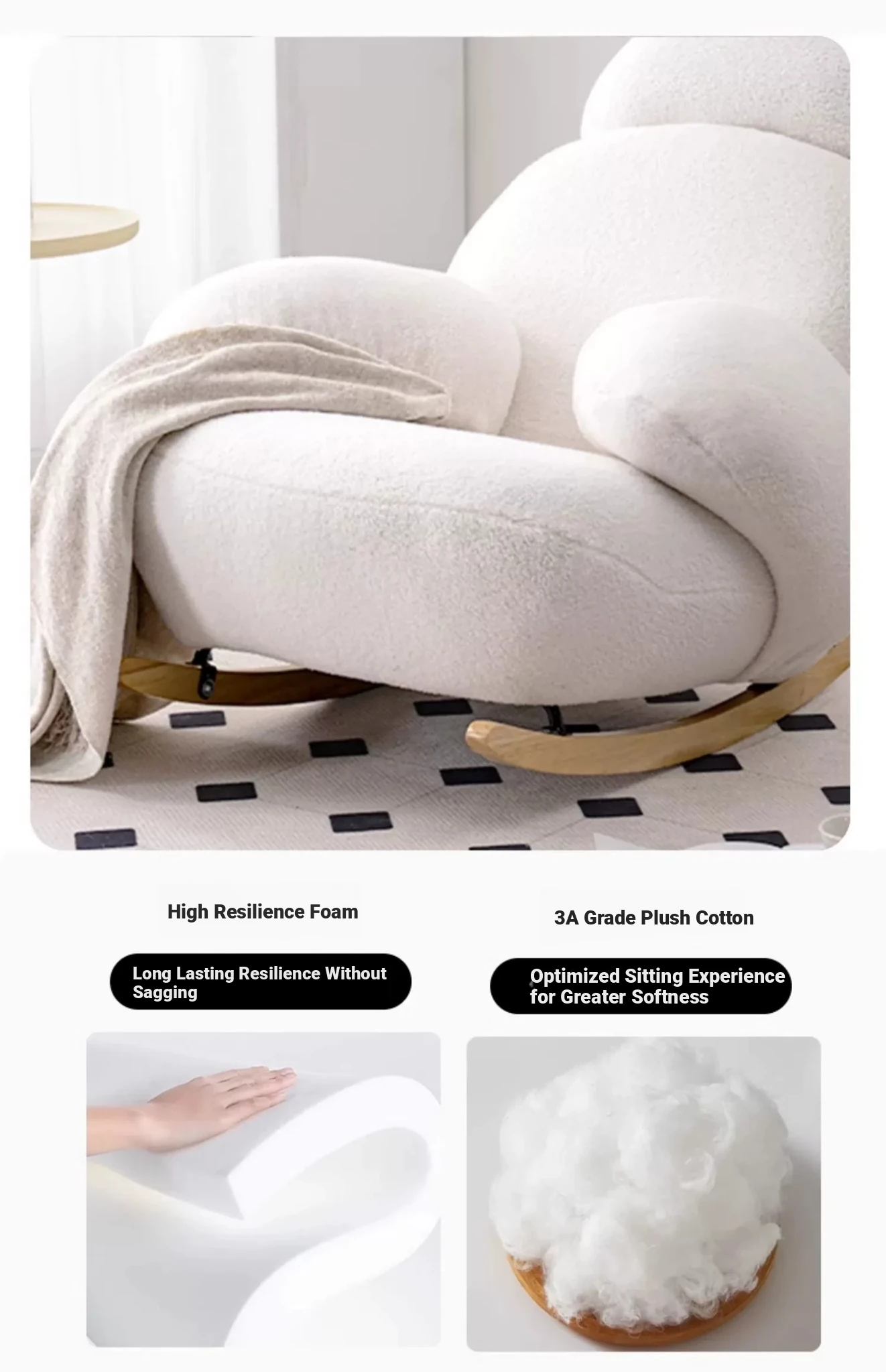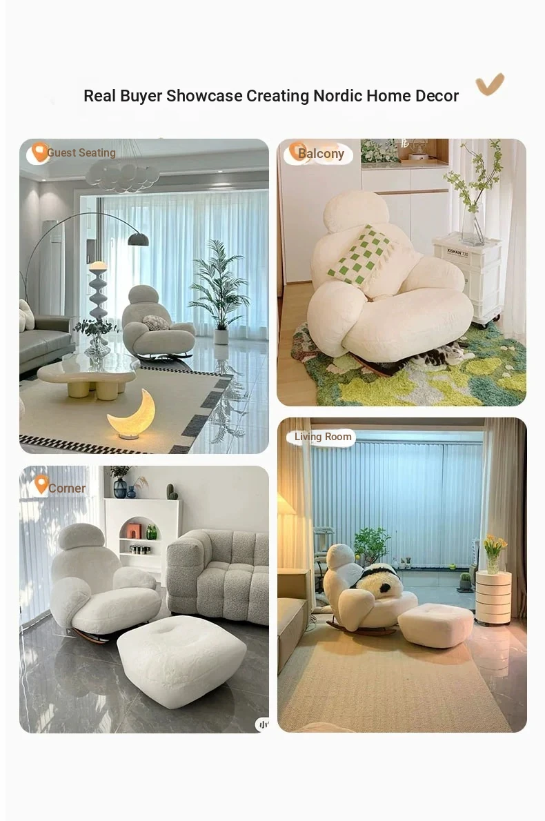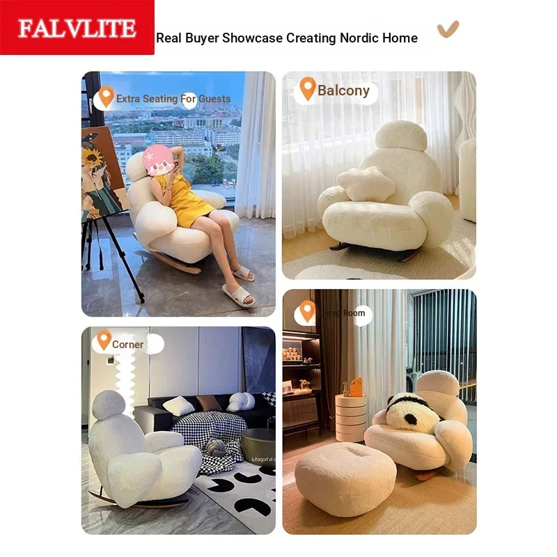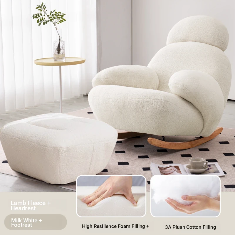 FALVLITE Cozy White Lazy Sofa Chair - Perfect for Home, Bedroom, Living Room, or Balcony - Comfortable Rocking Chair for Ultimate Relaxation