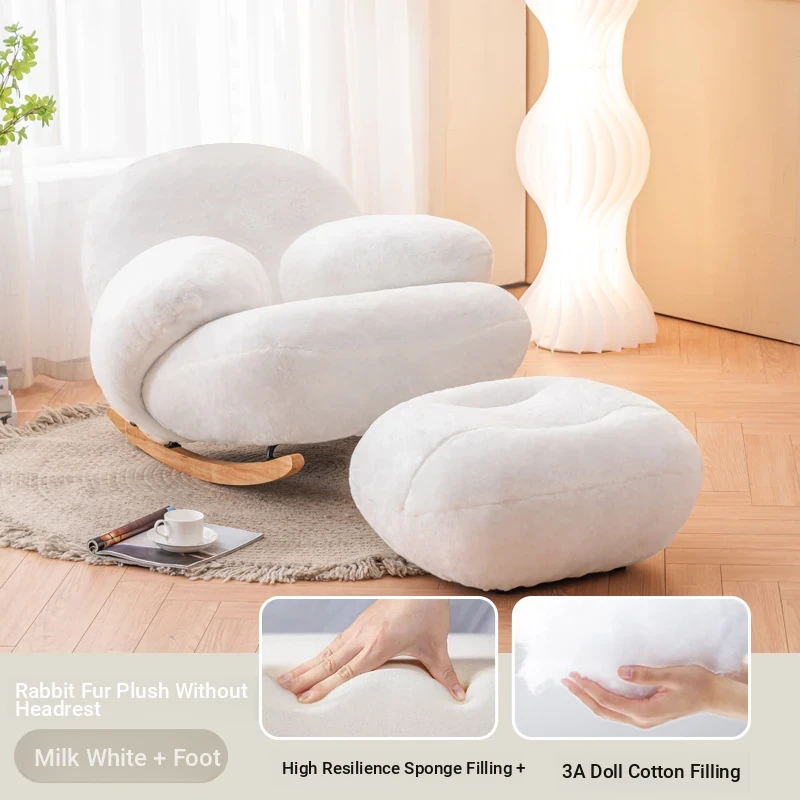 [Upgraded] Milk White + headrest + footstool [imitation rabbit fur]]