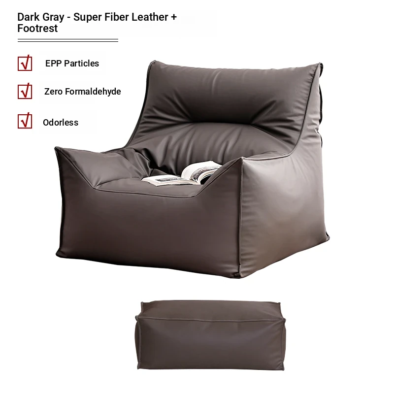 Dark gray single sofa + pedal [ultra-fiber leather]]