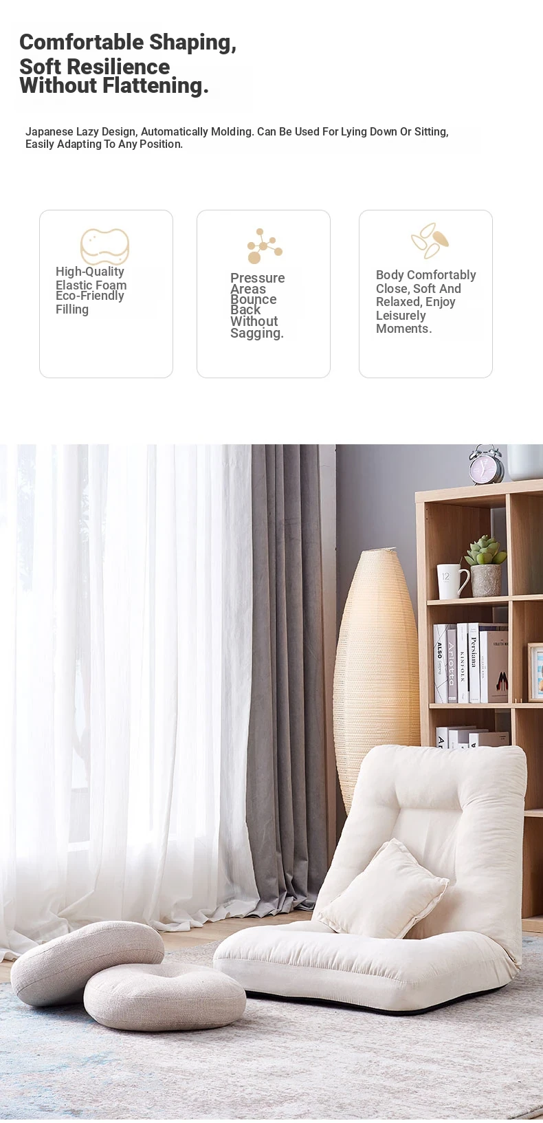 Foldable Lazy Sofa Nursing Chair - Japanese Style Tatami Single Sofa Bed for Bedroom, Balcony, and Bay Window with Comfortable Backrest