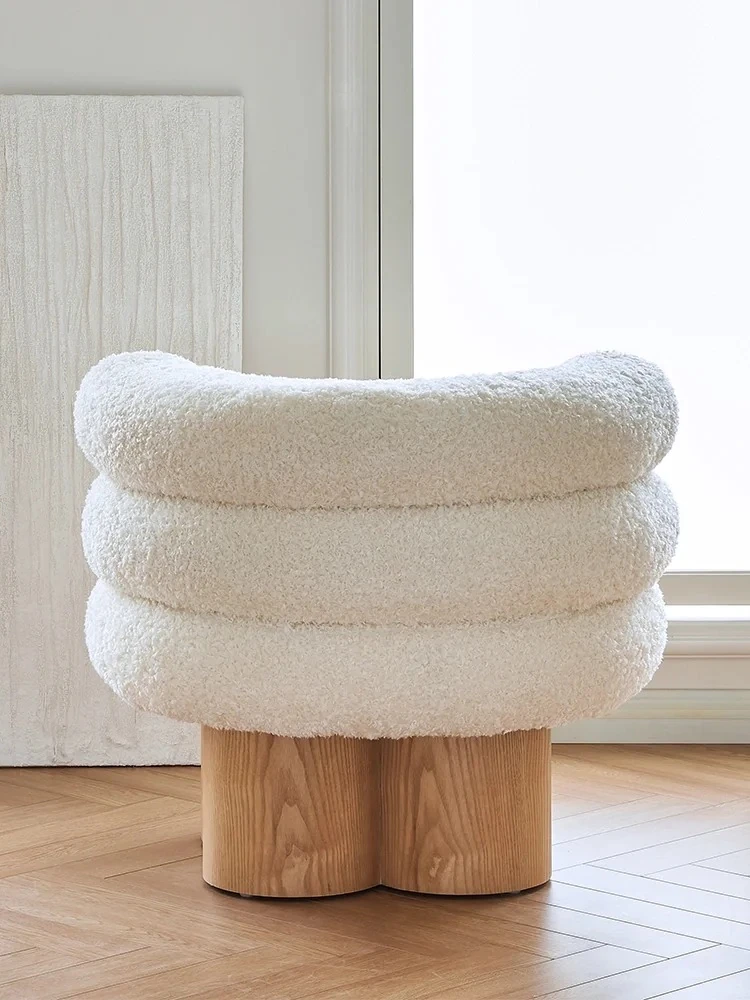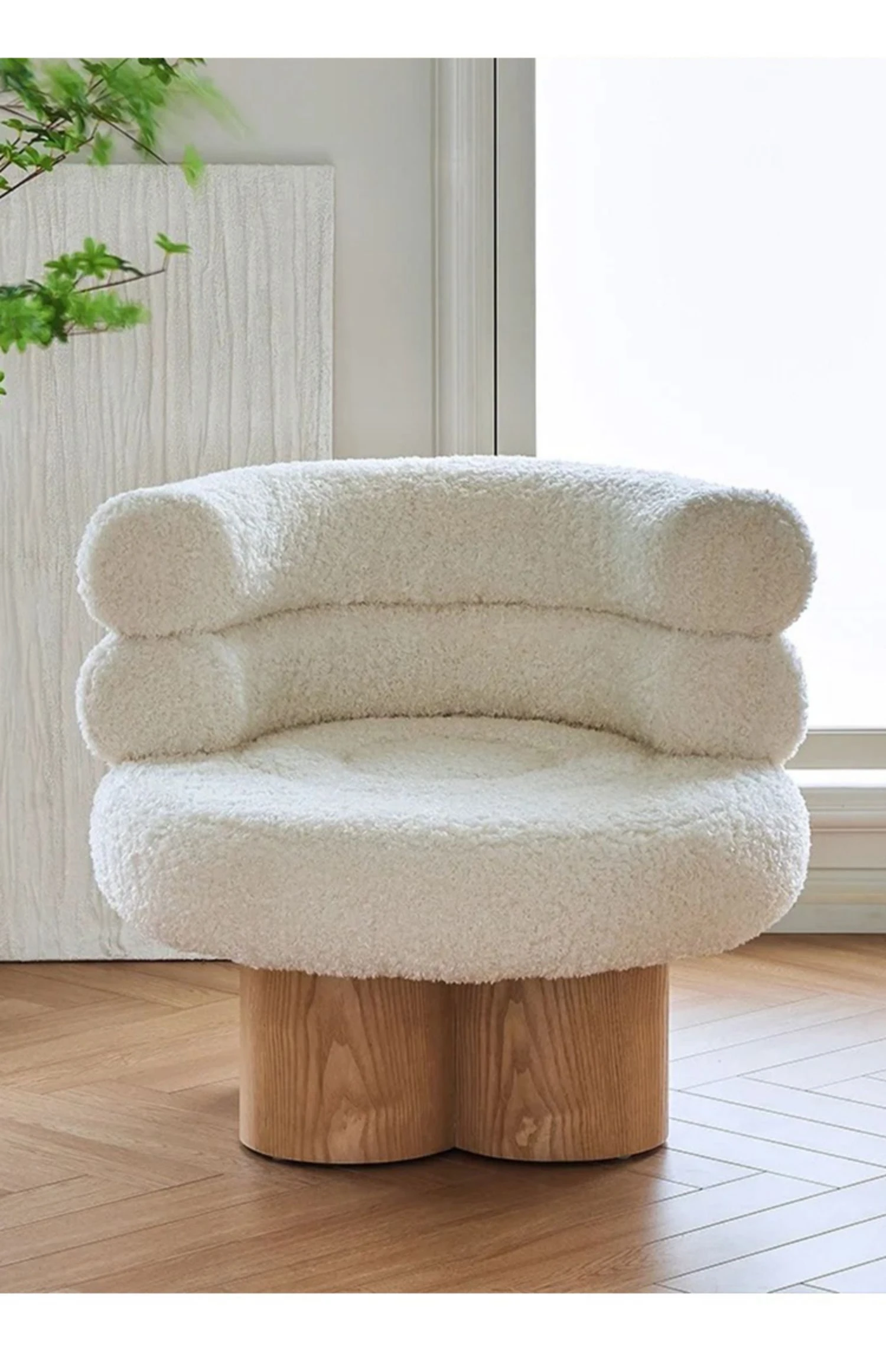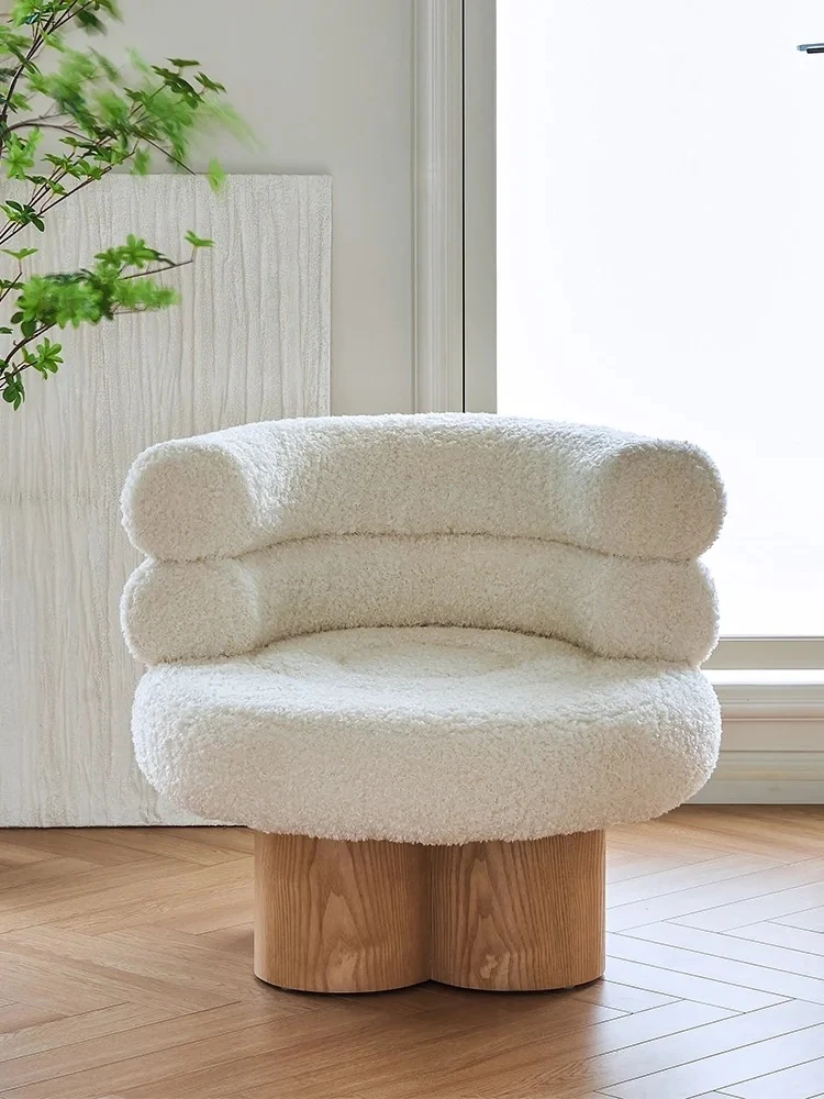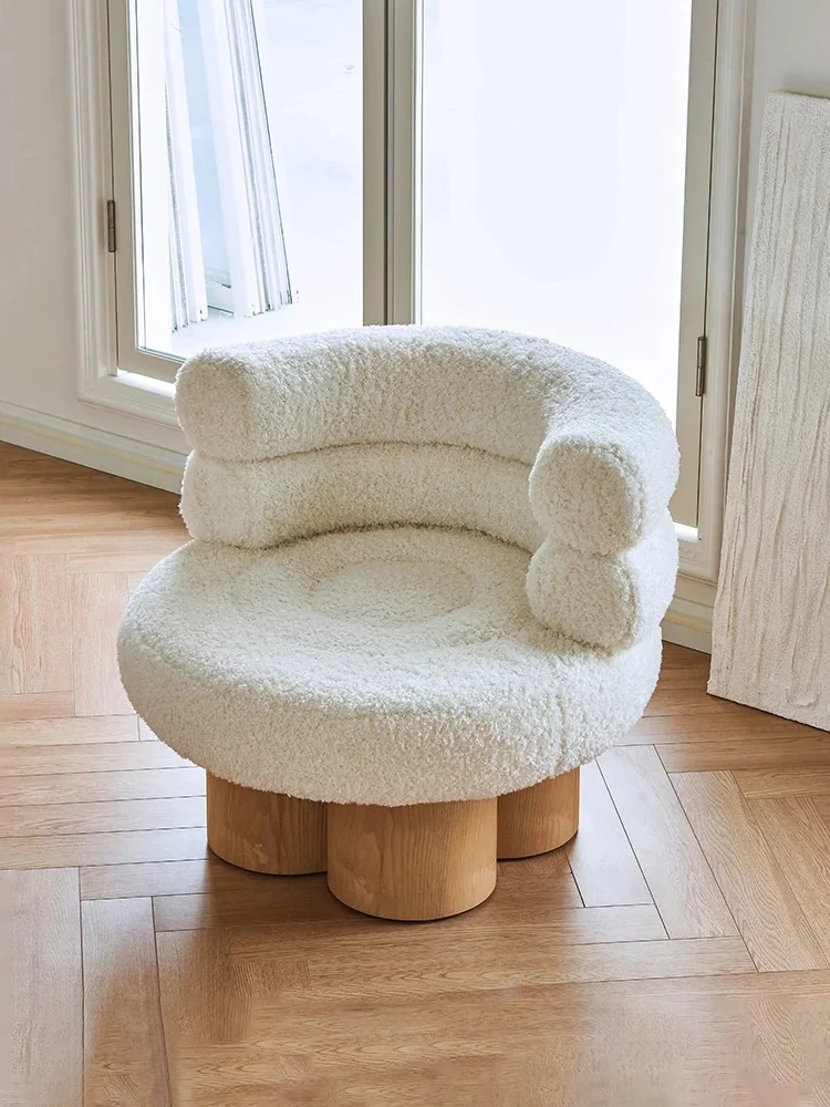 French Wabi-Sabi Style Single Sofa Chair – Cozy Cotton Candy Nordic Armchair with Solid Wood Frame and Creamy Lambswool – Designer Relaxation Seat for Your Living Room