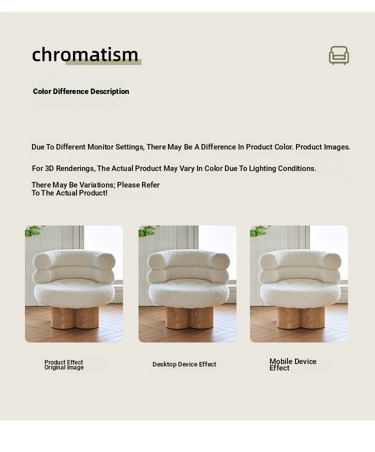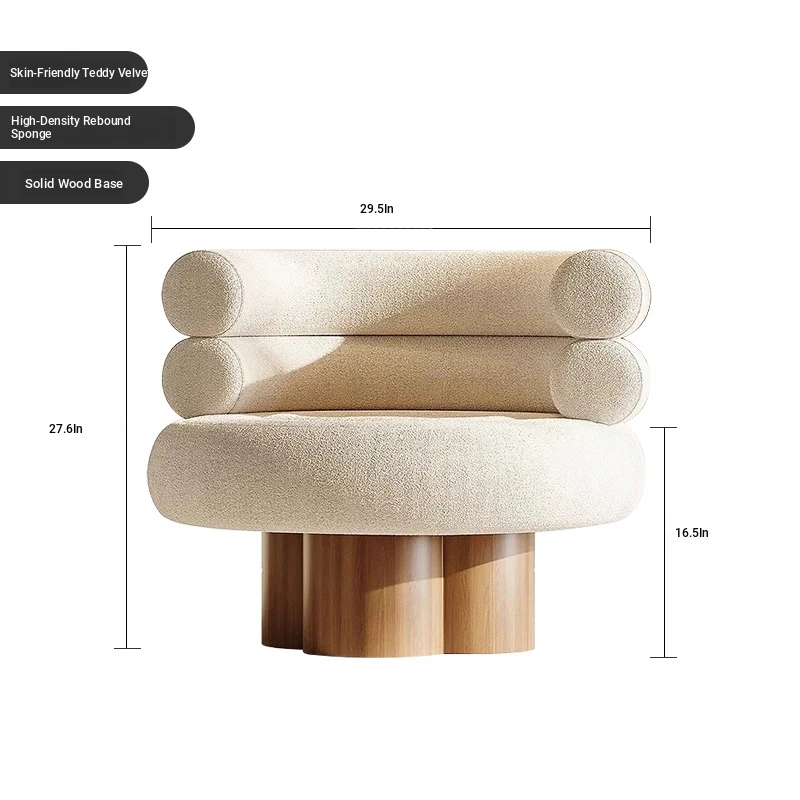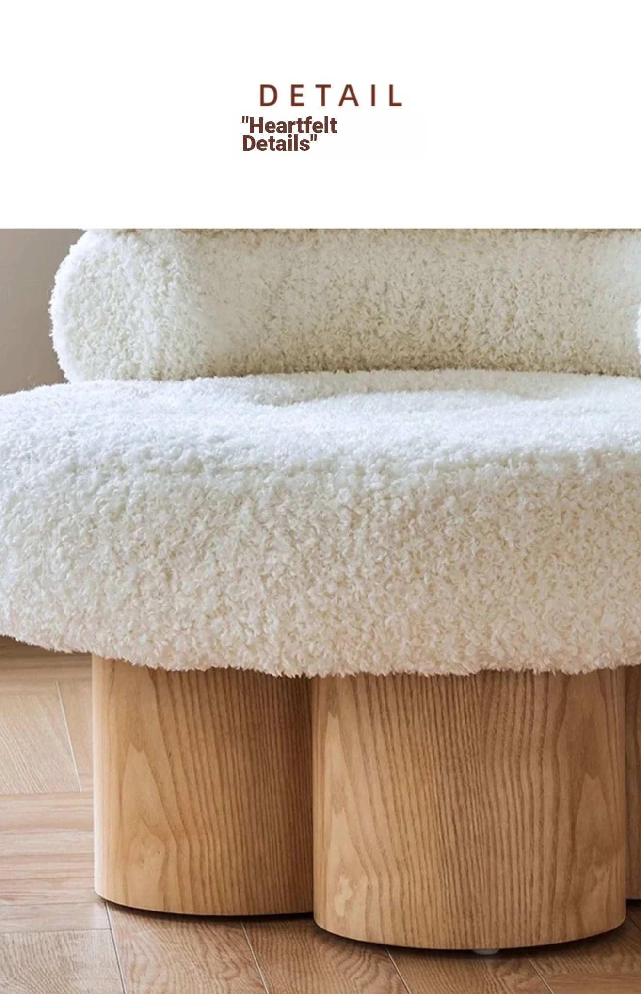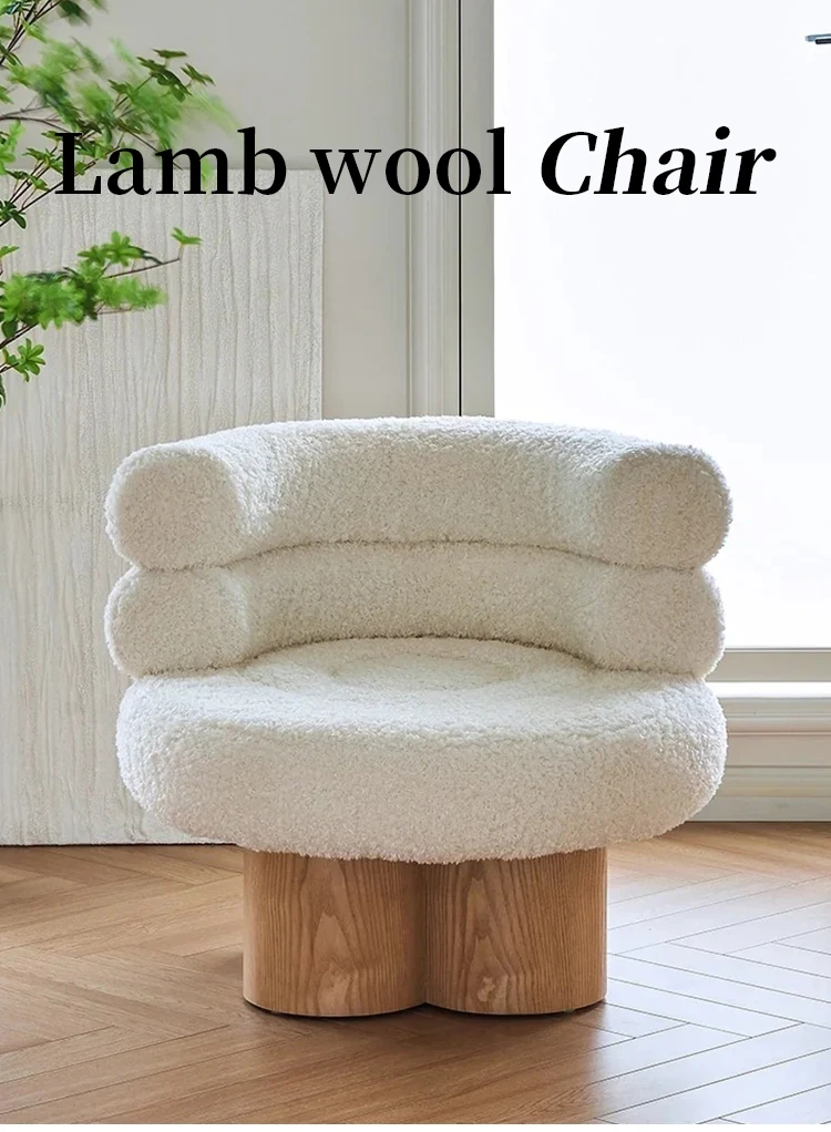 French Wabi-Sabi Style Single Sofa Chair – Cozy Cotton Candy Nordic Armchair with Solid Wood Frame and Creamy Lambswool – Designer Relaxation Seat for Your Living Room
