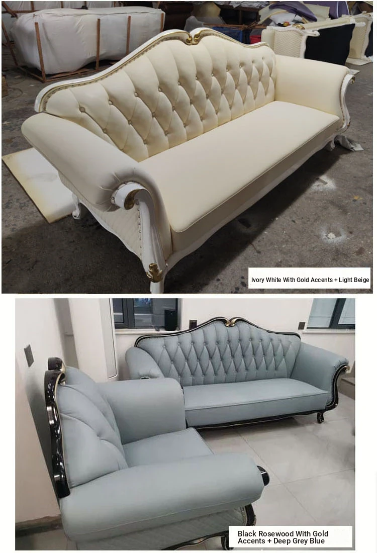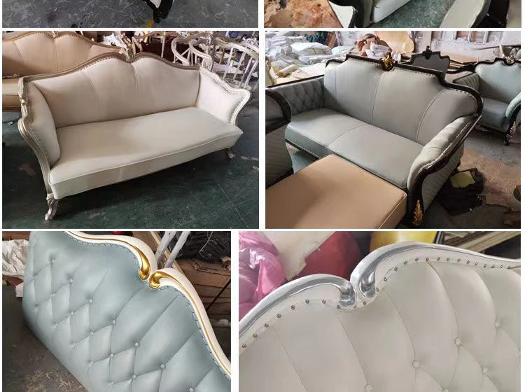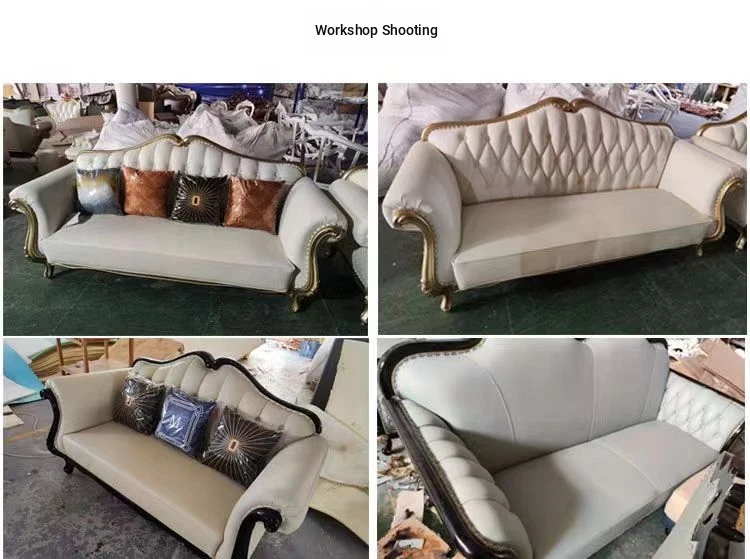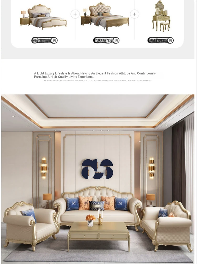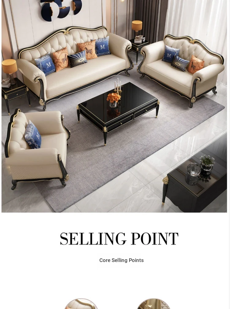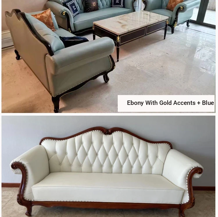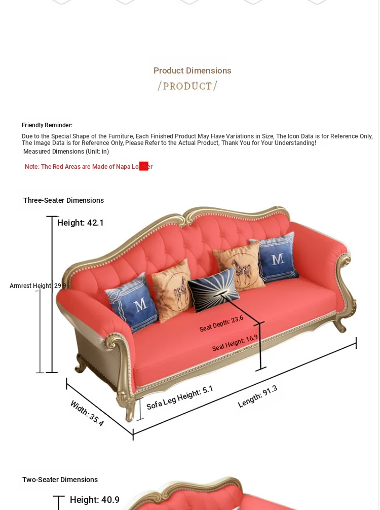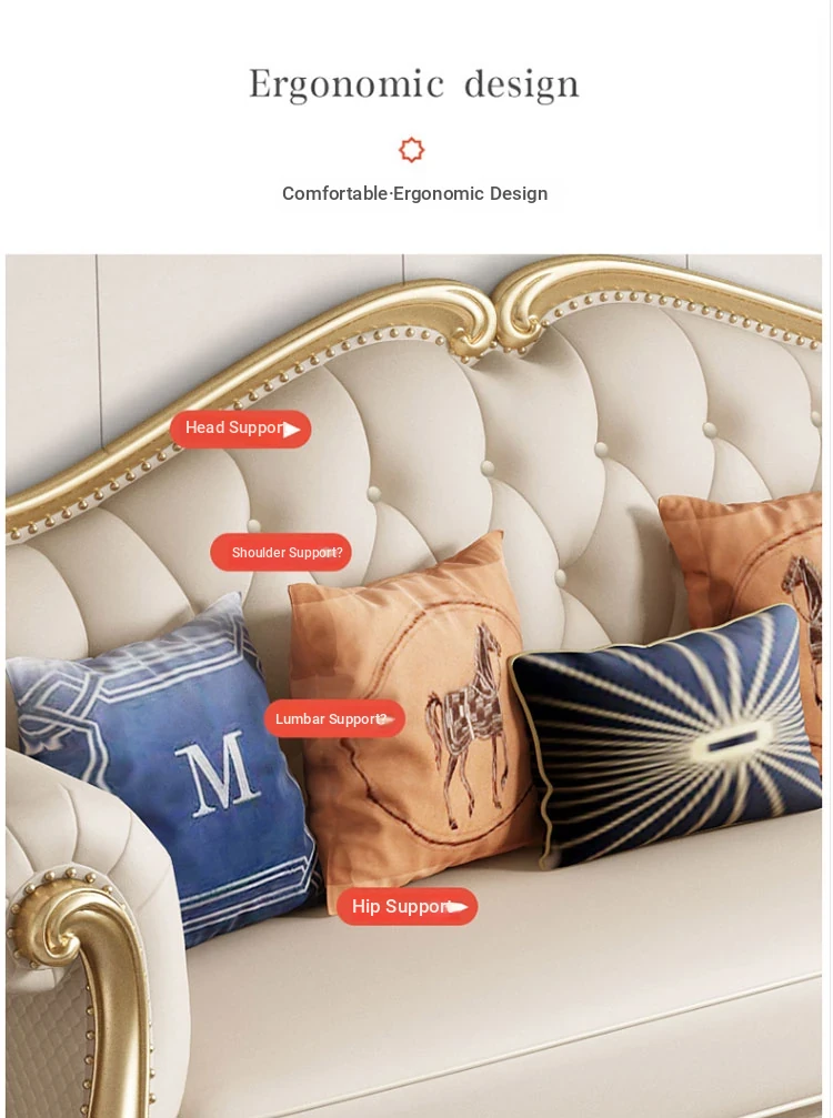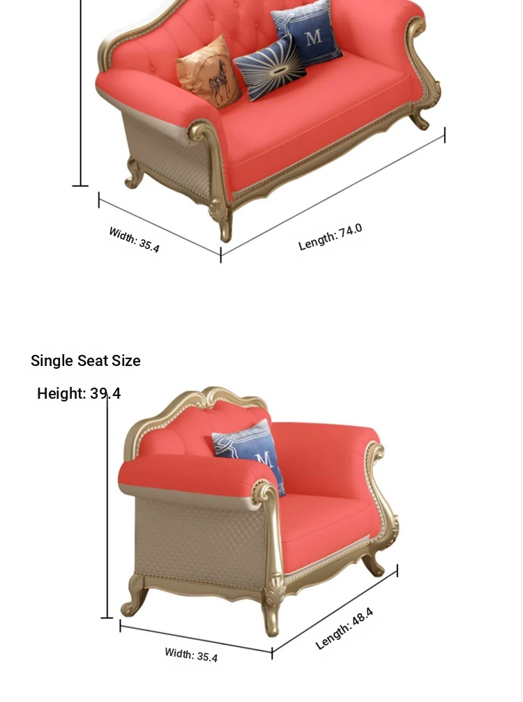 Genuine Leather Sofa Set 123 - American Light Luxury Solid Wood Carved European Style for Small Spaces - Top Grain Leather Three-Seater for Elegant Living Rooms