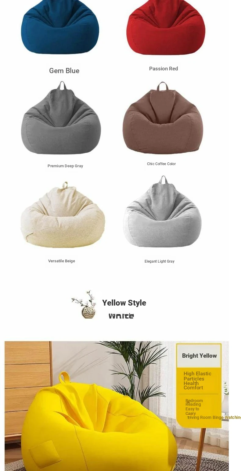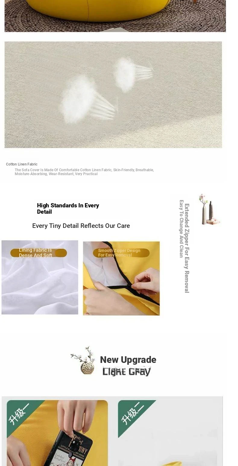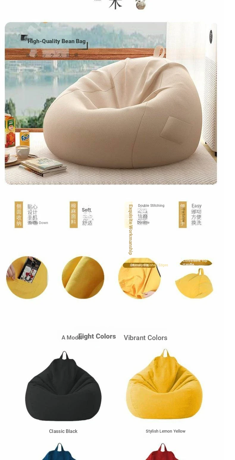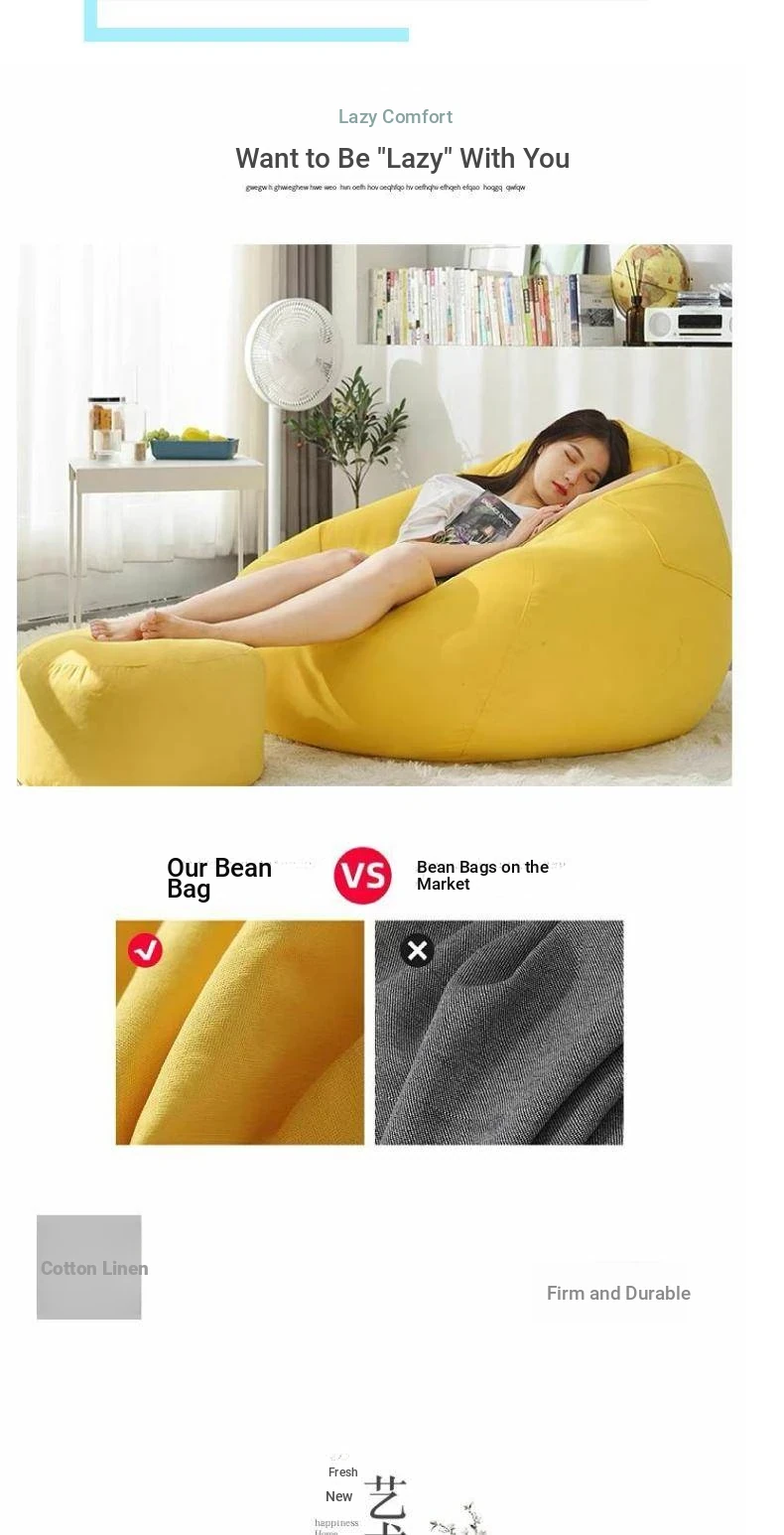Giant Cotton Bean Bag Chair Cover - Removable and Washable, Round Shape for Relaxation and Sleep, Perfect for One Person - Ideal for Lazy Comfort!