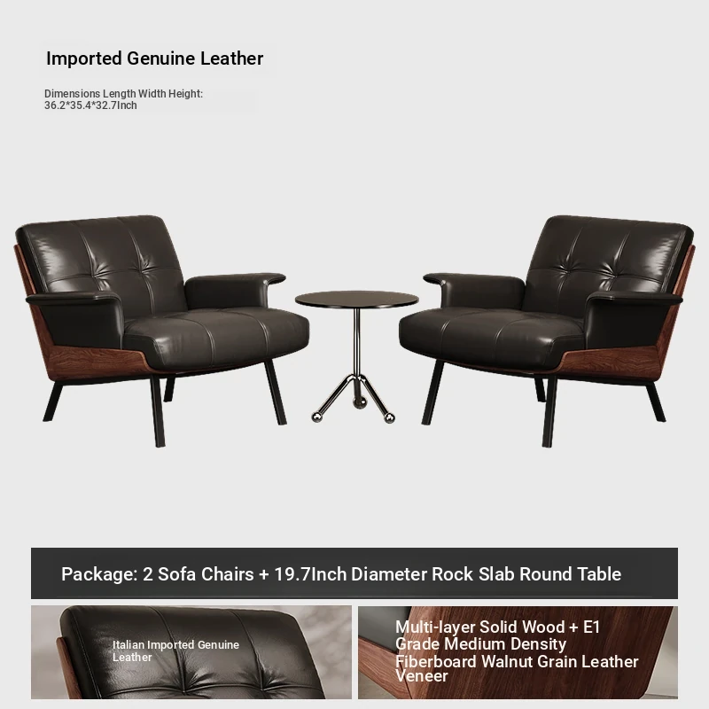 [Package: Daiki - Black leather] 2 sofa chairs + some 19.69 in on the side of the rock