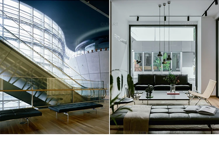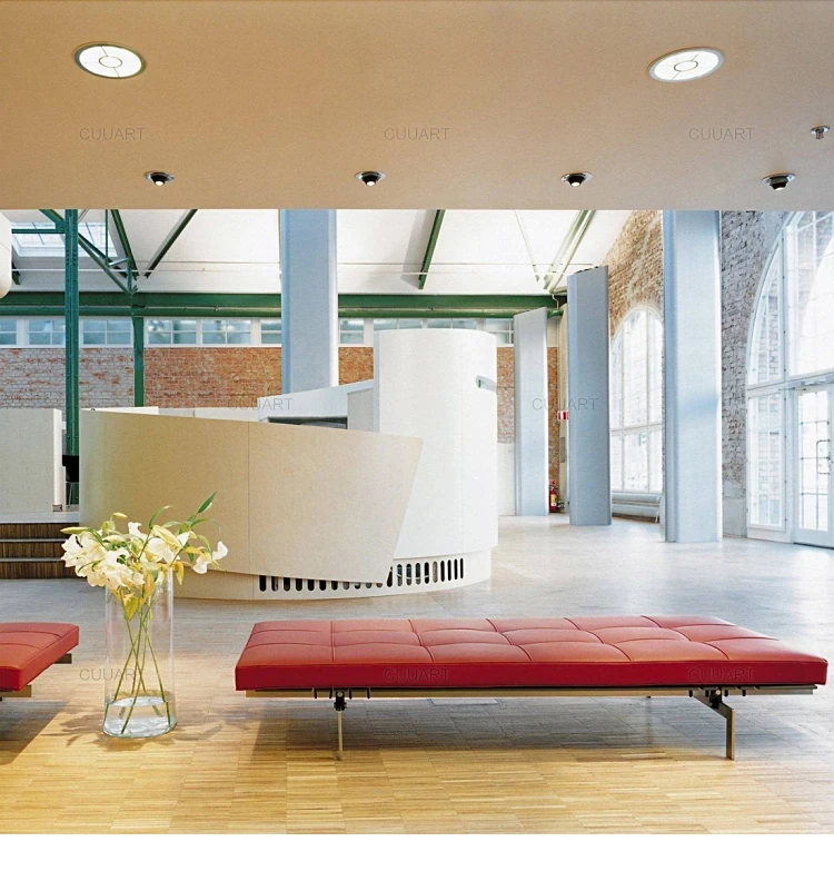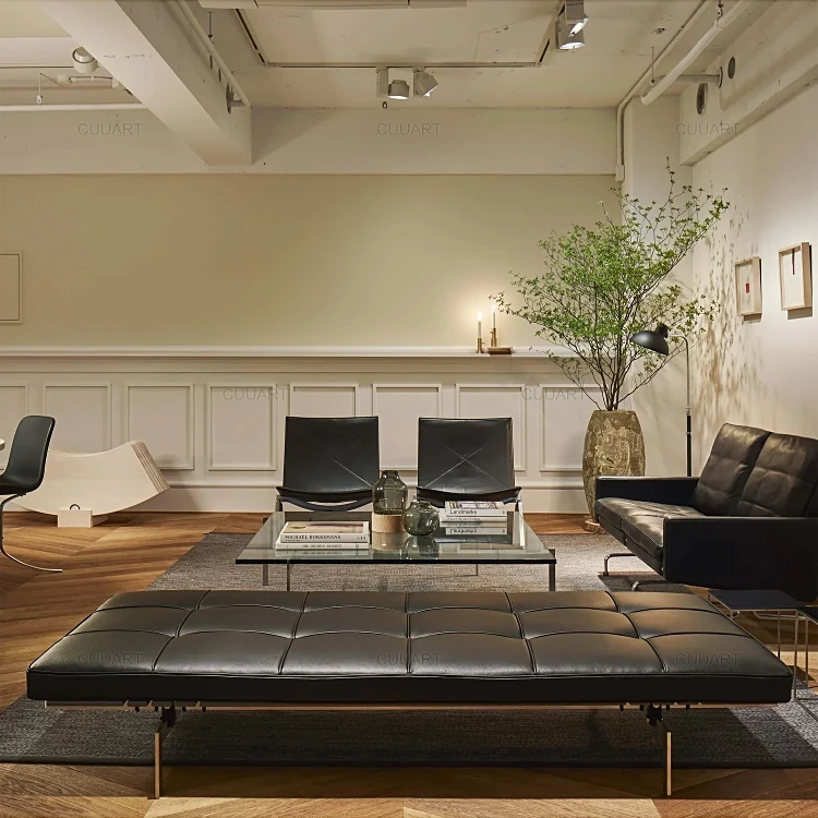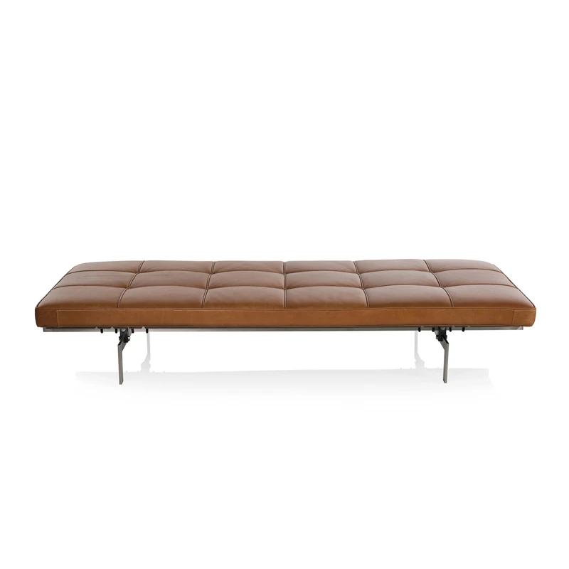 Italian Minimalist Leather Daybed Sofa - PK80 Designer Lounge Bench for Office Meetings and Relaxation
