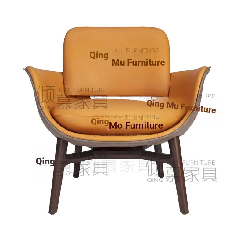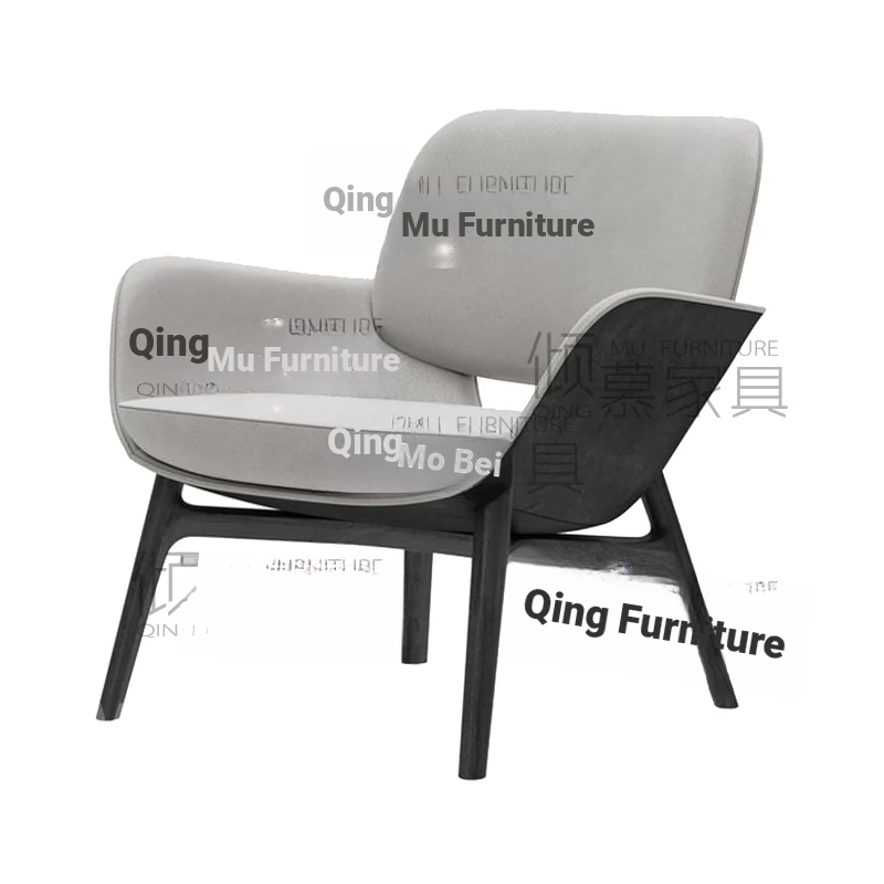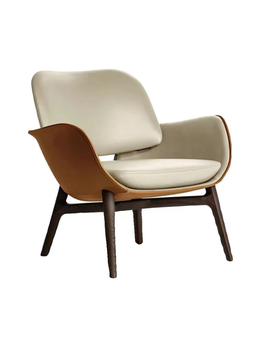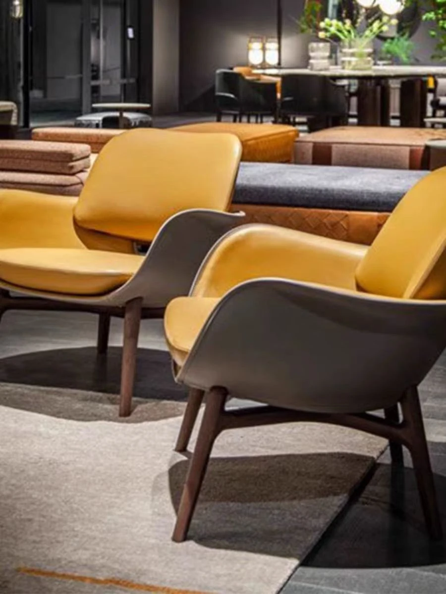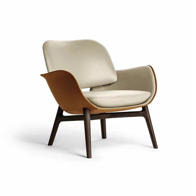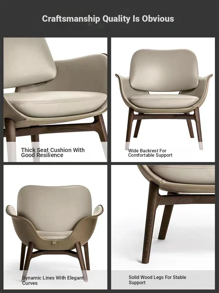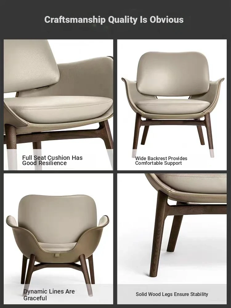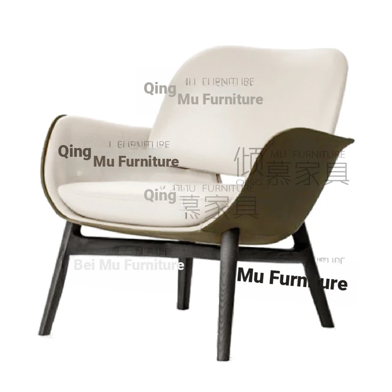 Italian Minimalist Solid Wood Sofa Chair - Perfect for Model Rooms, Living Rooms, and Sales Offices. Stylish Single Leisure Chair for Office and Nordic Style with Armrests.