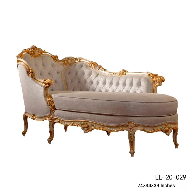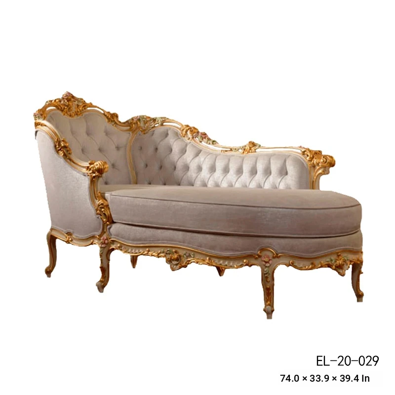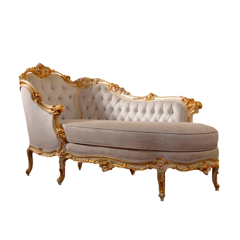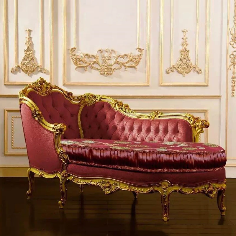 Julian European Style Solid Wood Chaise Lounge - French Luxury New Classical Heavy-Duty Carved Upholstered Single Sofa Bed, Perfect for Elegant Living Spaces