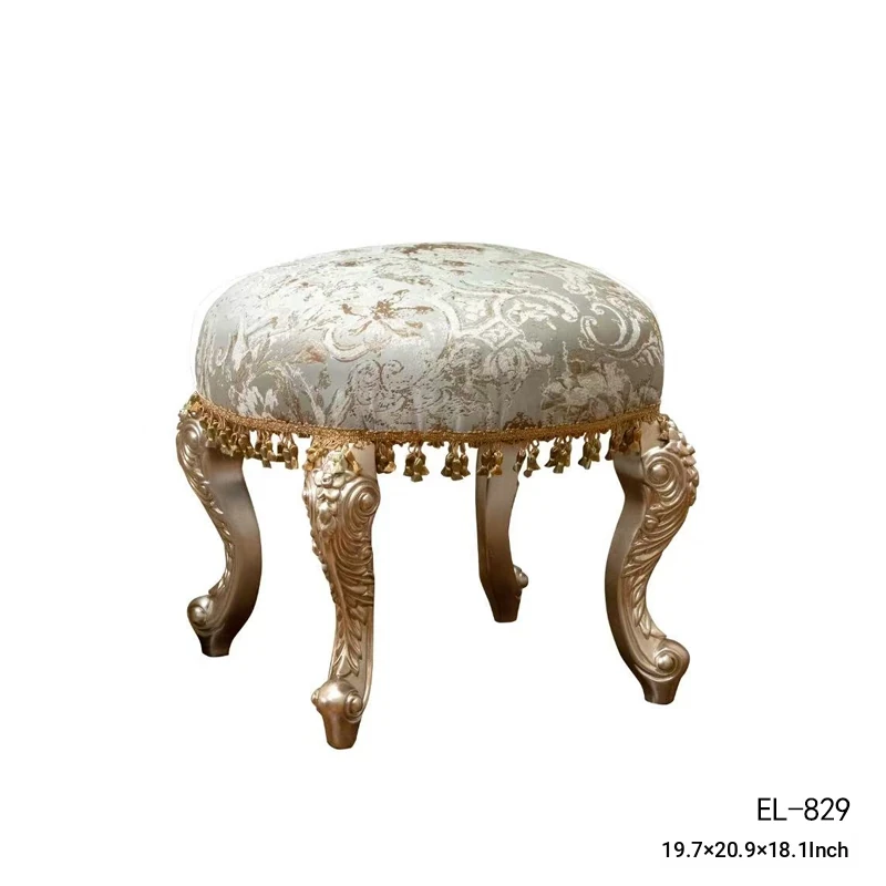 Julian French Luxury Handcrafted Living Room Stool - Elegant Carved Accent Seat for Hallway, Villa, or Bedroom Vanity. Perfect for Relaxation and Style!