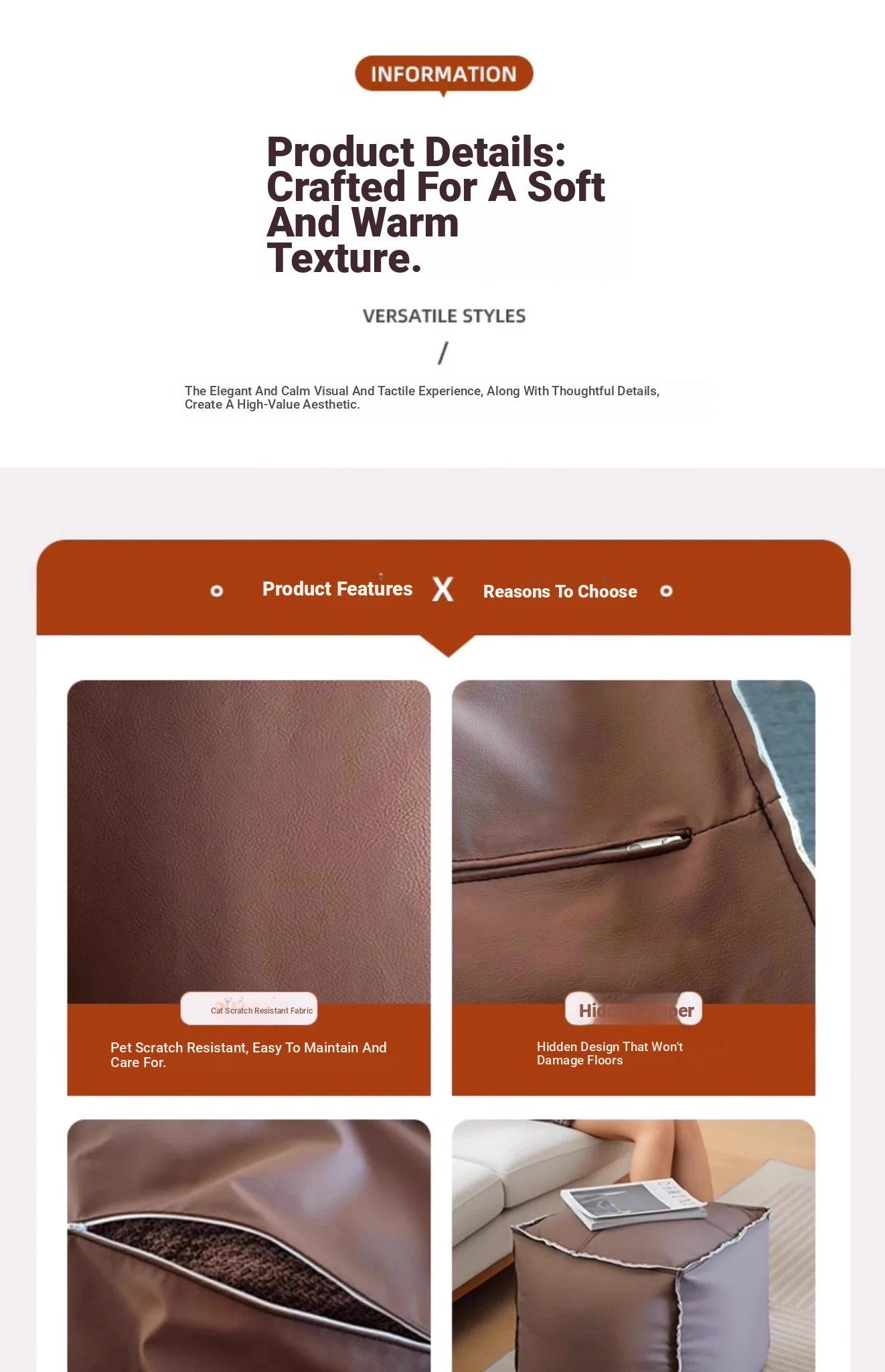 Rectangular Brown 27.56in*27.56in*11.81in-cat scratch leather (excluding fillers to fill old clothes)