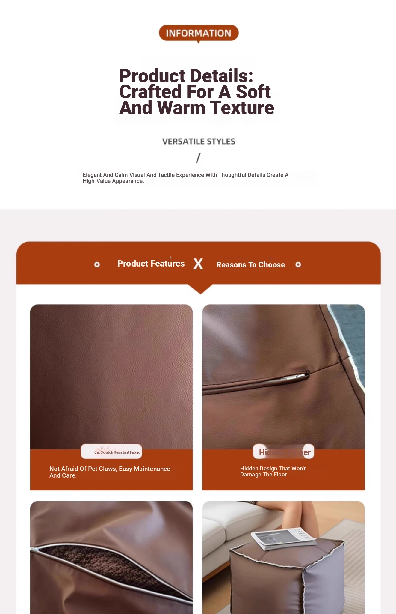 Rectangular Brown 27.56in*27.56in*11.81in-cat scratch leather (excluding fillers to fill old clothes)