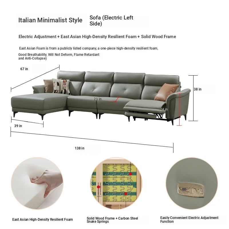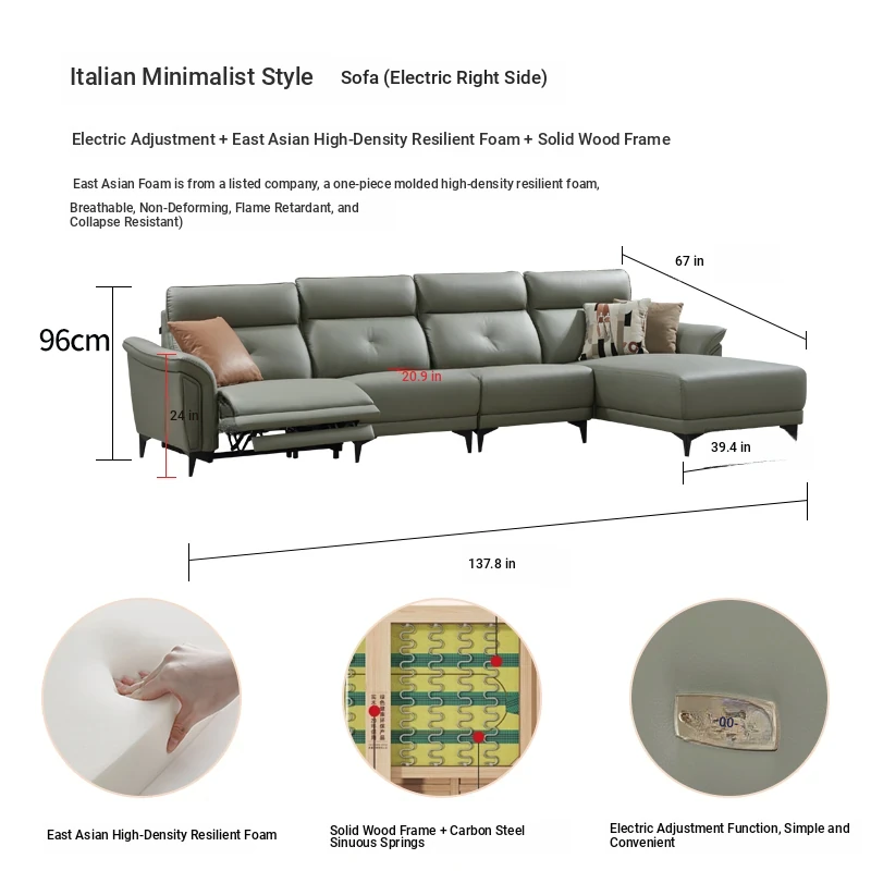 Luxury Electric Adjustable Corner Chaise Lounge Sofa Set - Italian Minimalist Multi-Functional Living Room Furniture, Trendy Design for Modern Homes