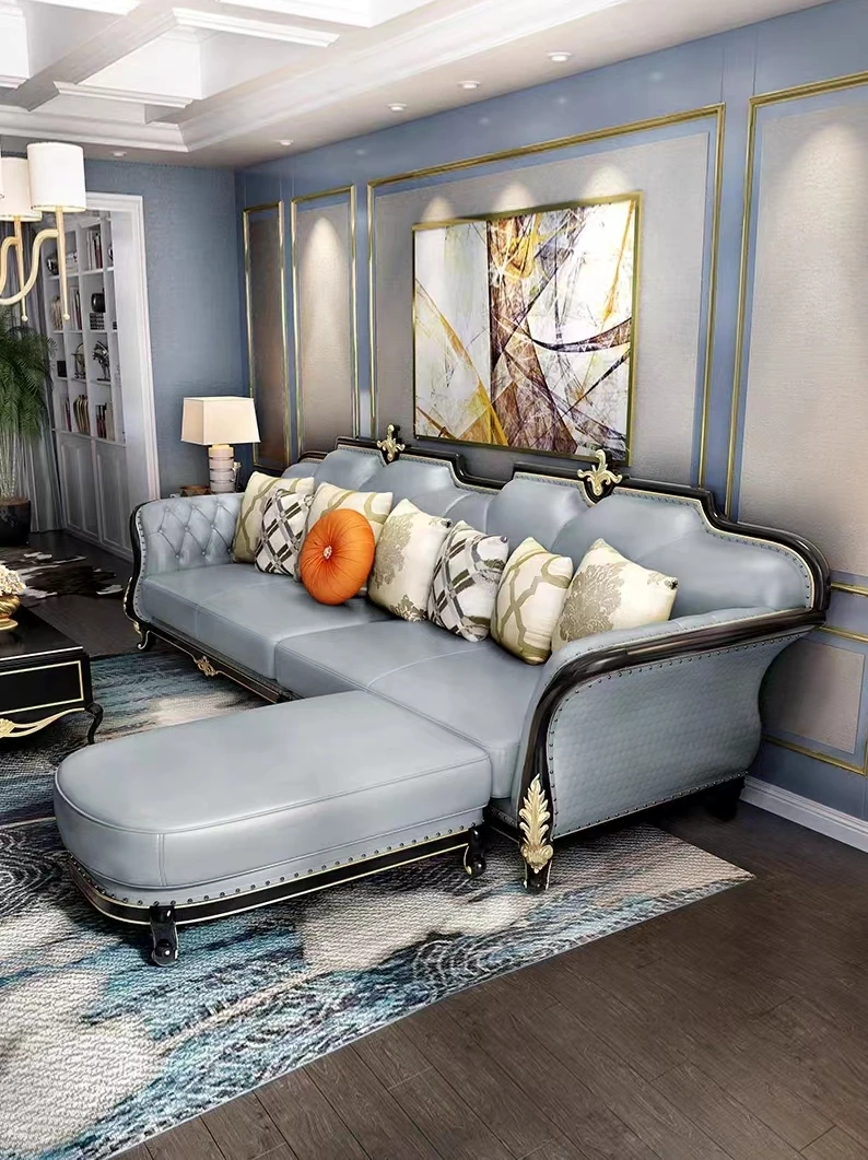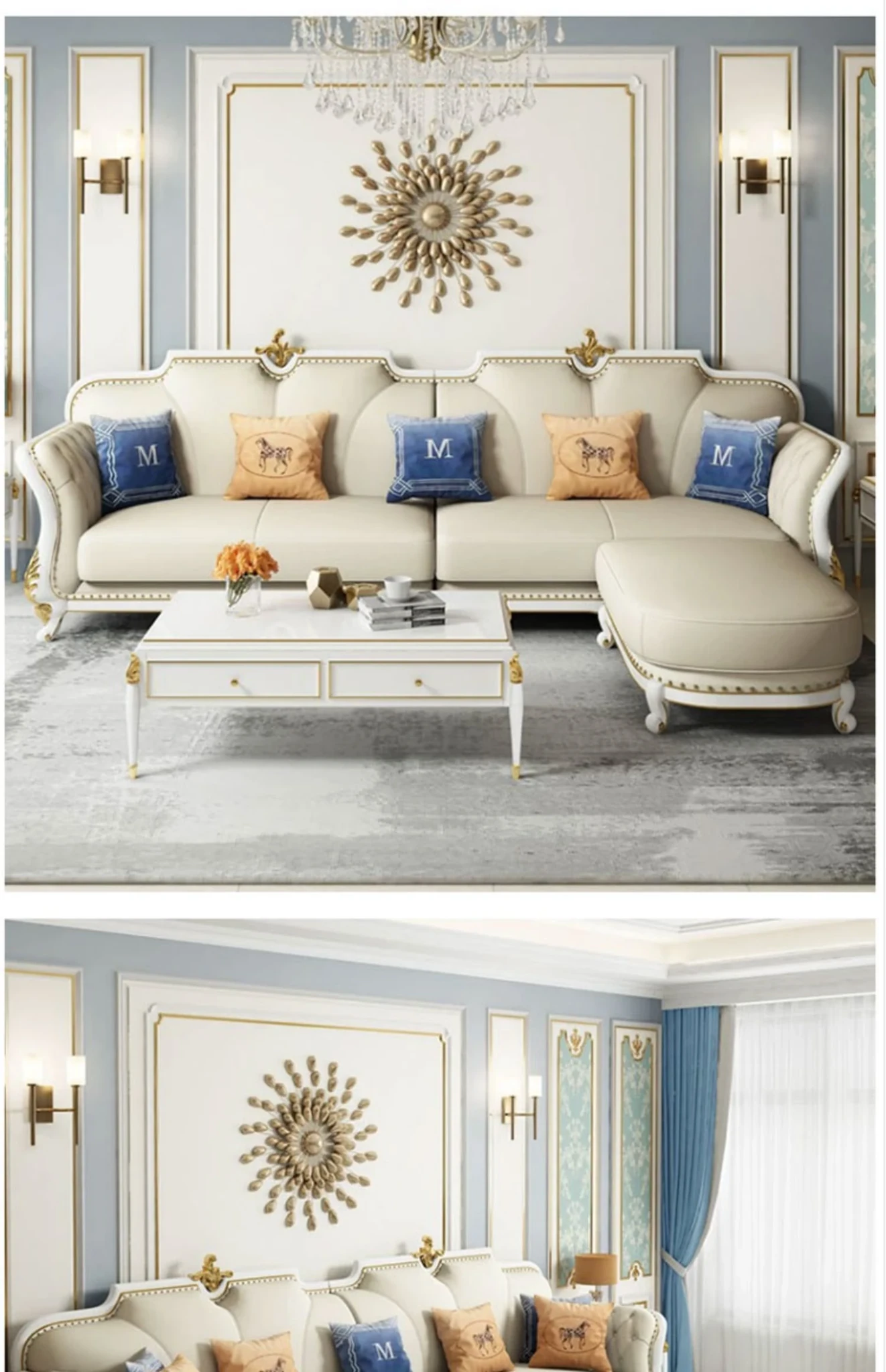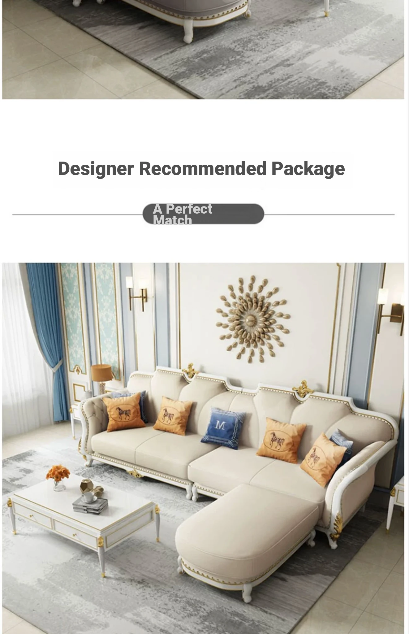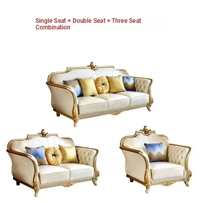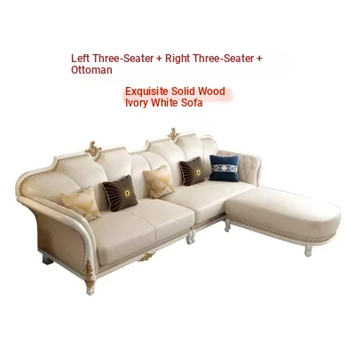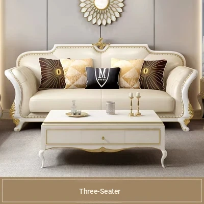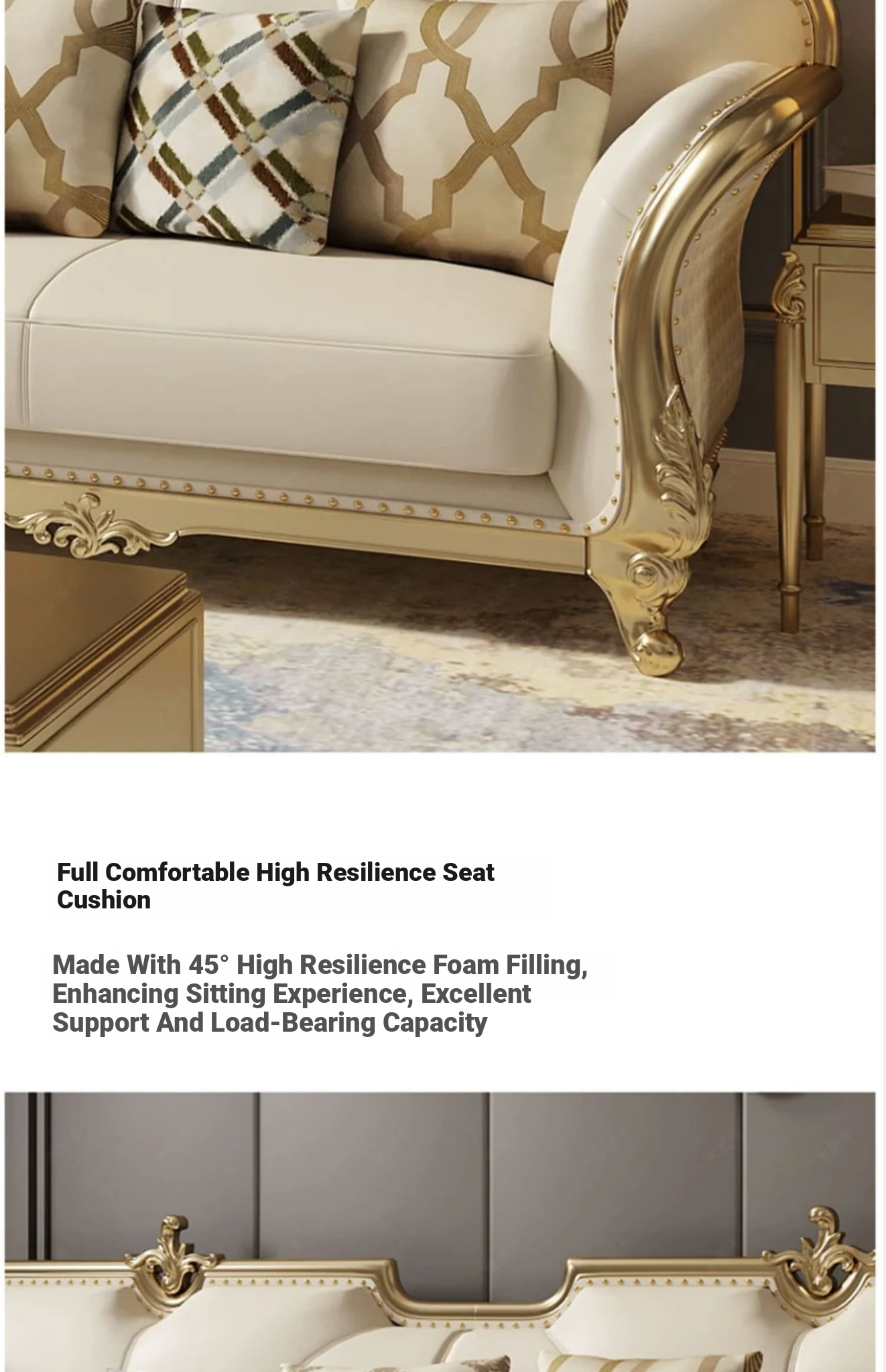 Luxury Genuine Leather Sofa Set - American Style Light Luxury with Solid Wood Frame, High-Grade Euro Design for All Room Sizes, Perfect Corner 123 Combination for Your Living Room