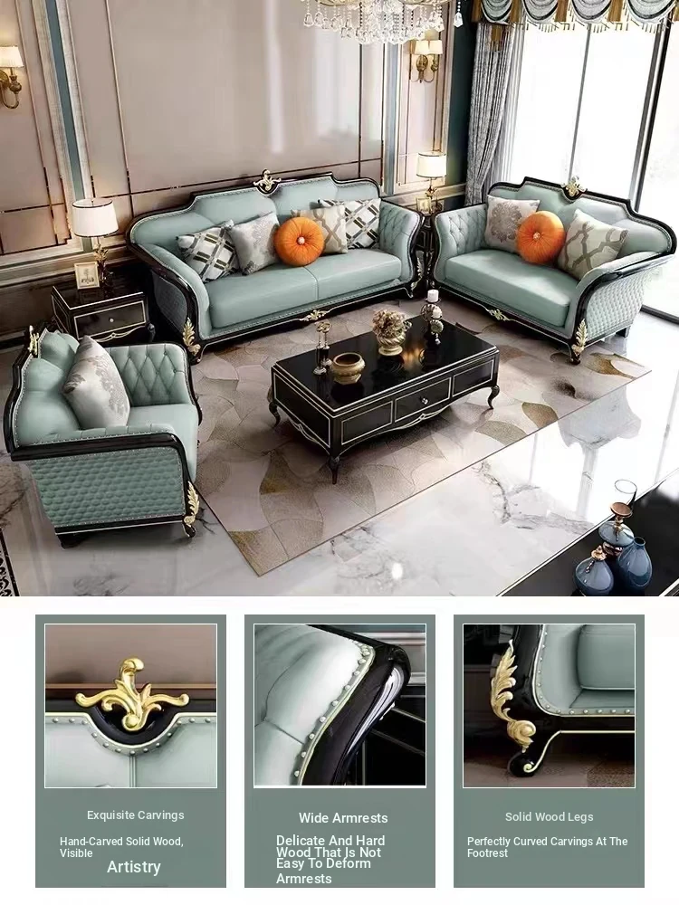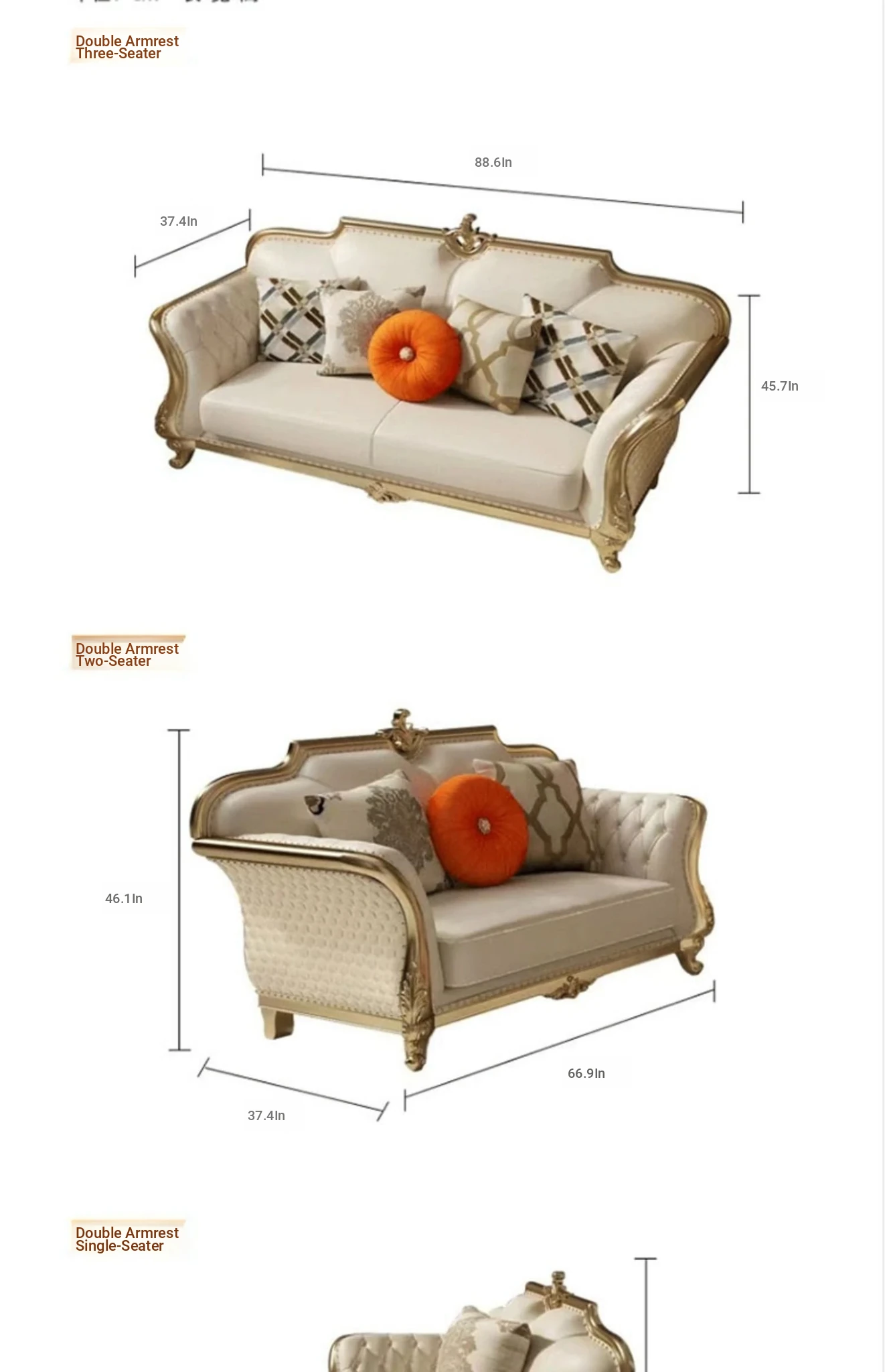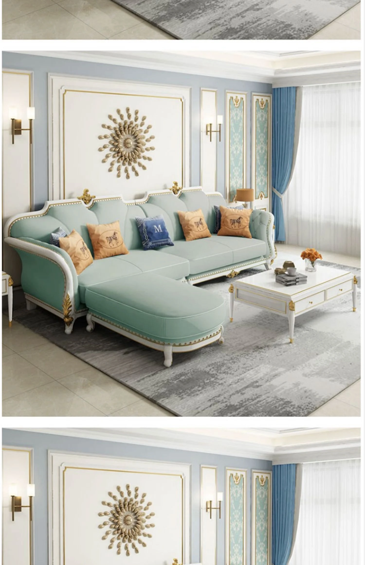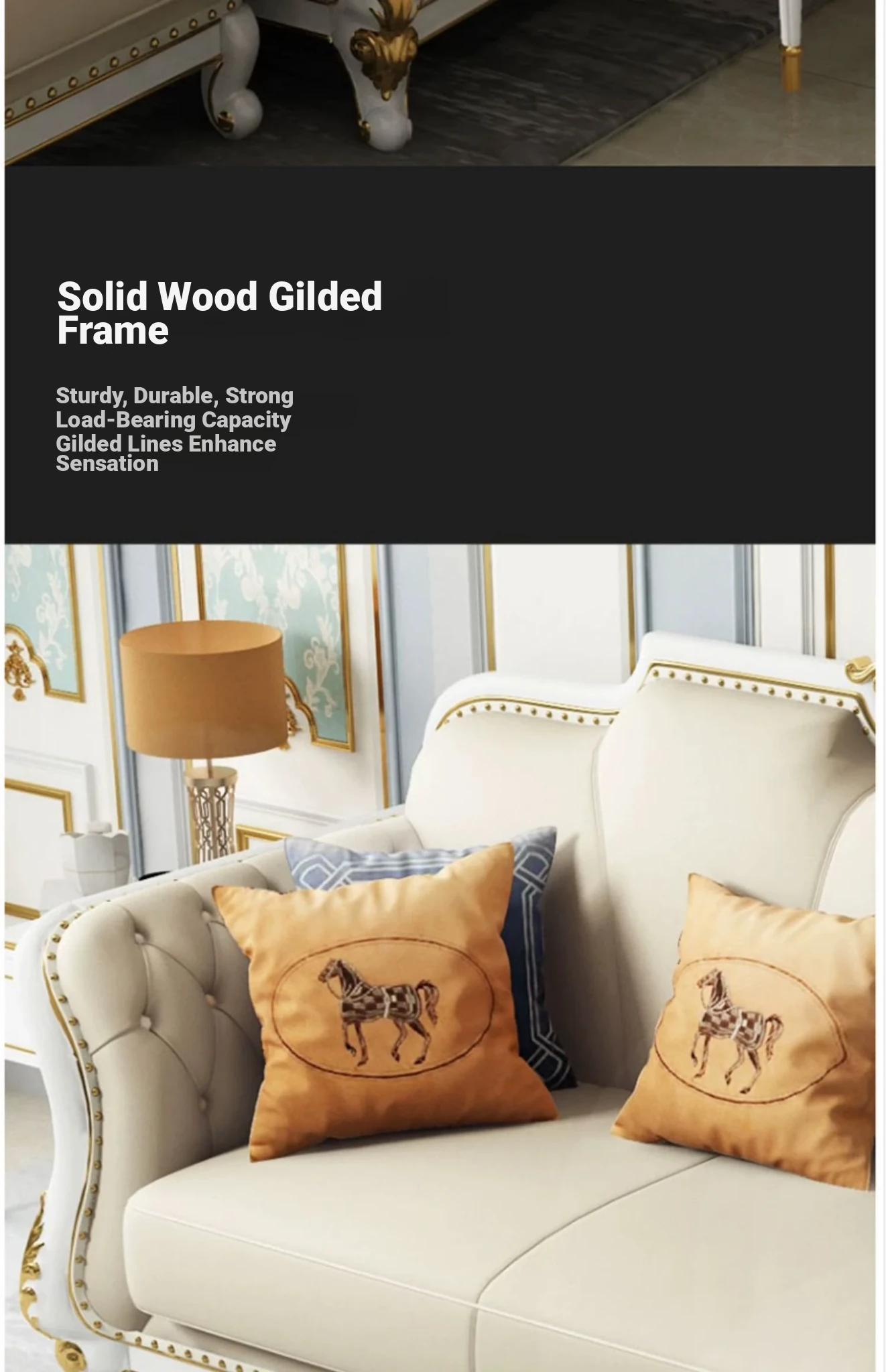 Luxury Genuine Leather Sofa Set - American Style Light Luxury with Solid Wood Frame, High-Grade Euro Design for All Room Sizes, Perfect Corner 123 Combination for Your Living Room
