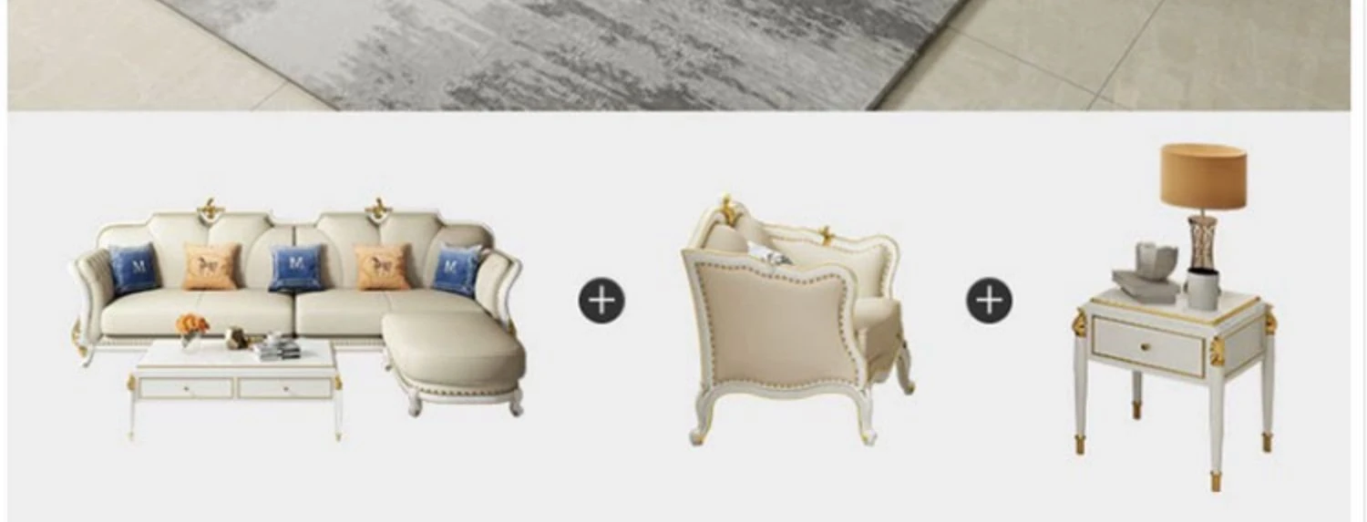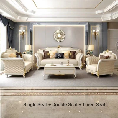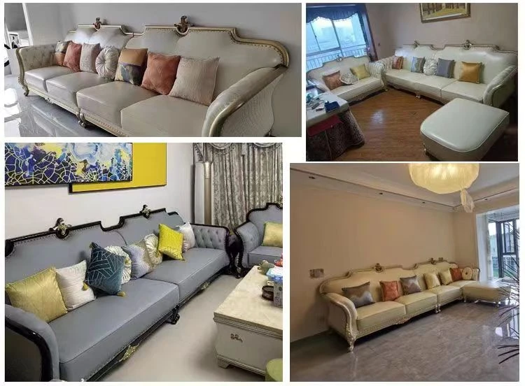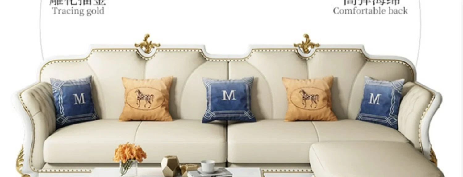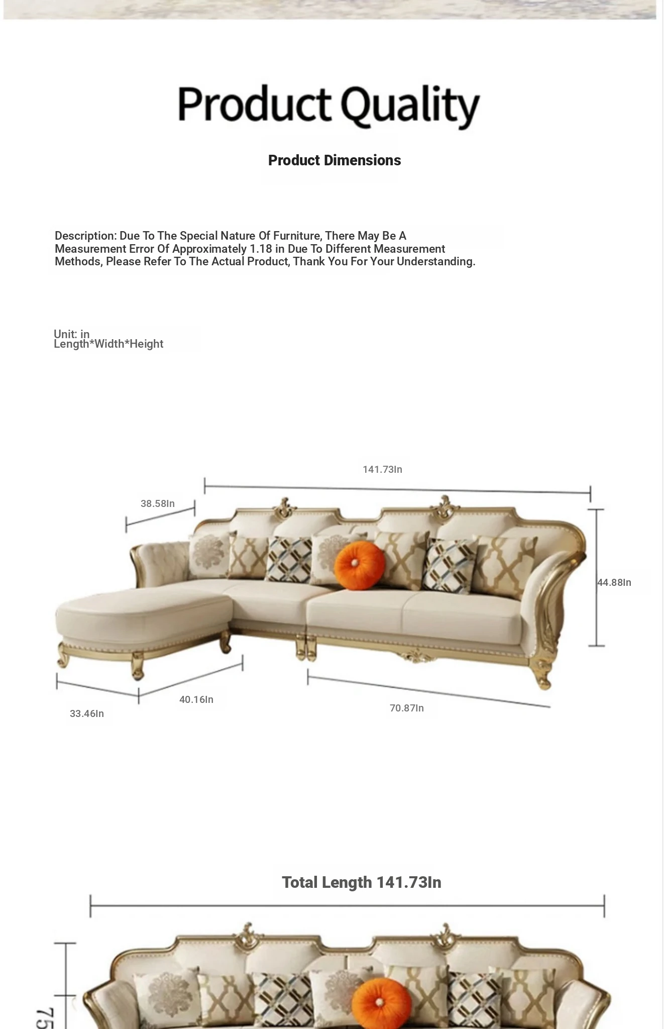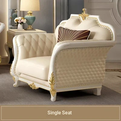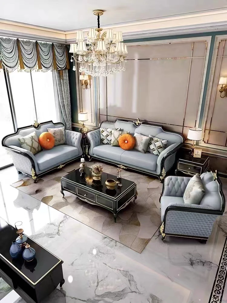 Luxury Genuine Leather Sofa Set - American Style Light Luxury with Solid Wood Frame, High-Grade Euro Design for All Room Sizes, Perfect Corner 123 Combination for Your Living Room