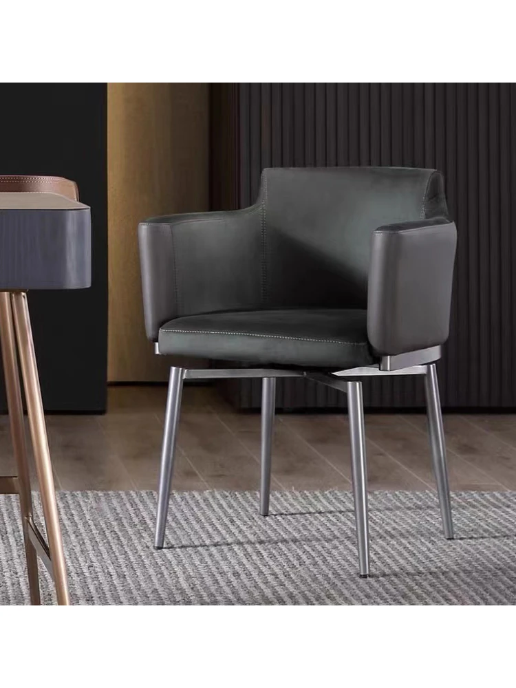 Luxury Leather Dining Chair - Elegant Minimalist Italian Design with Rotating Feature - Perfect for Home and Meetings - Stylish Stainless Steel Dining Table Chair