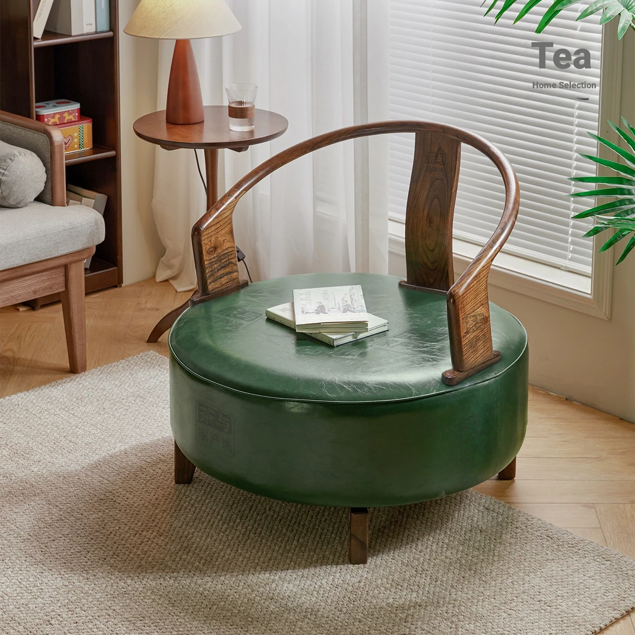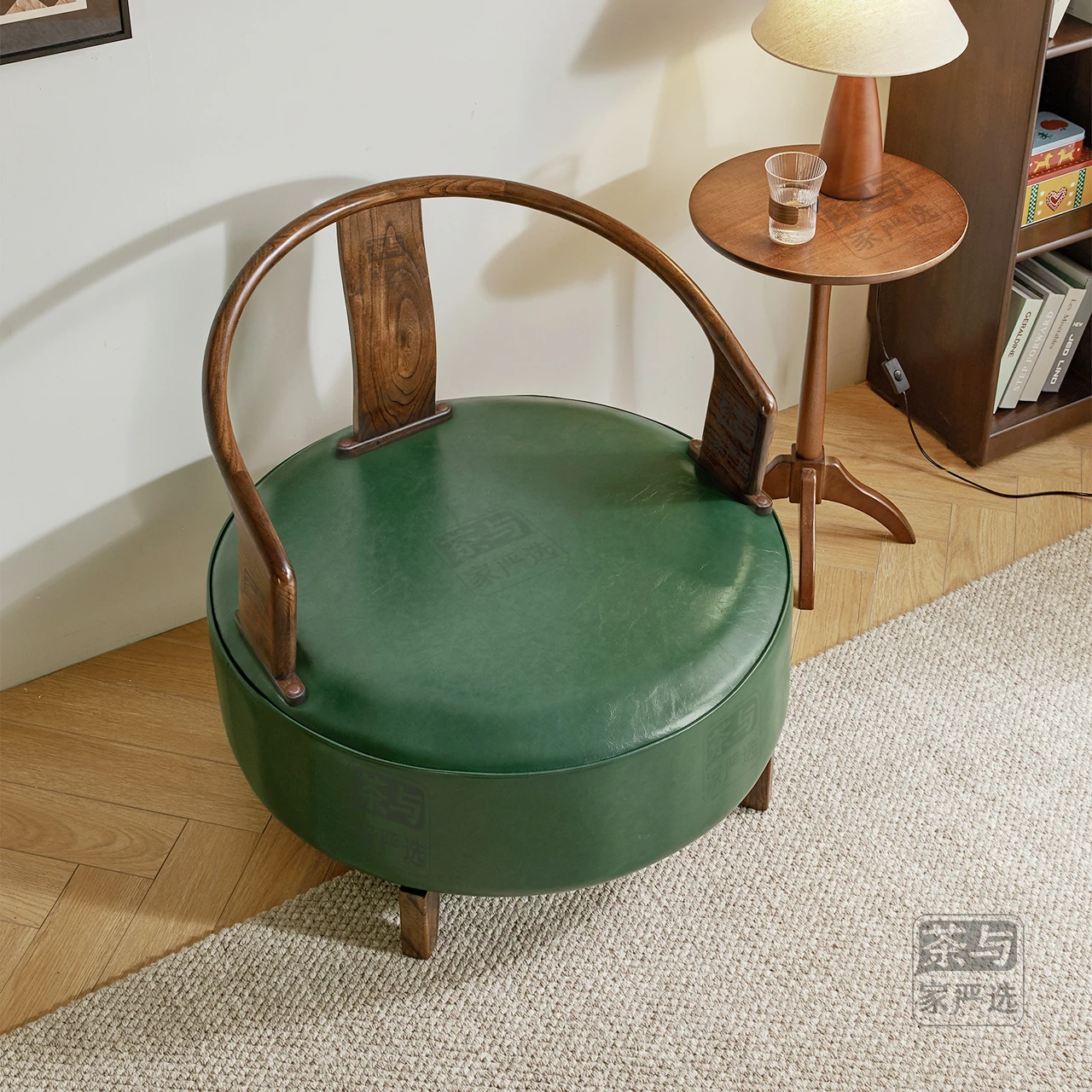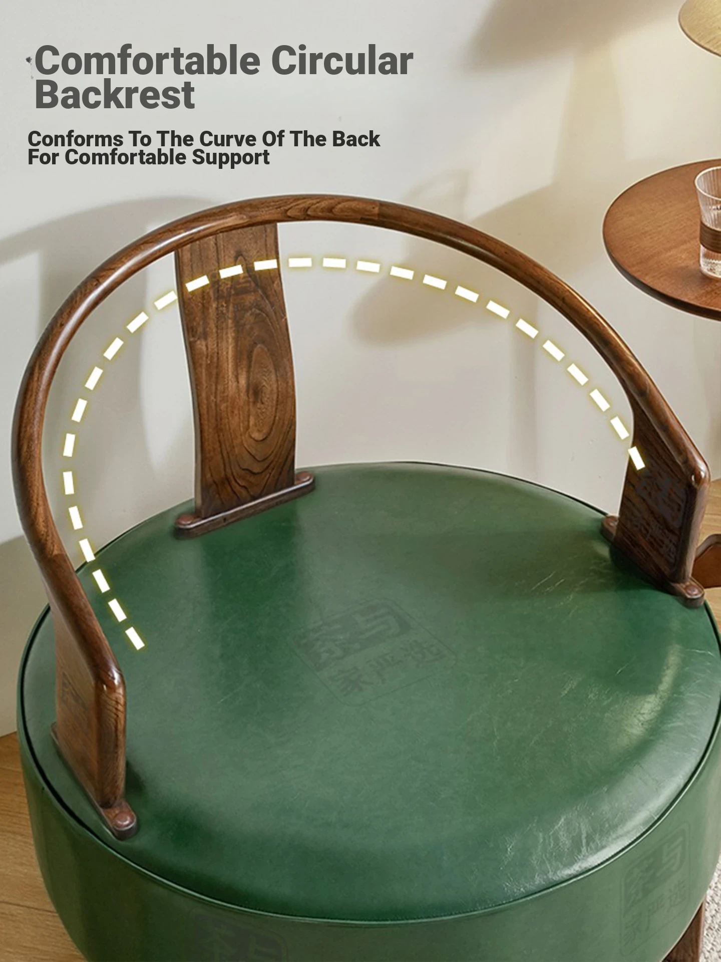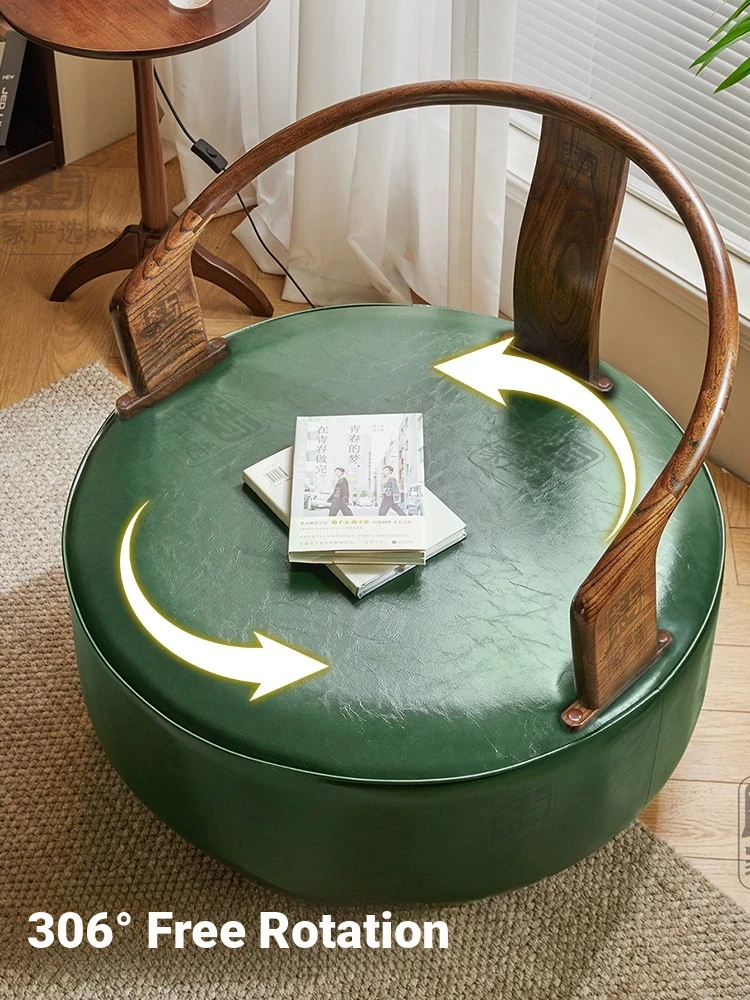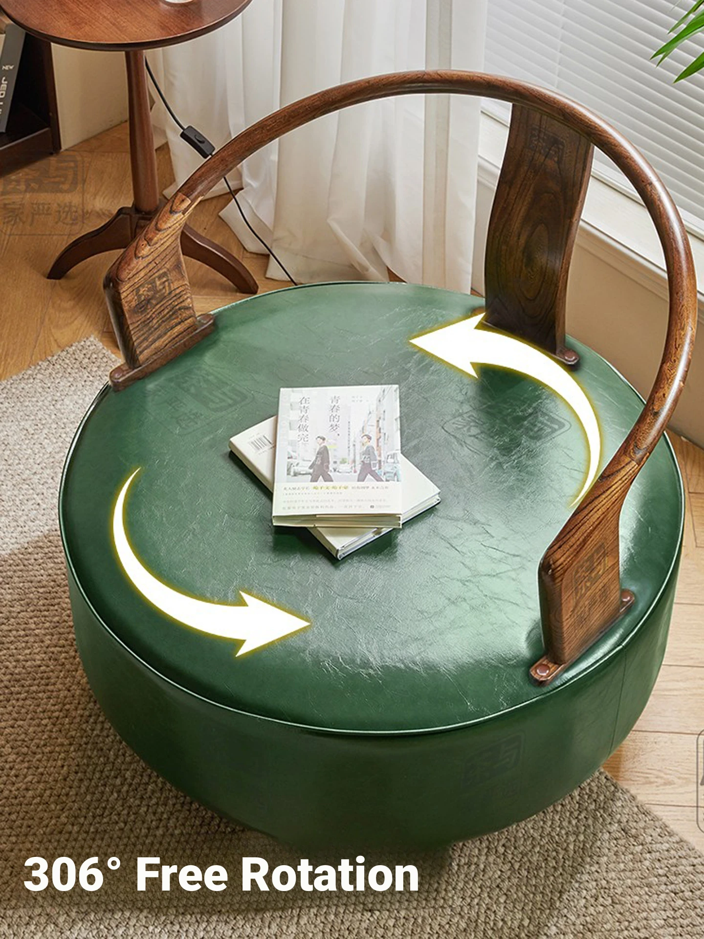 Luxury Single Sofa Chair - Solid Wood Rotating Recliner, Genuine Leather Leisure Chair for Balcony, Perfect for Reading and Relaxation, Trendy Lazy Circle Chair