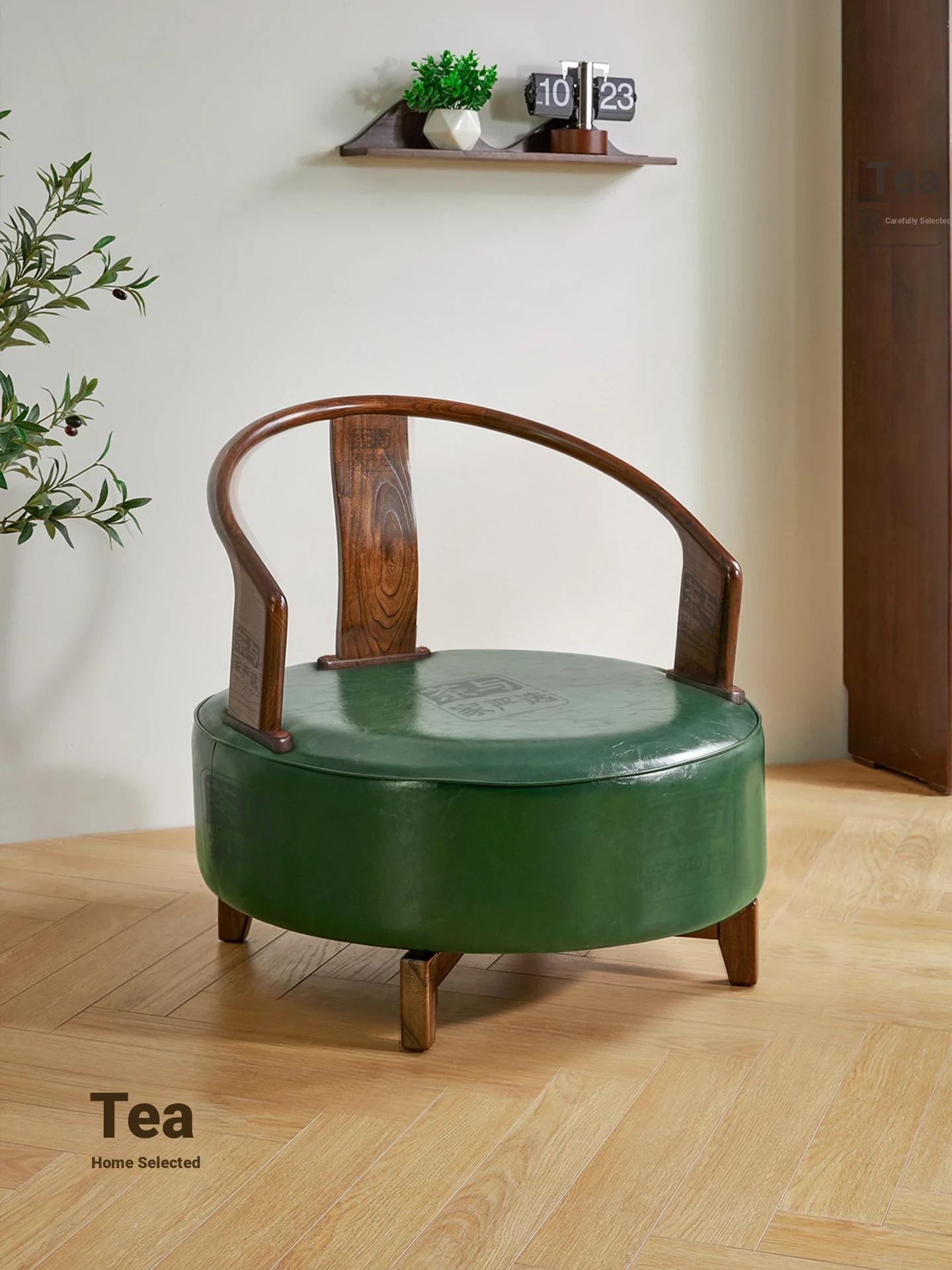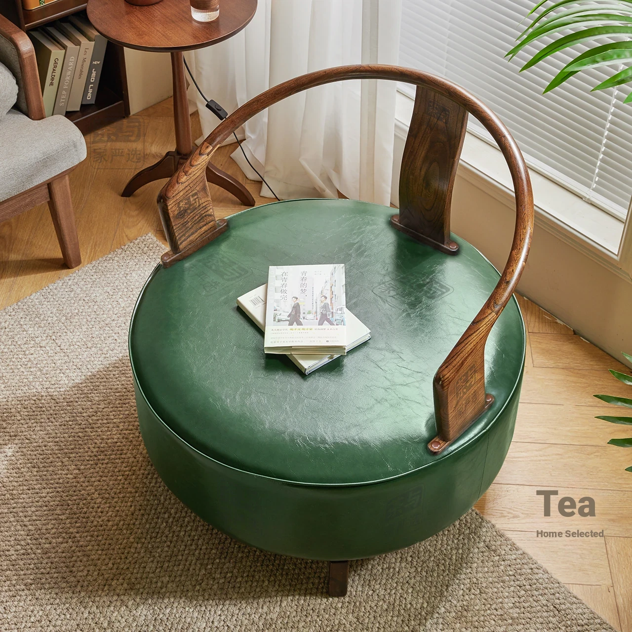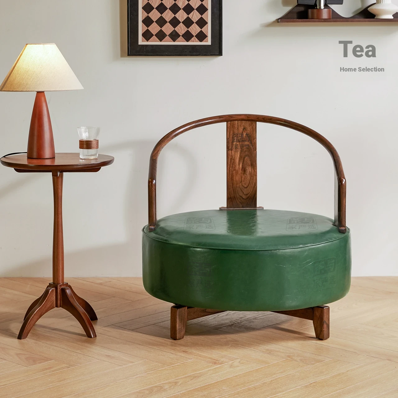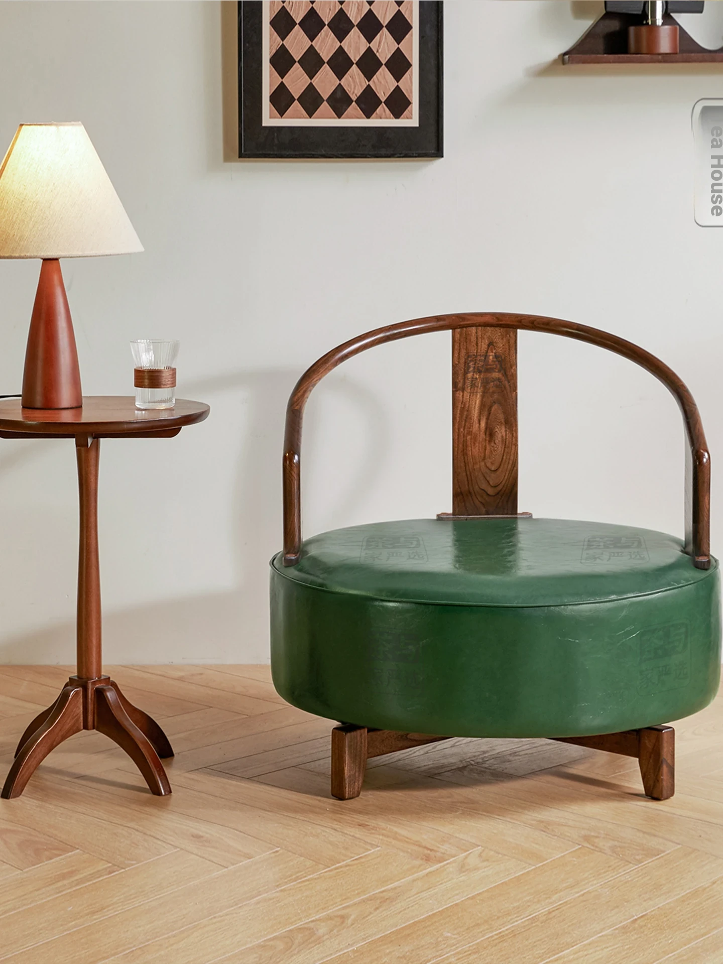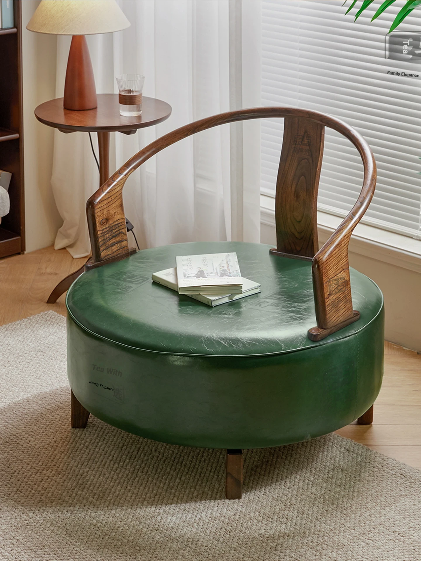 Luxury Single Sofa Chair - Solid Wood Rotating Recliner, Genuine Leather Leisure Chair for Balcony, Perfect for Reading and Relaxation, Trendy Lazy Circle Chair