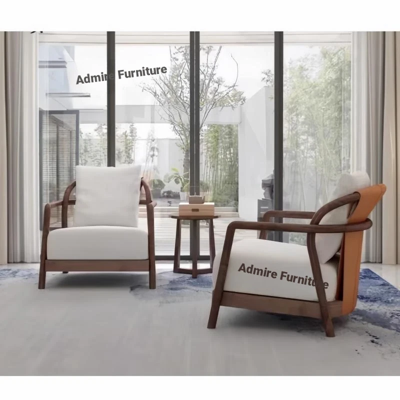 Modern Chinese Style 3-Piece Lounge Chair Set - Minimalist Solid Wood Sofa Chairs for Hotel and Club Reception & Meeting Spaces