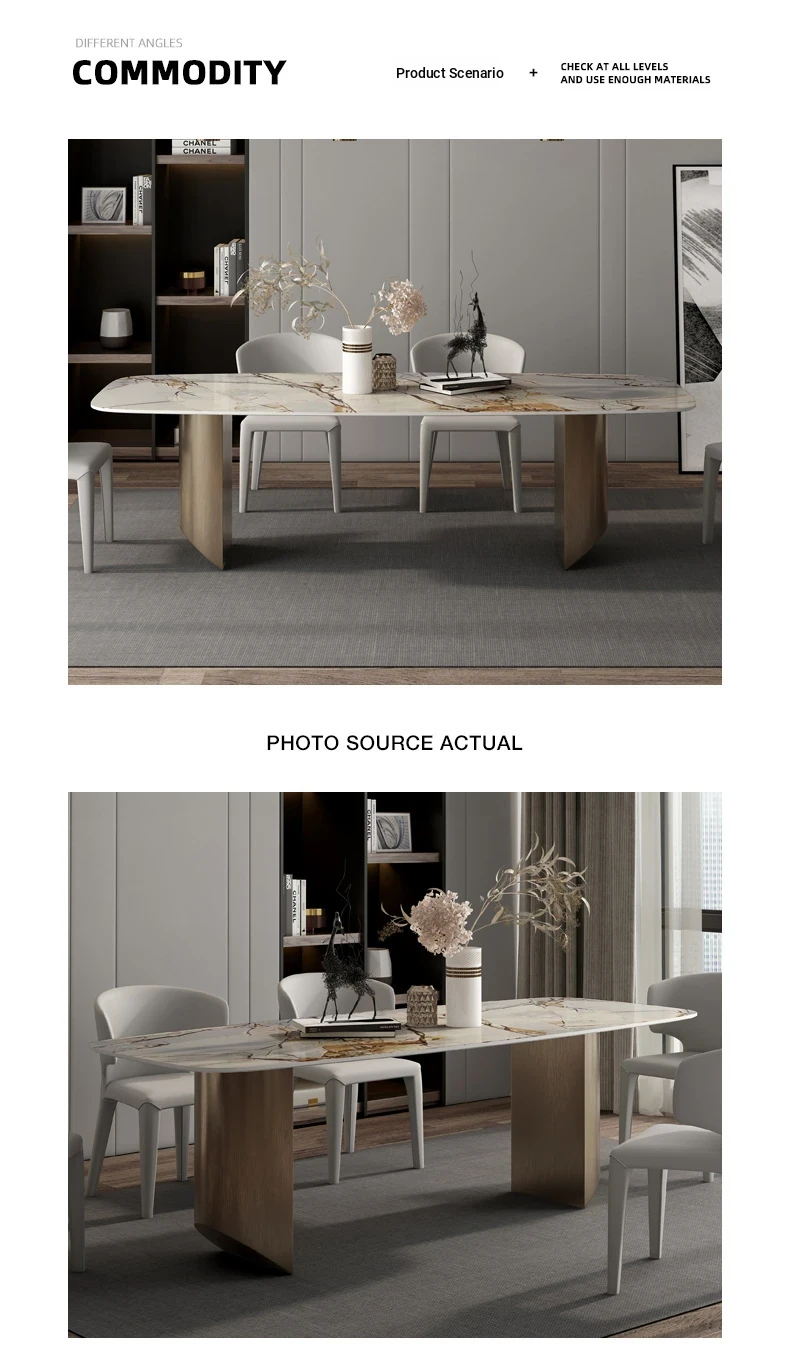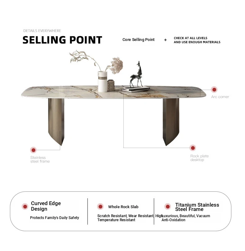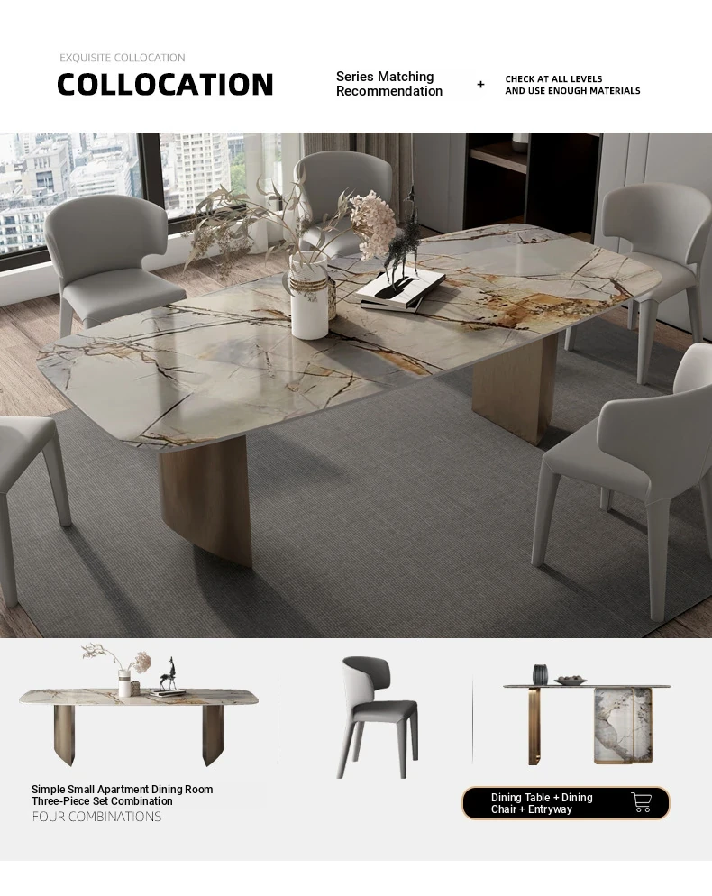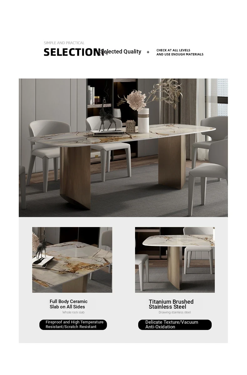 Modern Italian Luxury Rectangular Dining Table - Sleek Marble Top with Stainless Steel Legs, Perfect for Home Use. Elevate Your Dining Experience with This Elegant Piece!