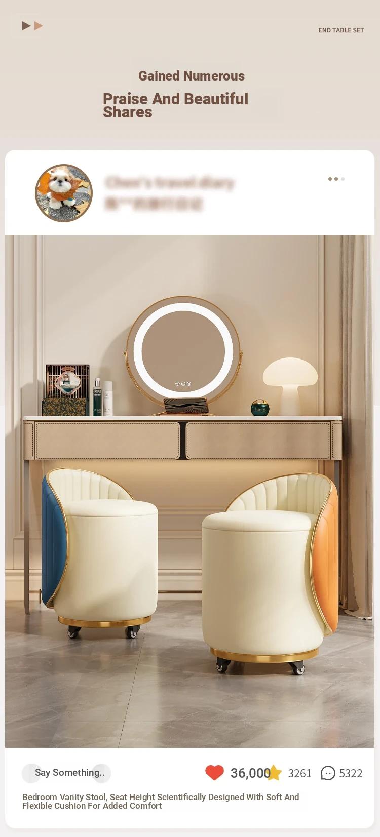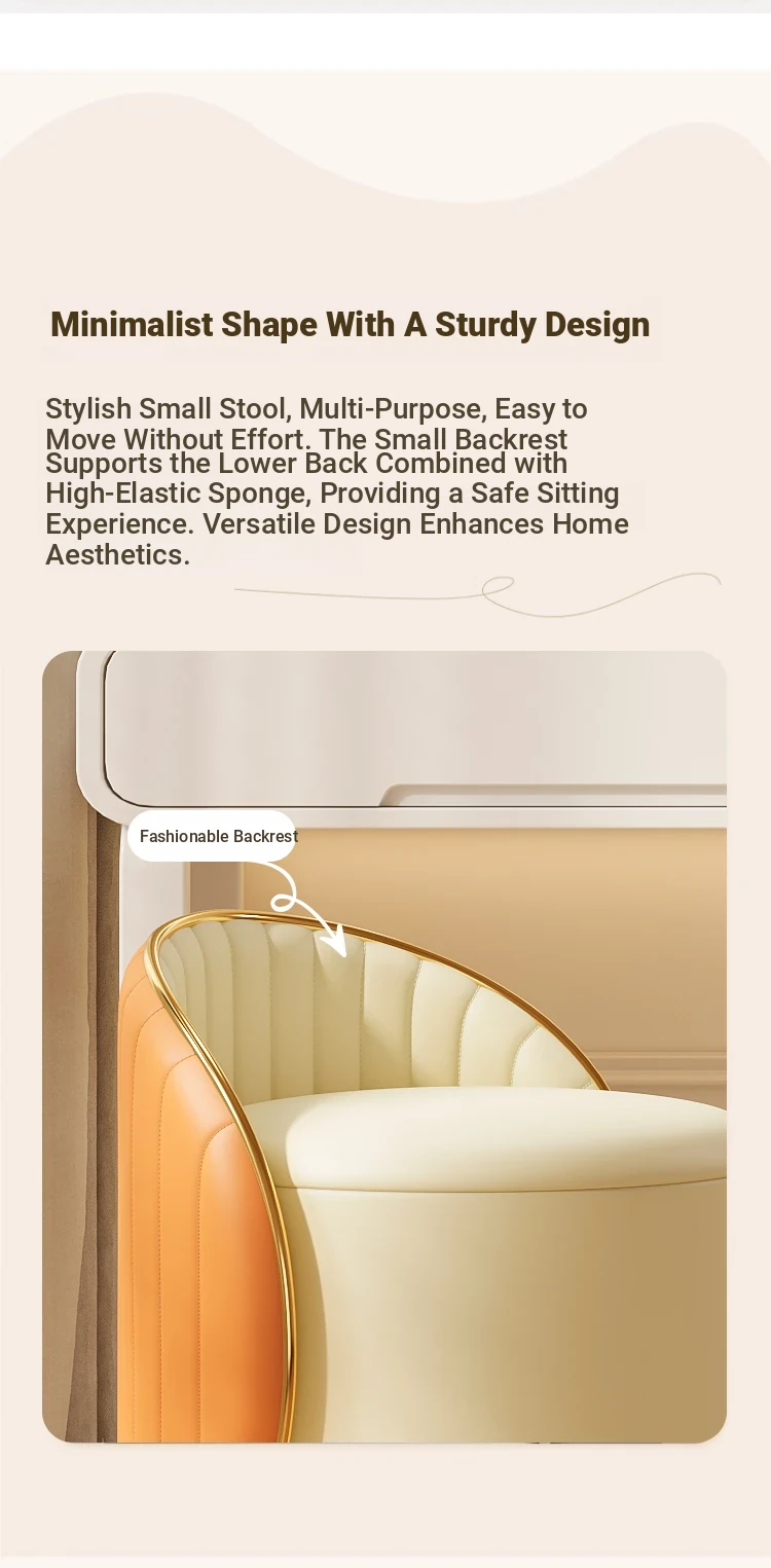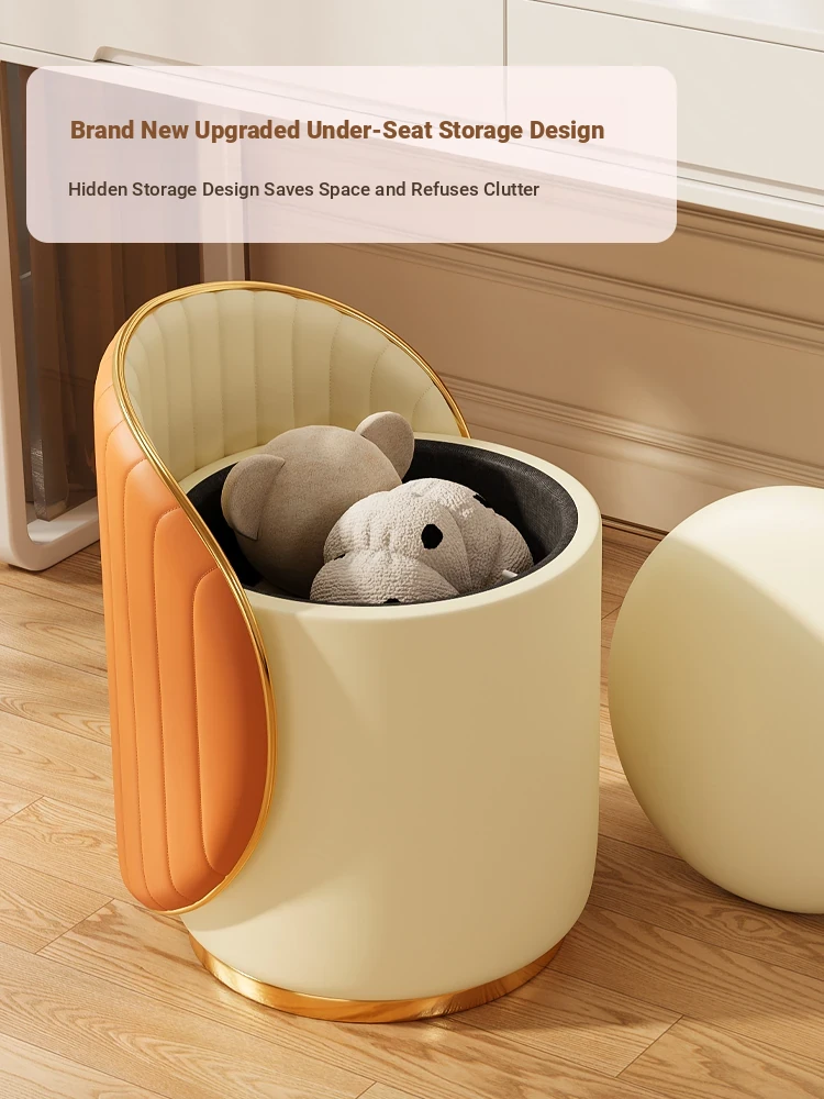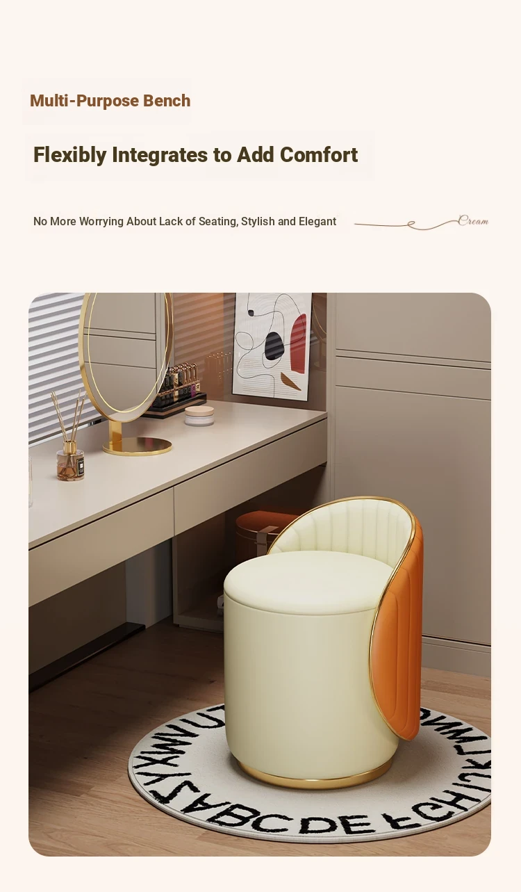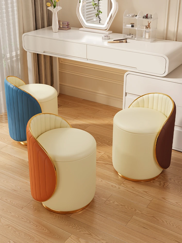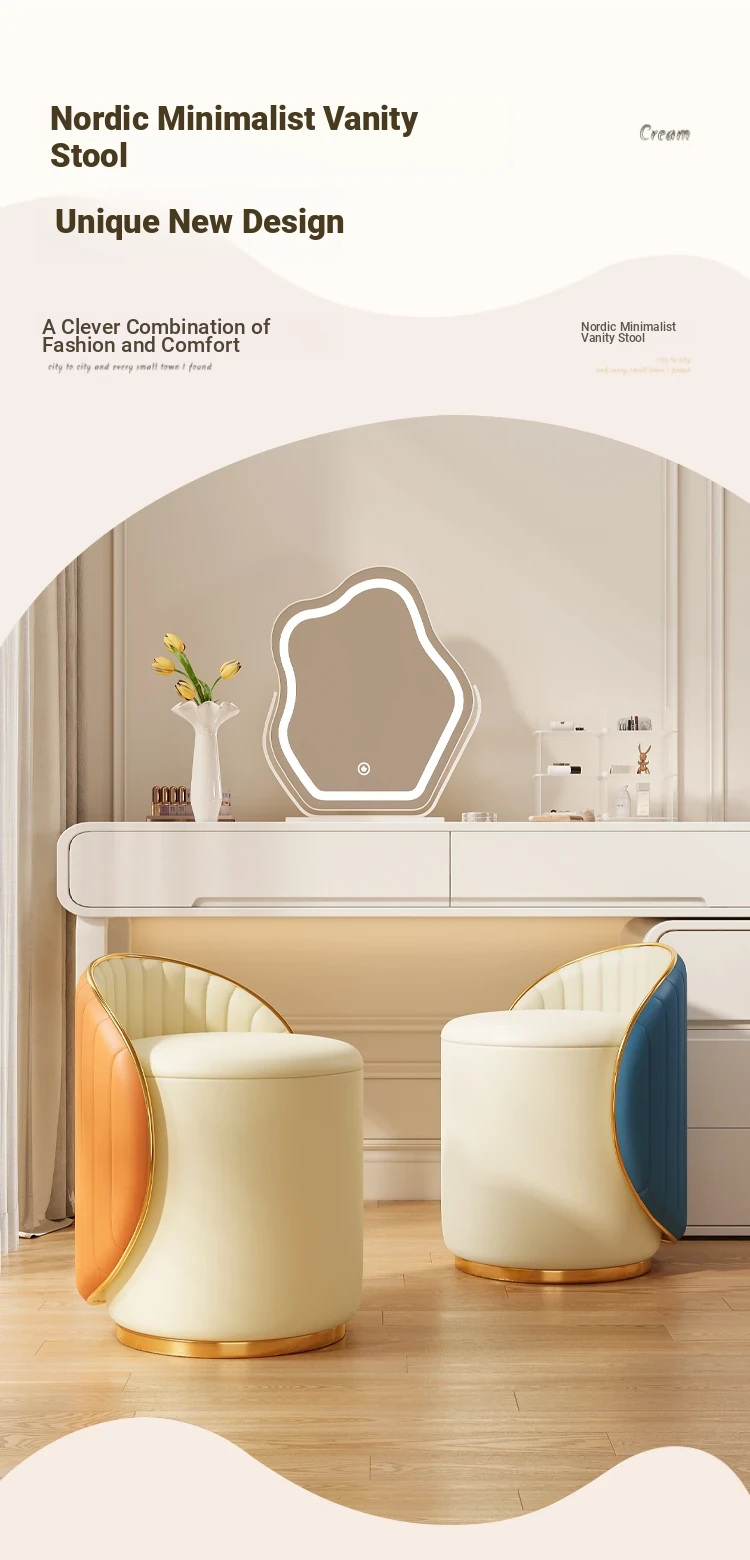 Modern Minimalist Makeup Stool - Trendy Round Storage Chair for Bedroom, Perfect for Vanity and Compact Spaces, Stylish and Functional Makeup Seat