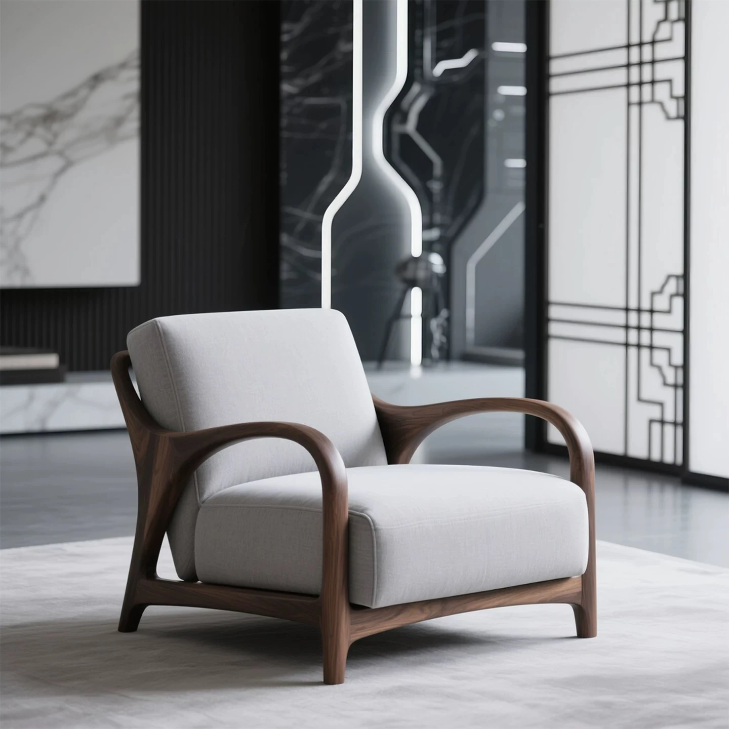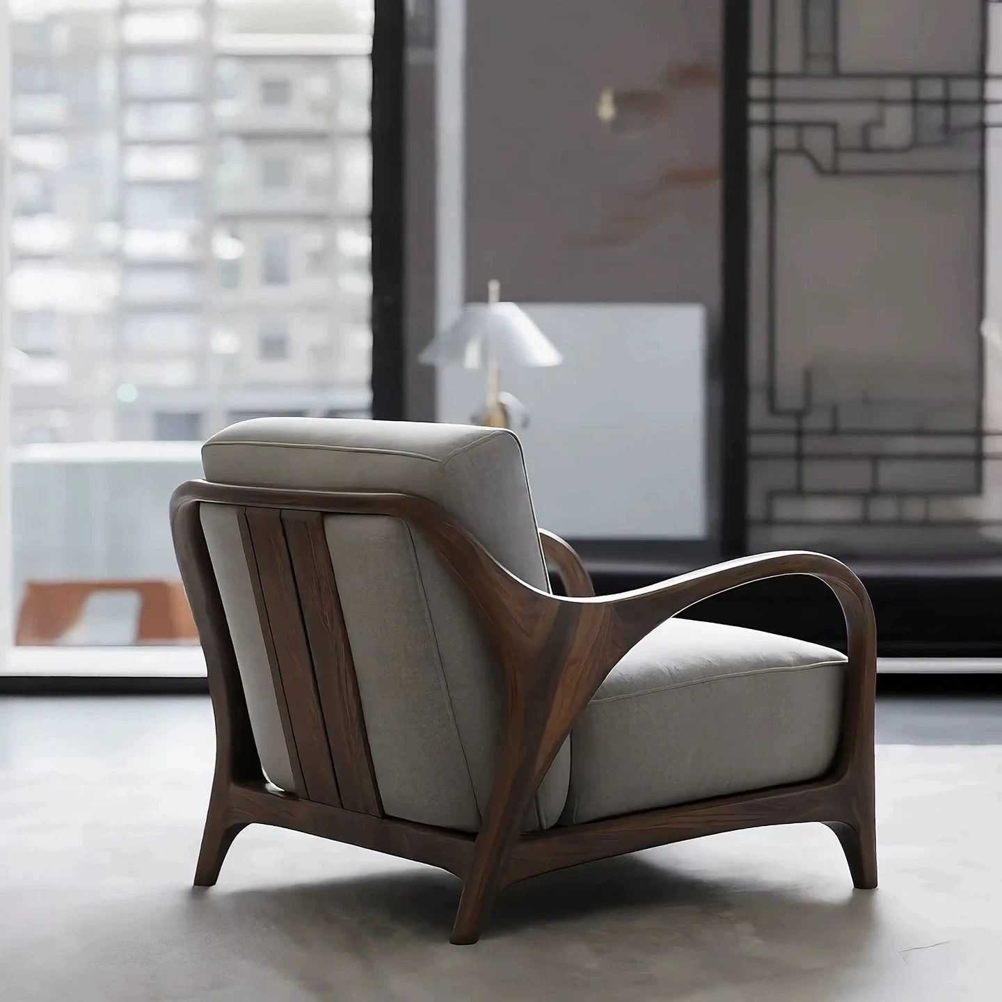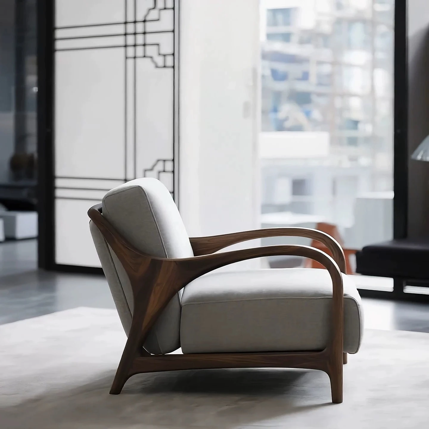 Modern Minimalist New Chinese Style Single Leisure Sofa in North American Black Walnut - Upholstered Armchair for Relaxation and Reception