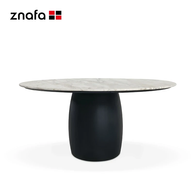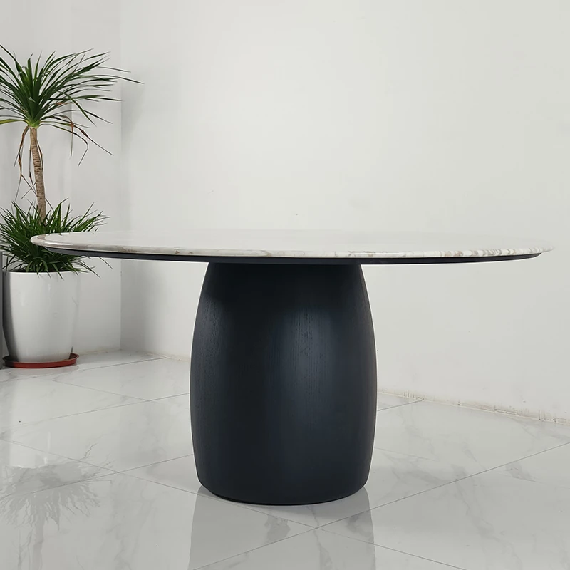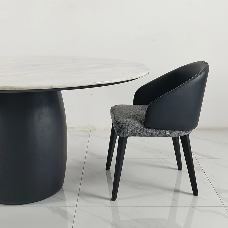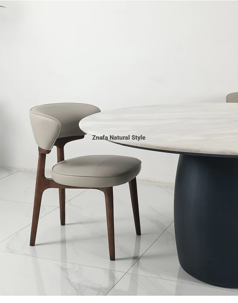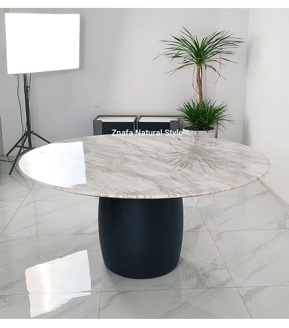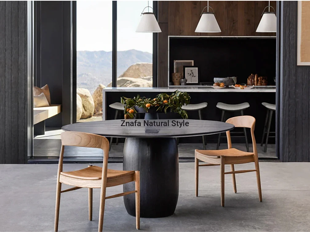 Modern Minimalist Round Ash Wood Dining Table with Marble Top - Perfect for Home and Office, Embracing Wabi-Sabi Aesthetics