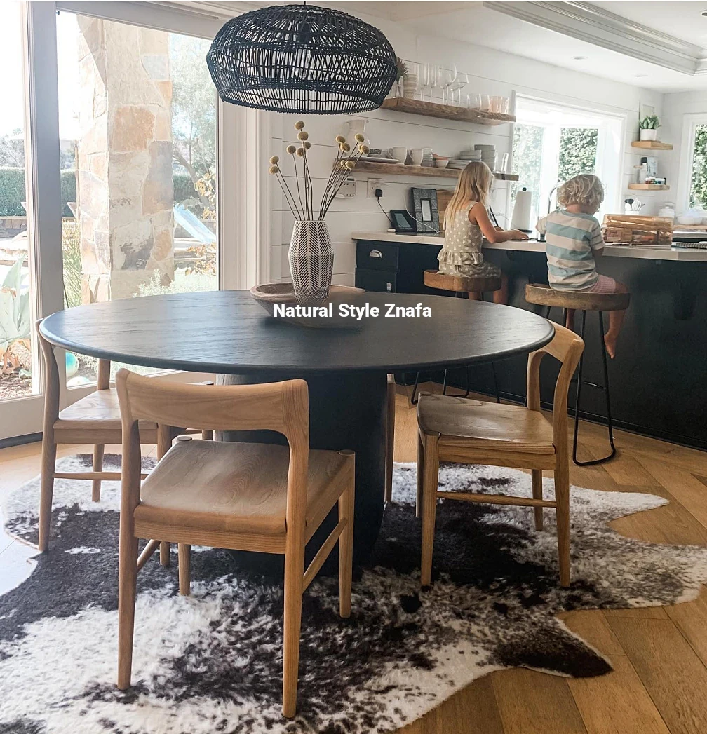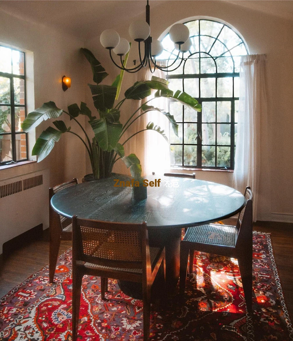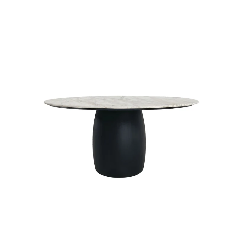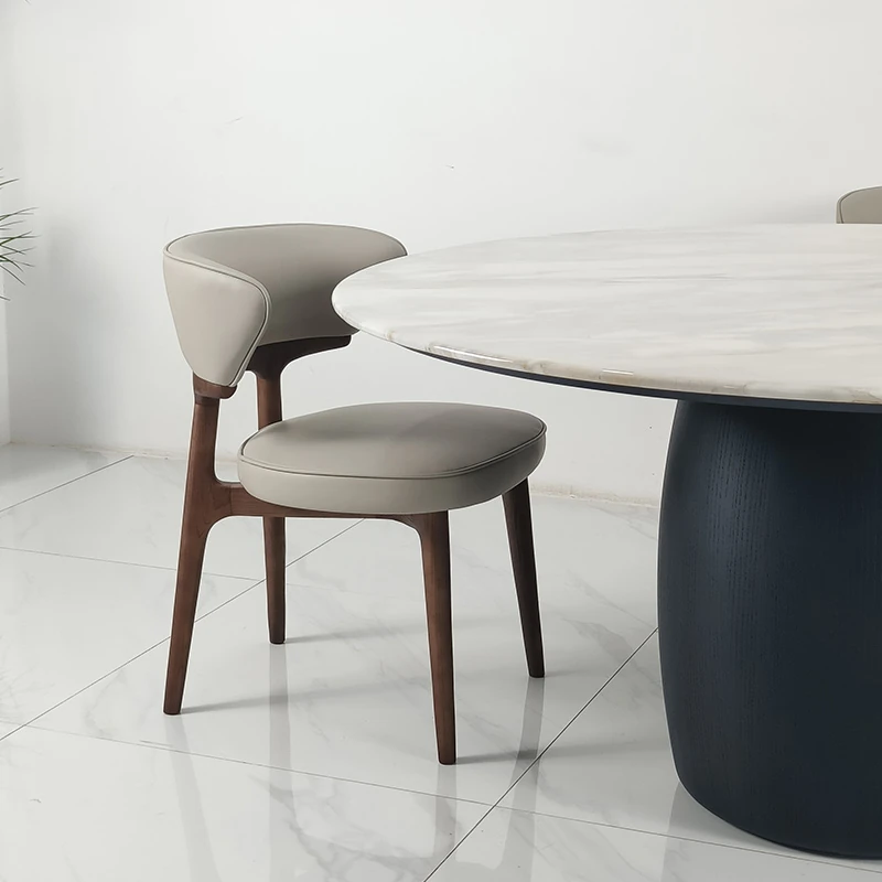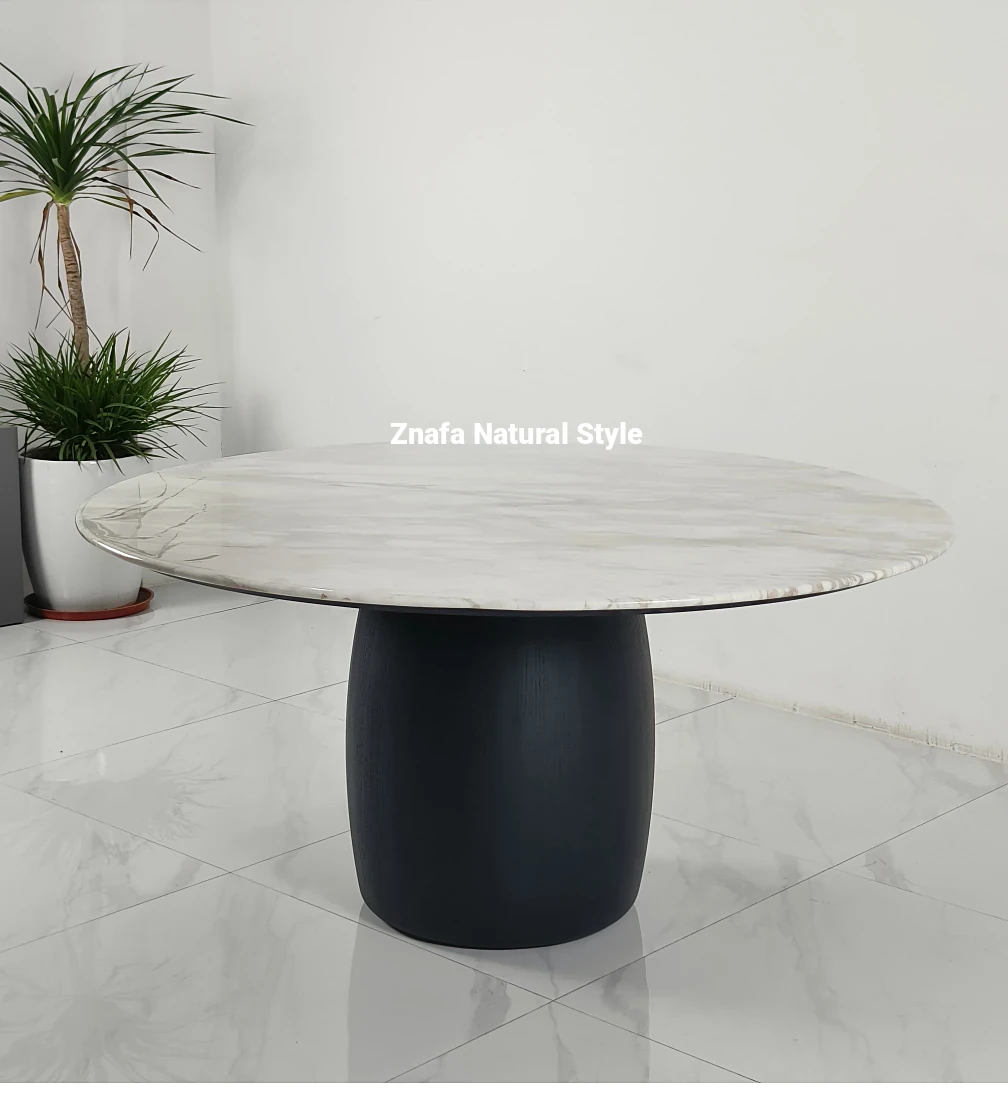 Modern Minimalist Round Ash Wood Dining Table with Marble Top - Perfect for Home and Office, Embracing Wabi-Sabi Aesthetics