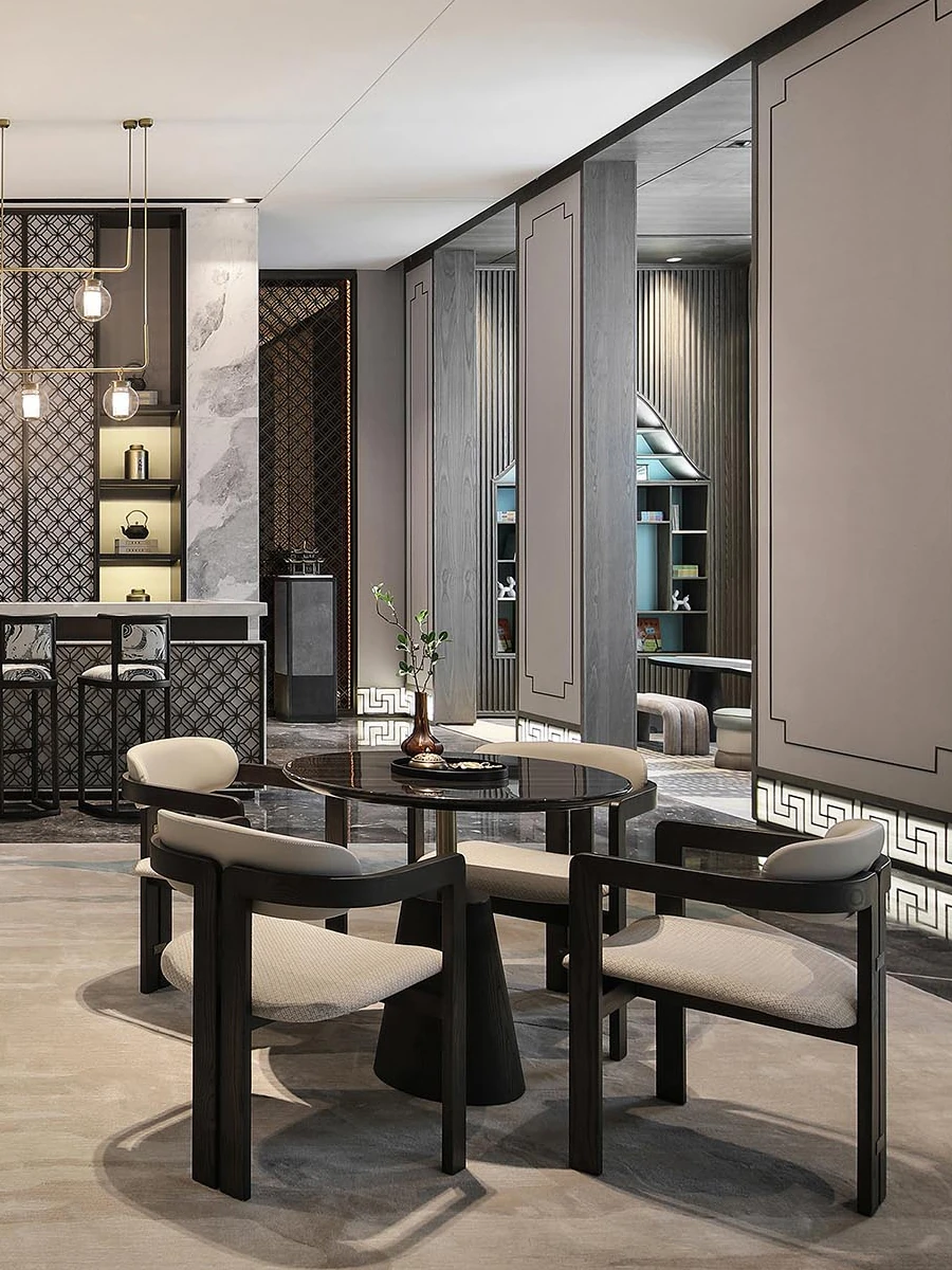 Modern Minimalist Solid Wood Dining Chair - New Chinese Style Living Room Accent Chair for Hotels and Meeting Spaces, Designer Sample Room Relaxation Chair