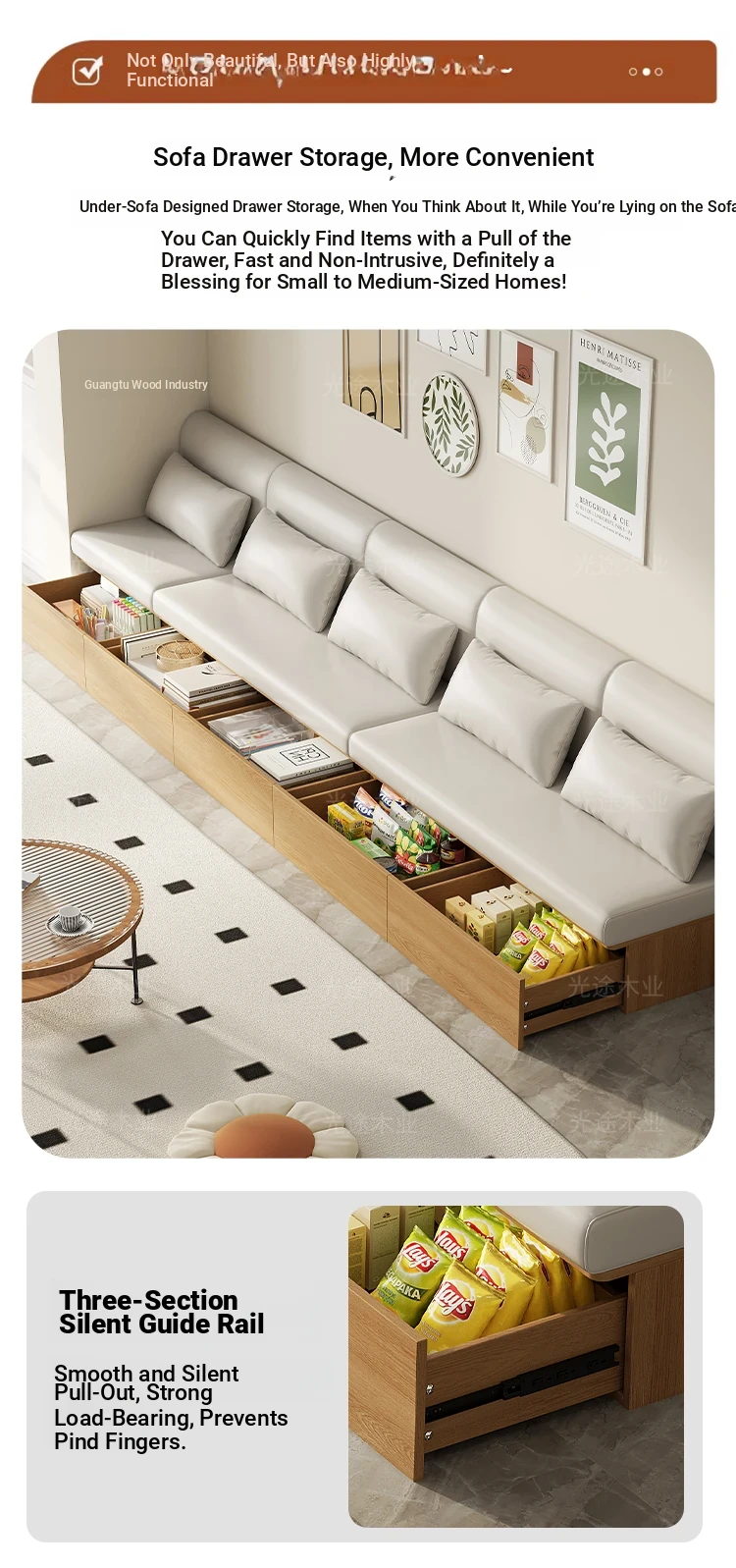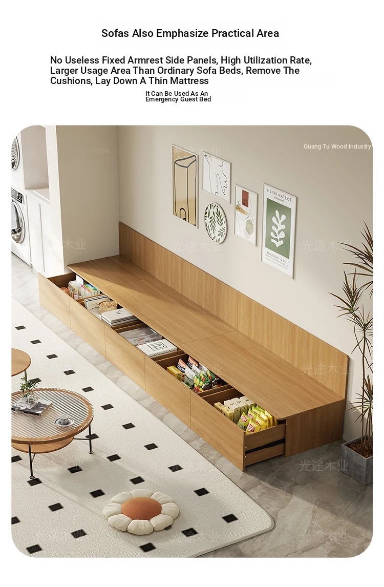 Modern Minimalist Tatami Sofa Bed with High Storage for Small Spaces – Versatile Pull-Out Seating for Your Living Room