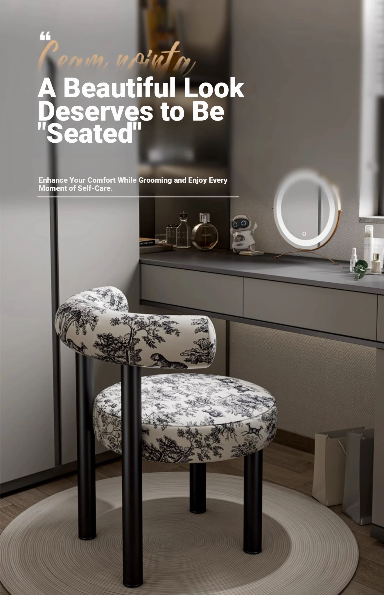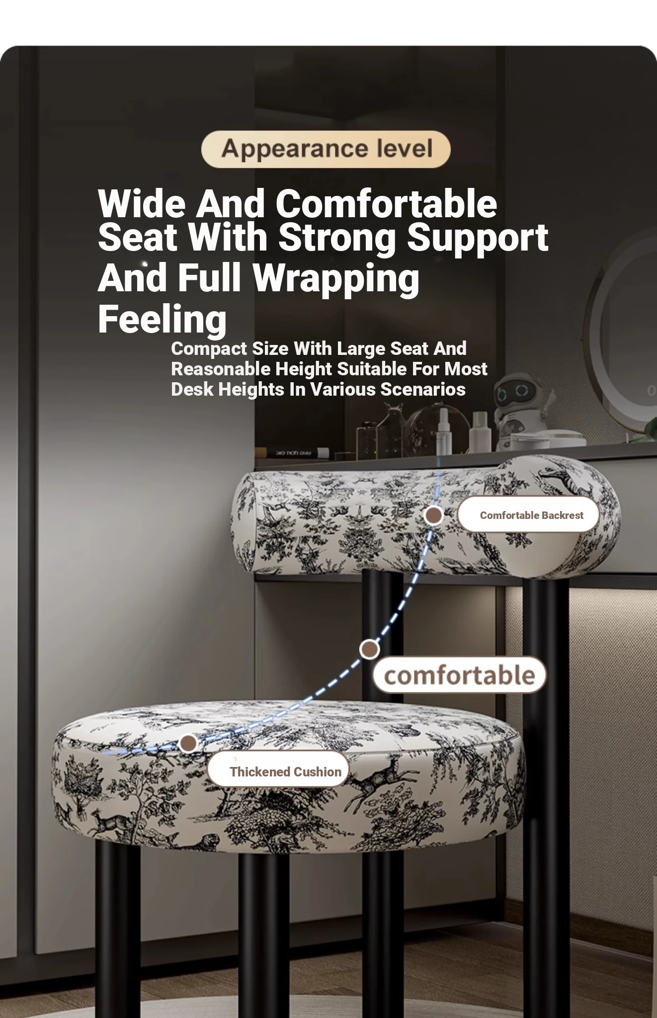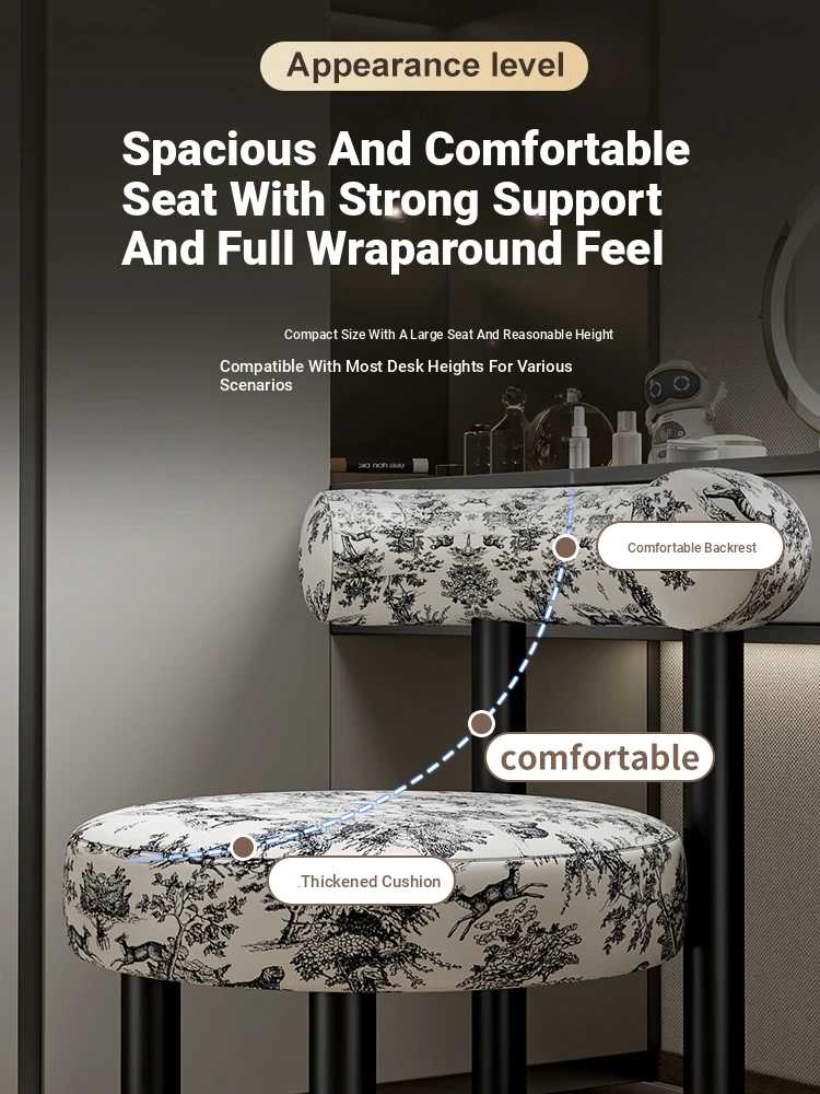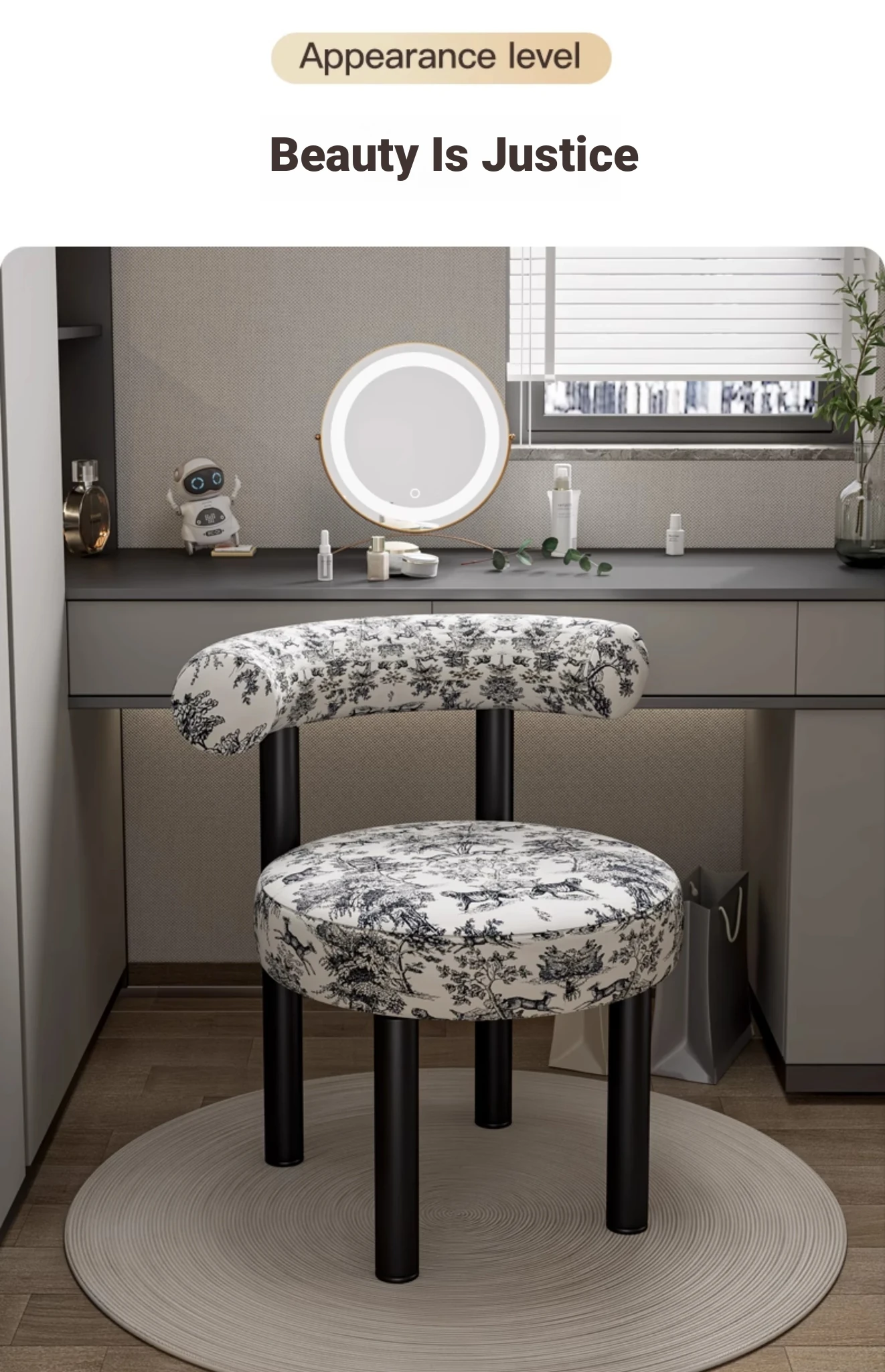Modern Vanity Chair for Girls' Bedrooms - Stylish and Luxurious Makeup Stool, Retro Design Perfect for Dressing Tables and Dining Areas, Ideal for Nail Art and Makeup Sessions.
