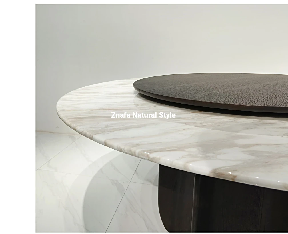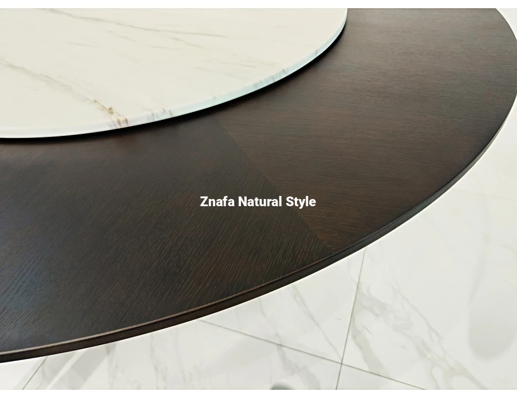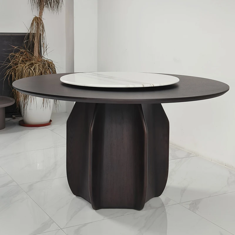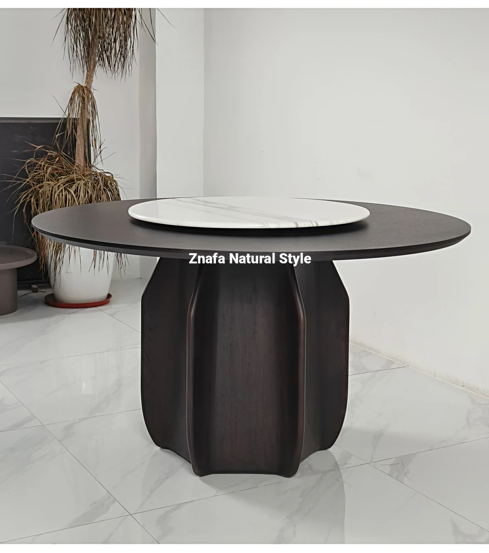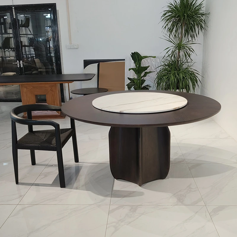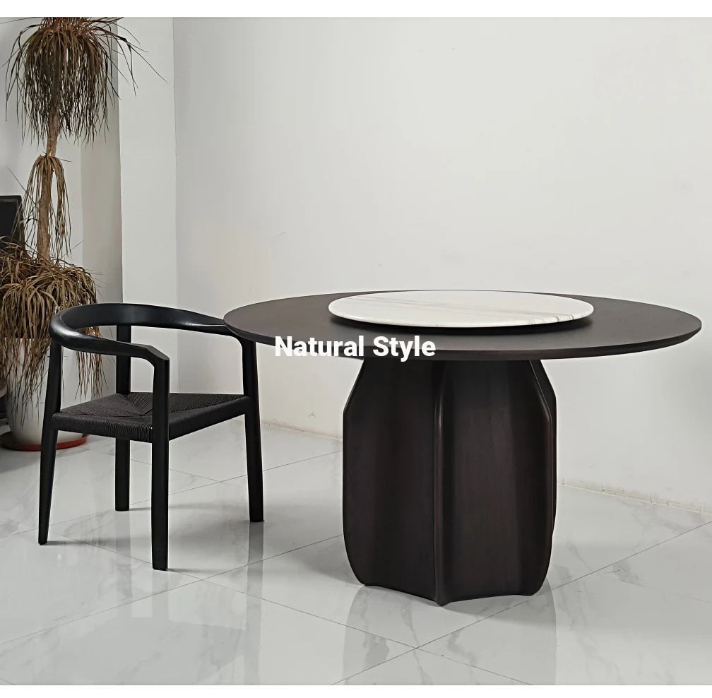Natural Style Italian Minimalist Round Dining Table with Marble Top and Lazy Susan - Premium Ash Wood Design for Modern Homes, Perfect for Elegant Dining Experiences