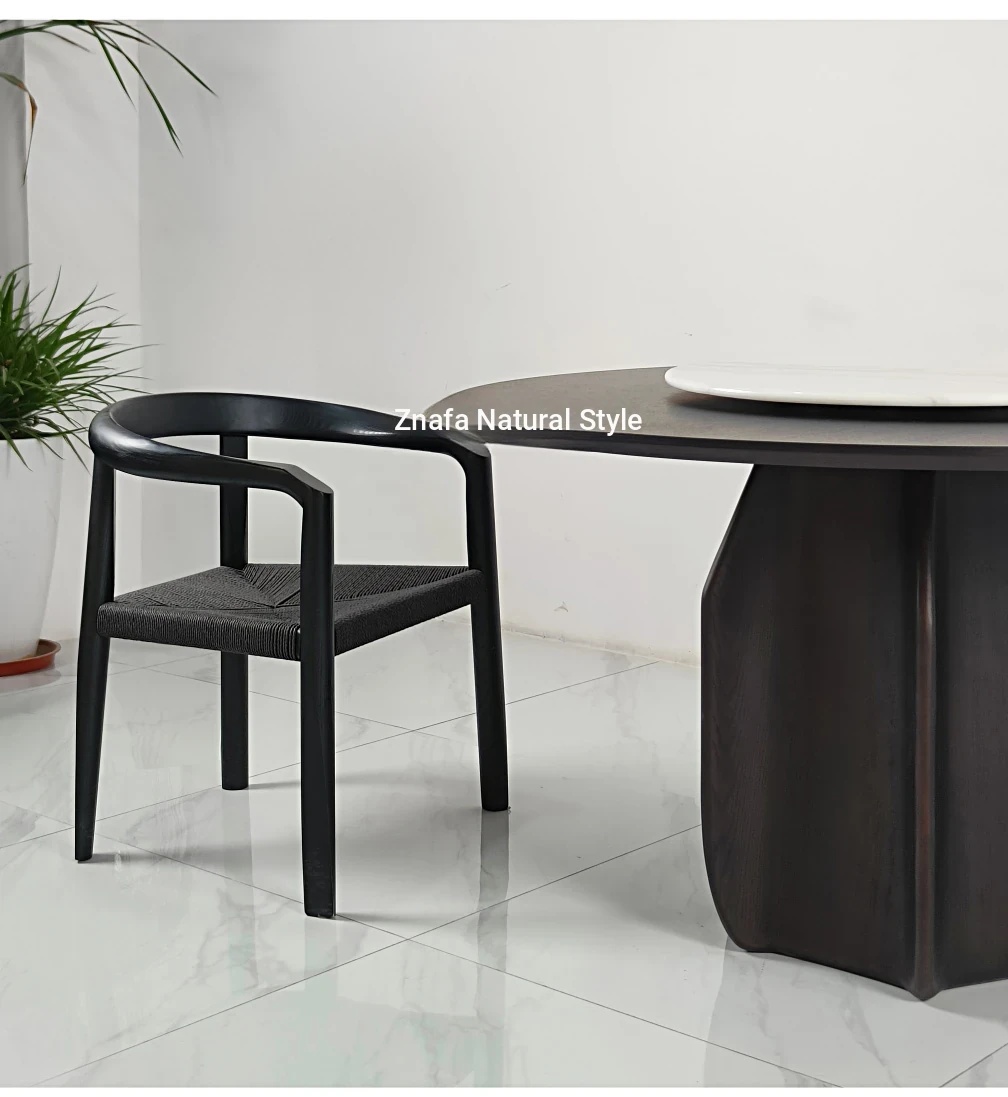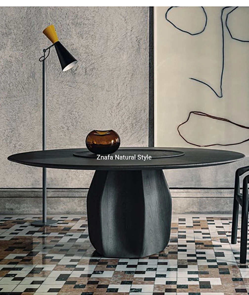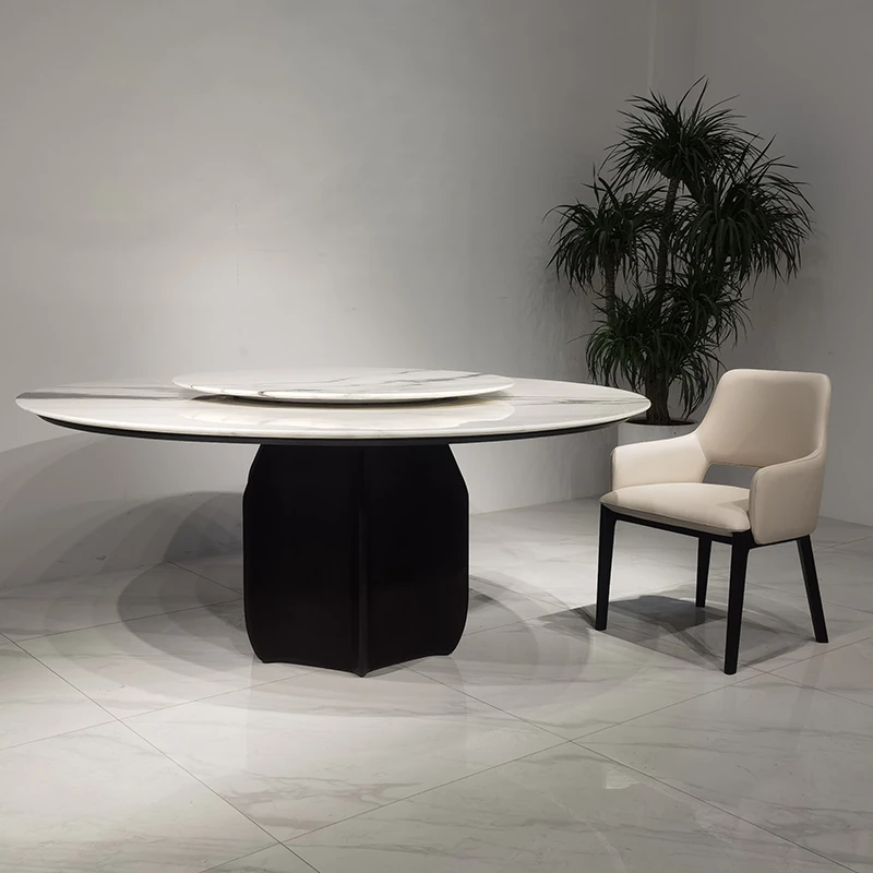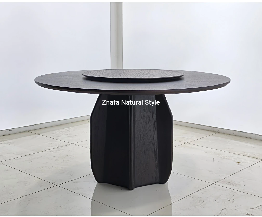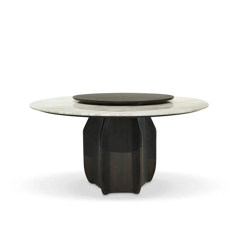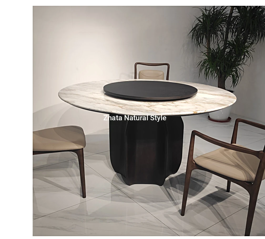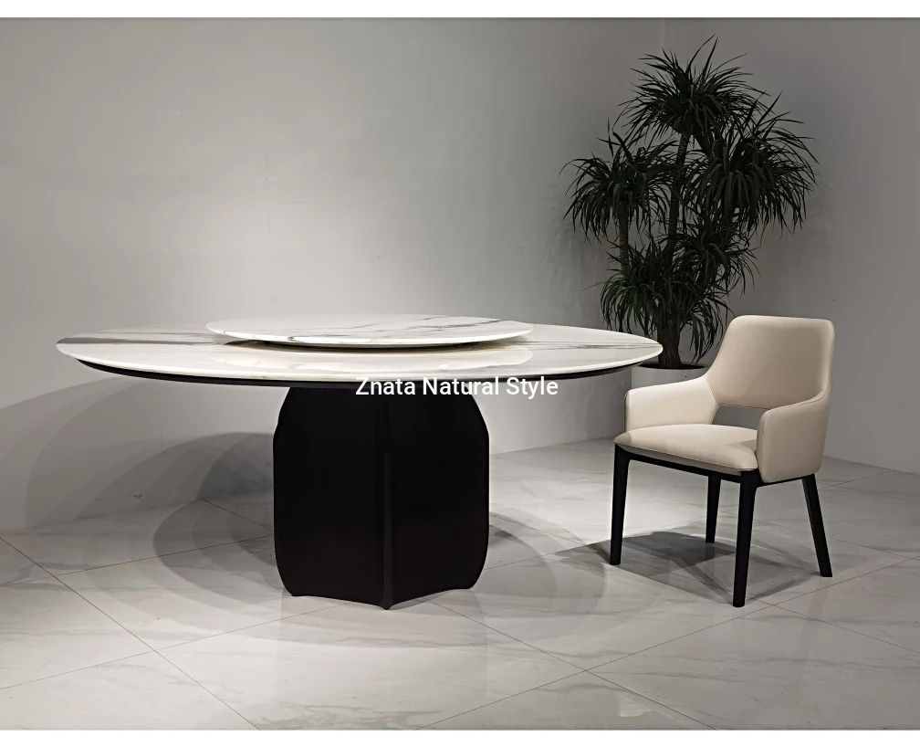 Natural Style Italian Minimalist Round Dining Table with Marble Top and Lazy Susan - Premium Ash Wood Design for Modern Homes, Perfect for Elegant Dining Experiences