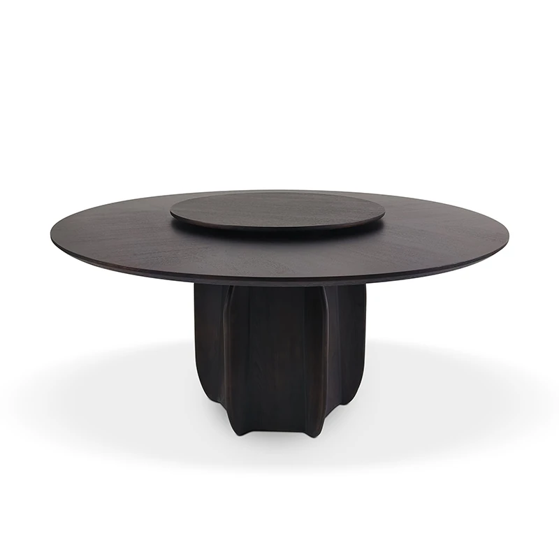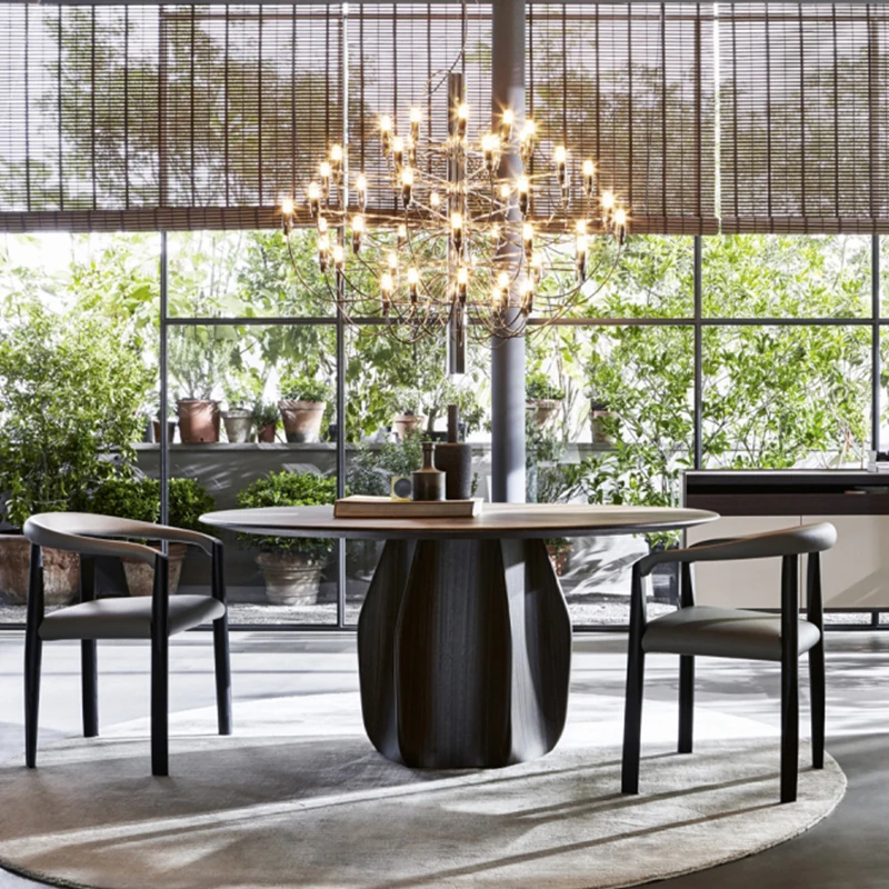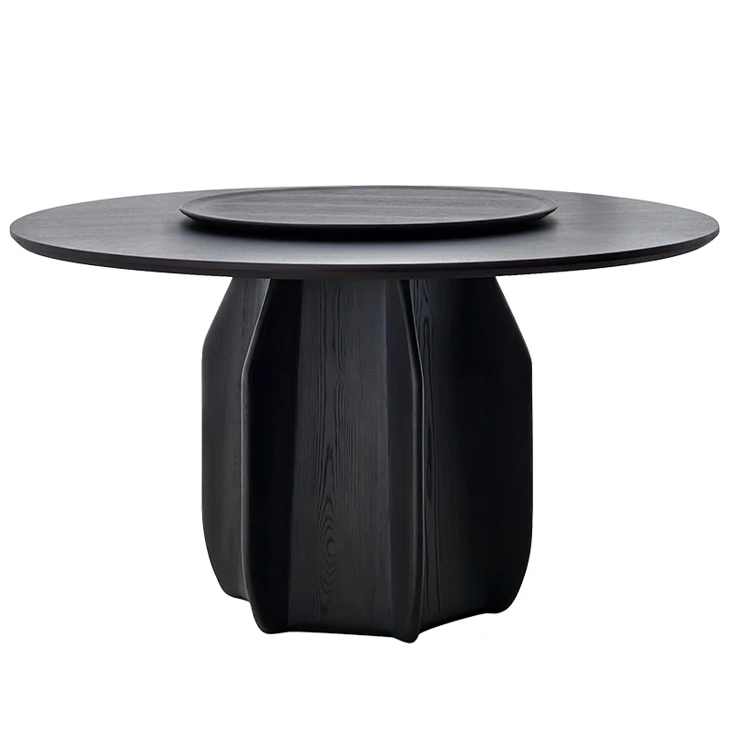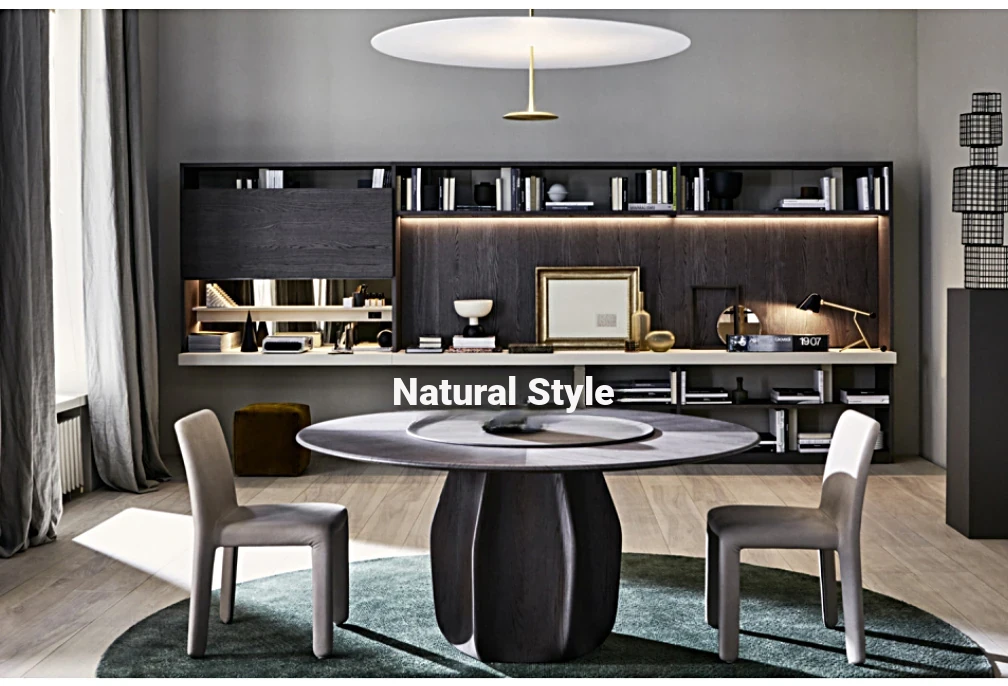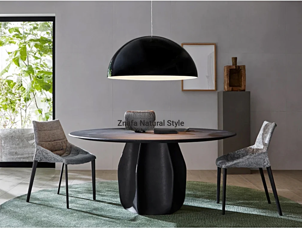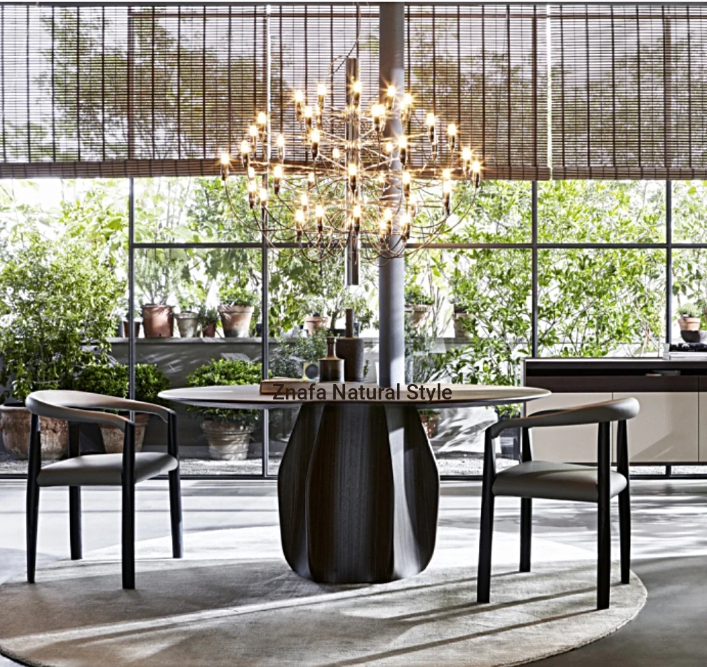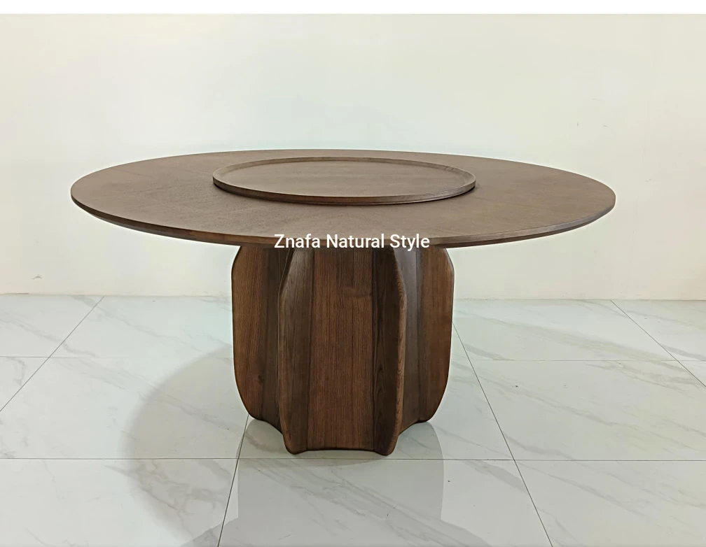 Natural Style Italian Minimalist Round Dining Table with Marble Top and Lazy Susan - Premium Ash Wood Design for Modern Homes, Perfect for Elegant Dining Experiences