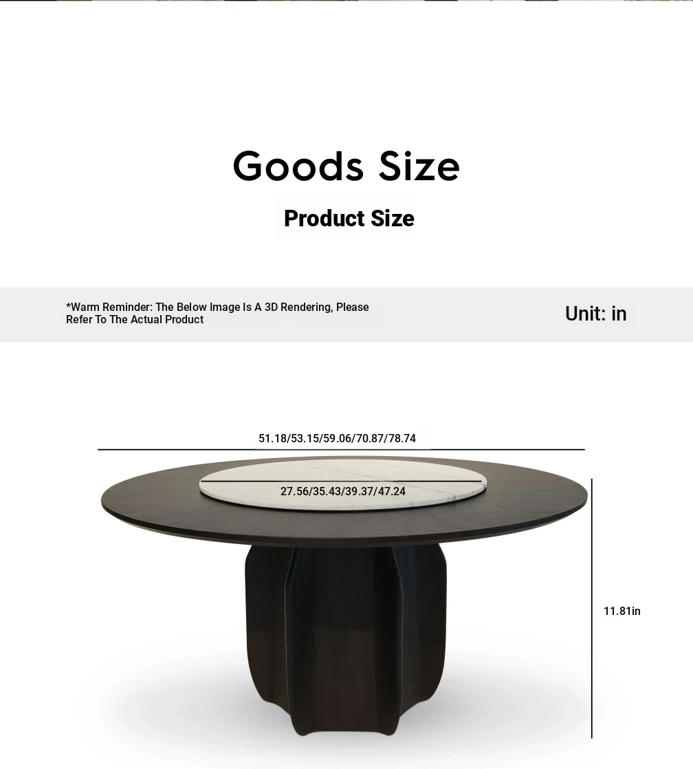 51.18 in [White wax floor + natural marble floor] 70 natural marble turntable