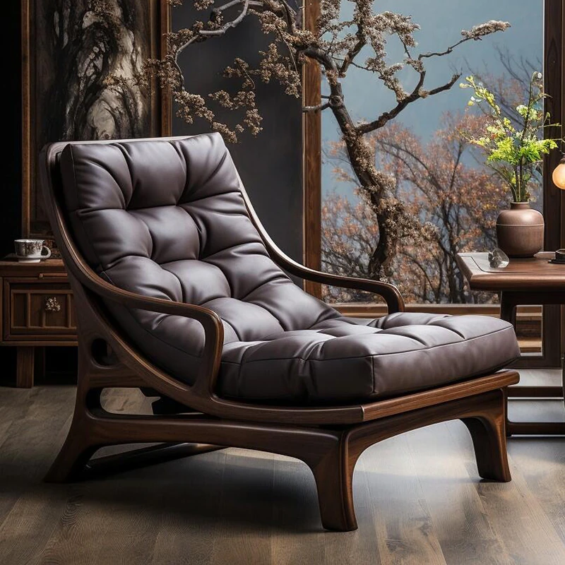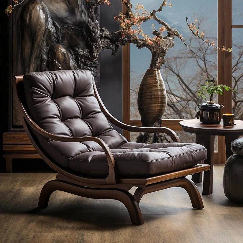 New Chinese Style Solid Wood Leisure Chair - Single Sofa in Walnut Finish, Modern Minimalist Design with Luxurious Touch, Tiger Chair - Perfect for Elegant Living Spaces