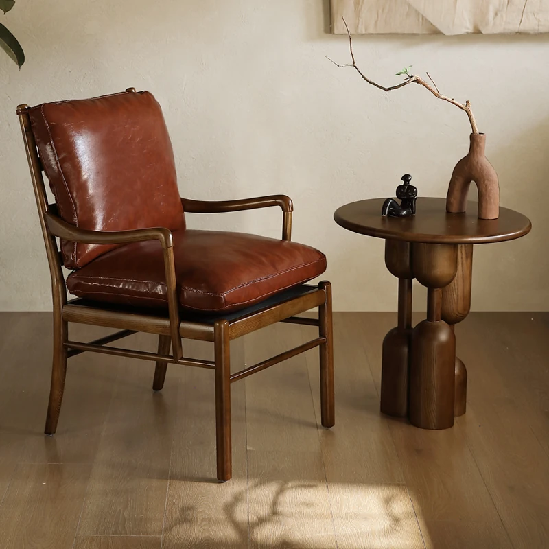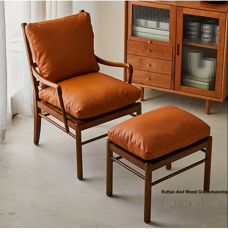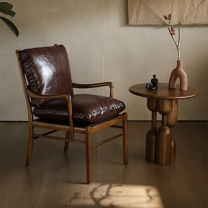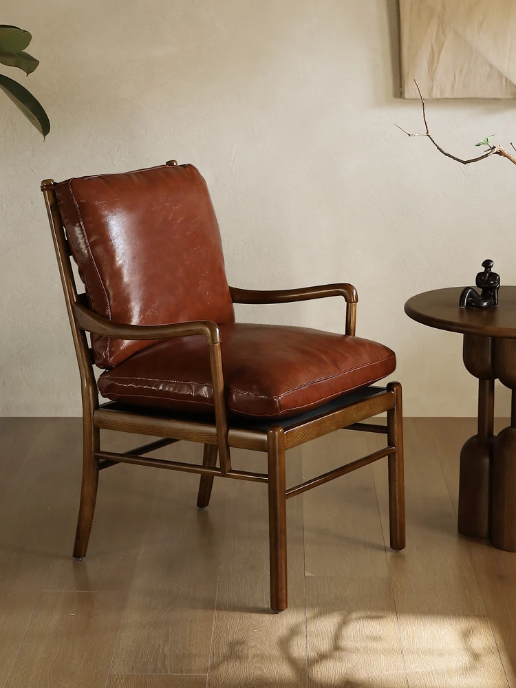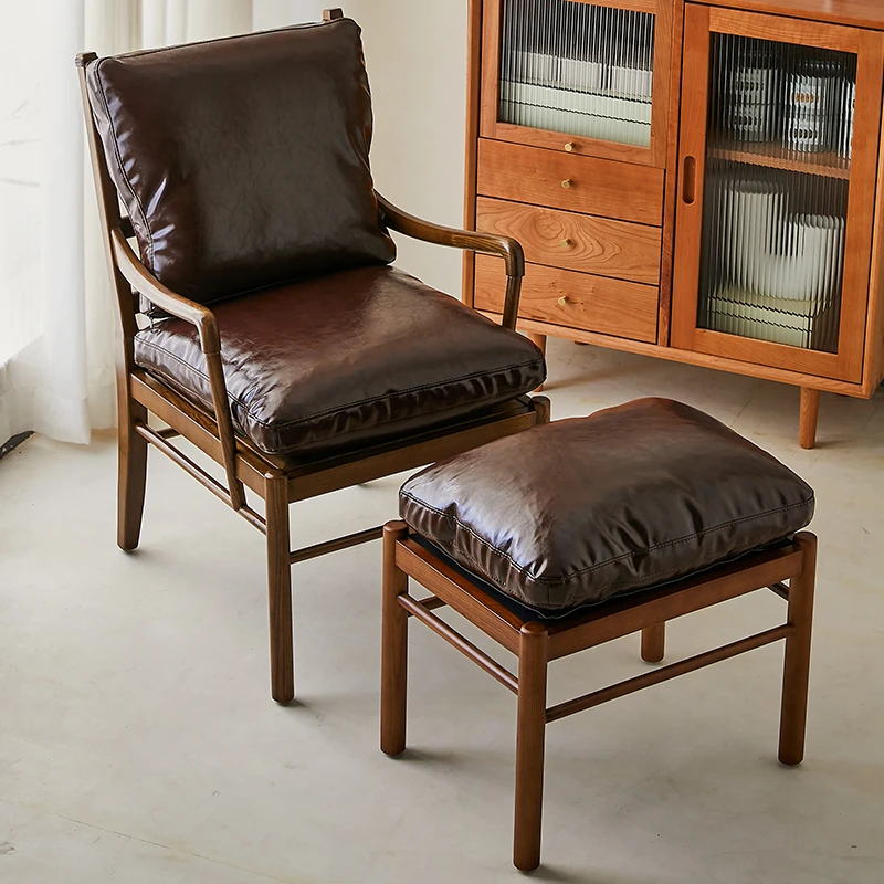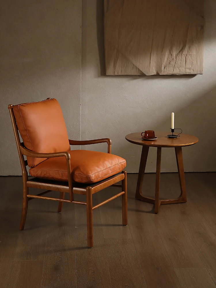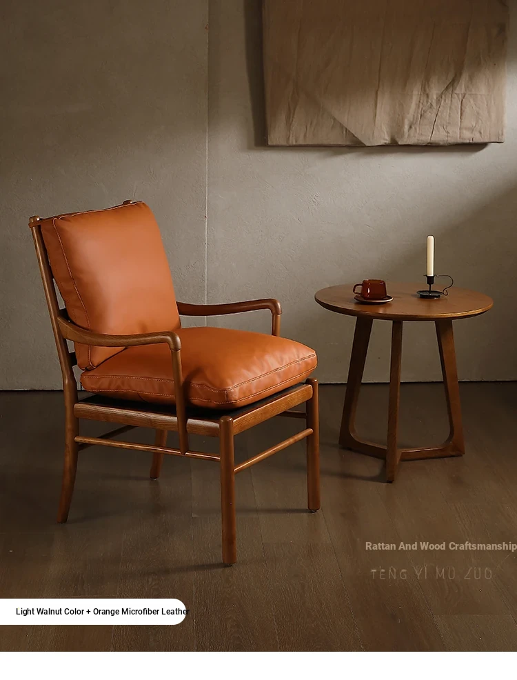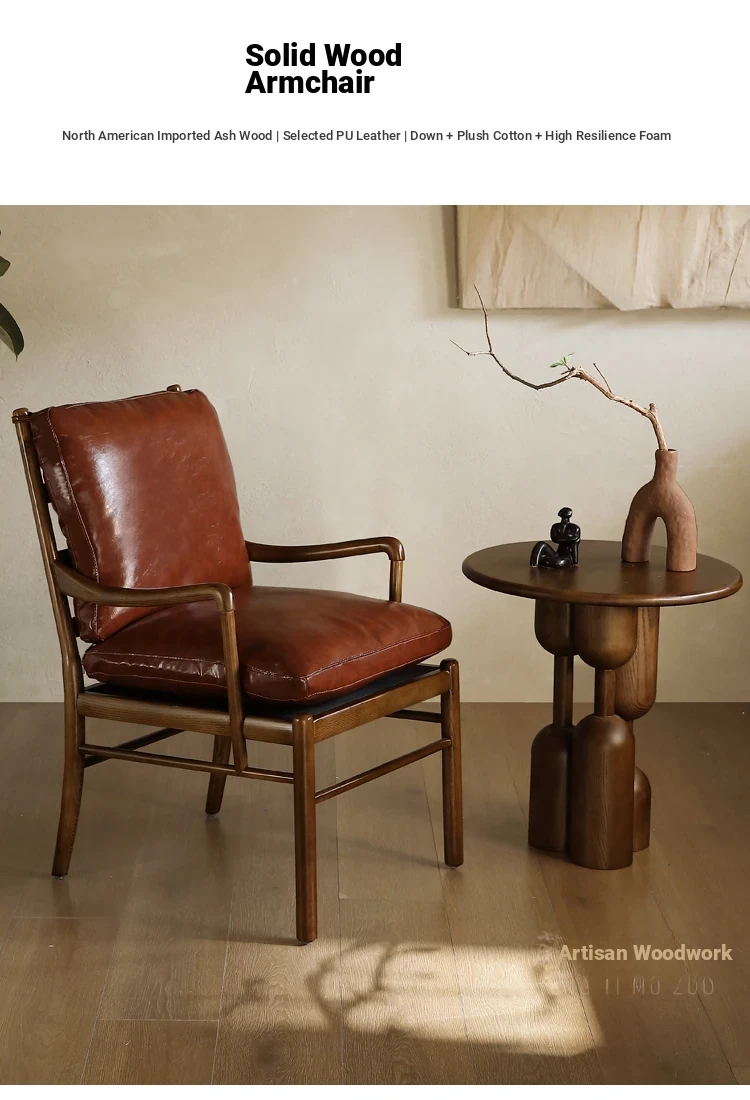 Nordic Armrest Single Chair - Designer Wabi-Sabi Style, Solid Wood Sofa Chair with Down-Filled Backrest, White Ash Leisure Chair for Cozy Spaces