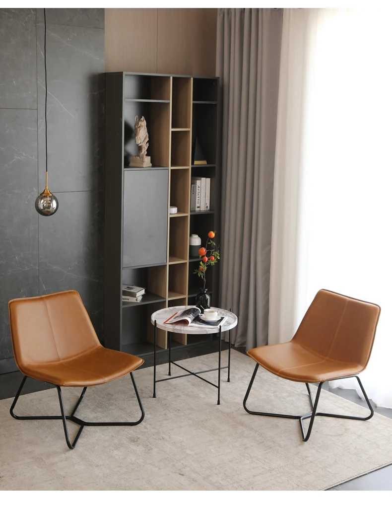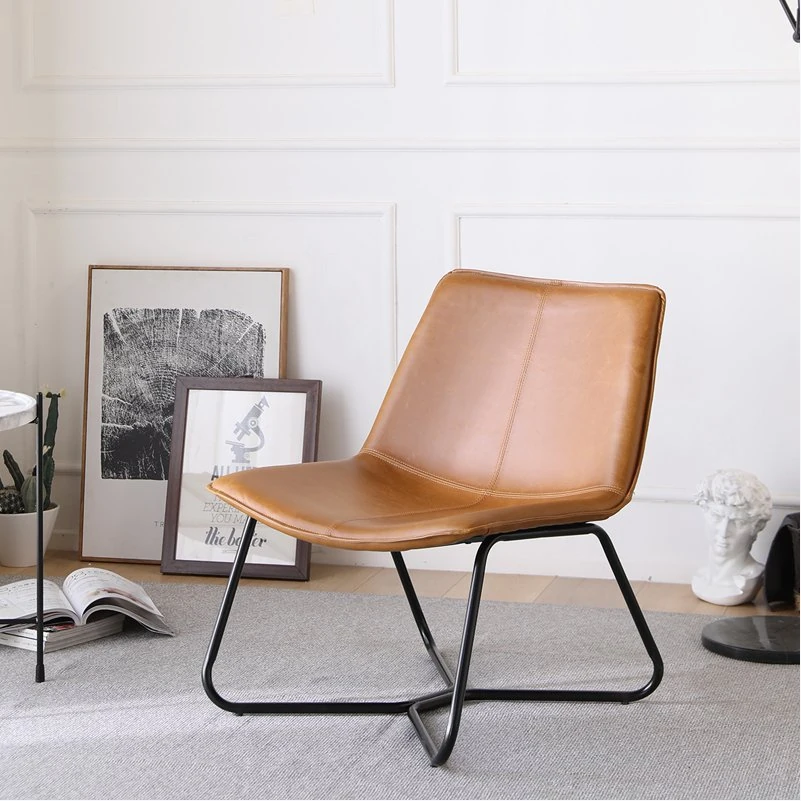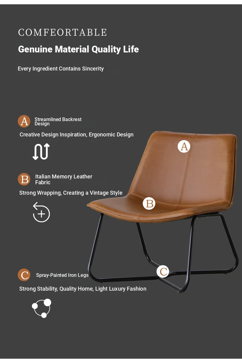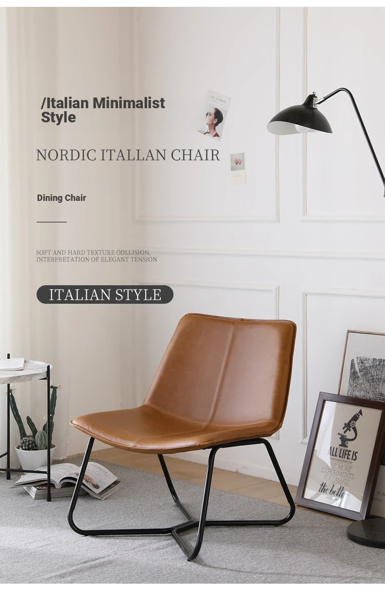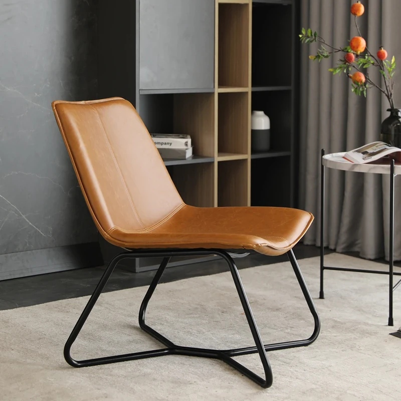 Nordic Design Minimalist Orange Sofa Chair - Affordable Luxury Leather Armchair for Small Spaces, Perfect for Home and Balcony Relaxation