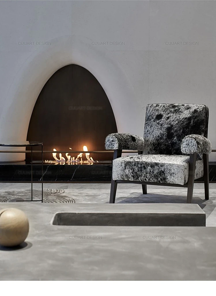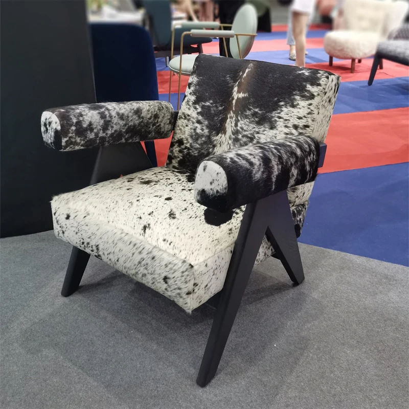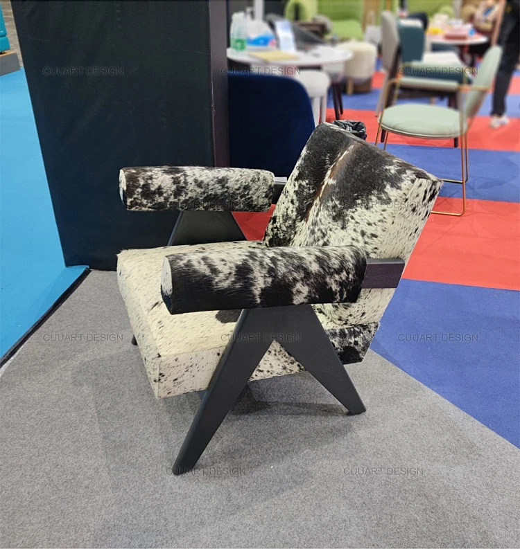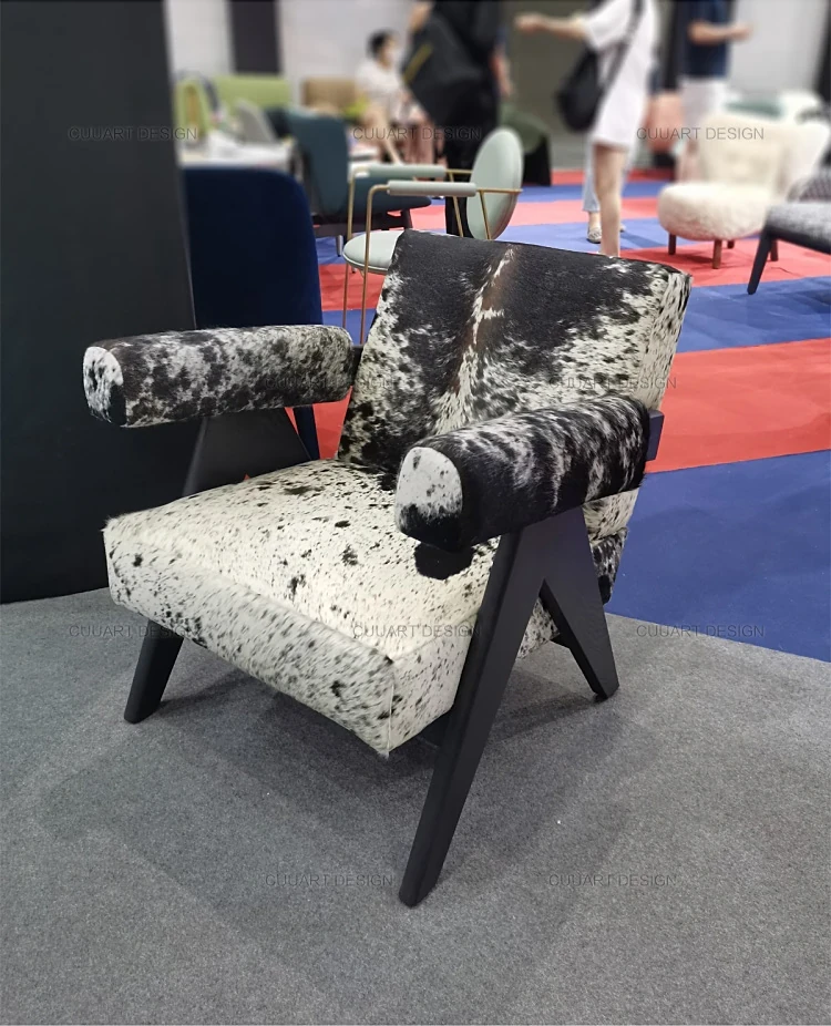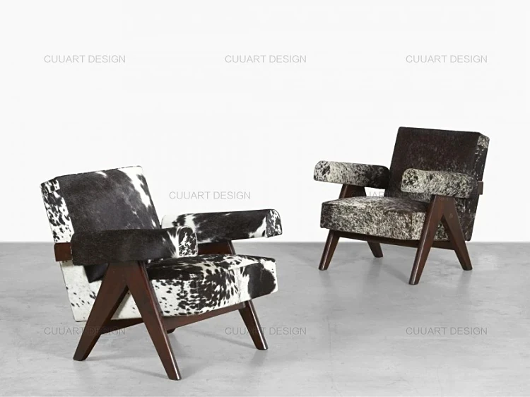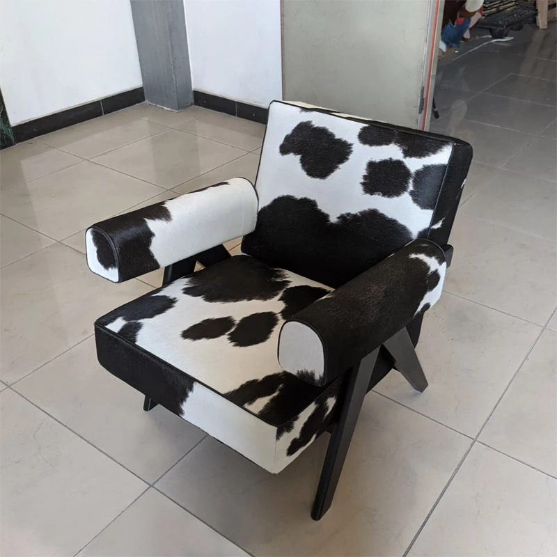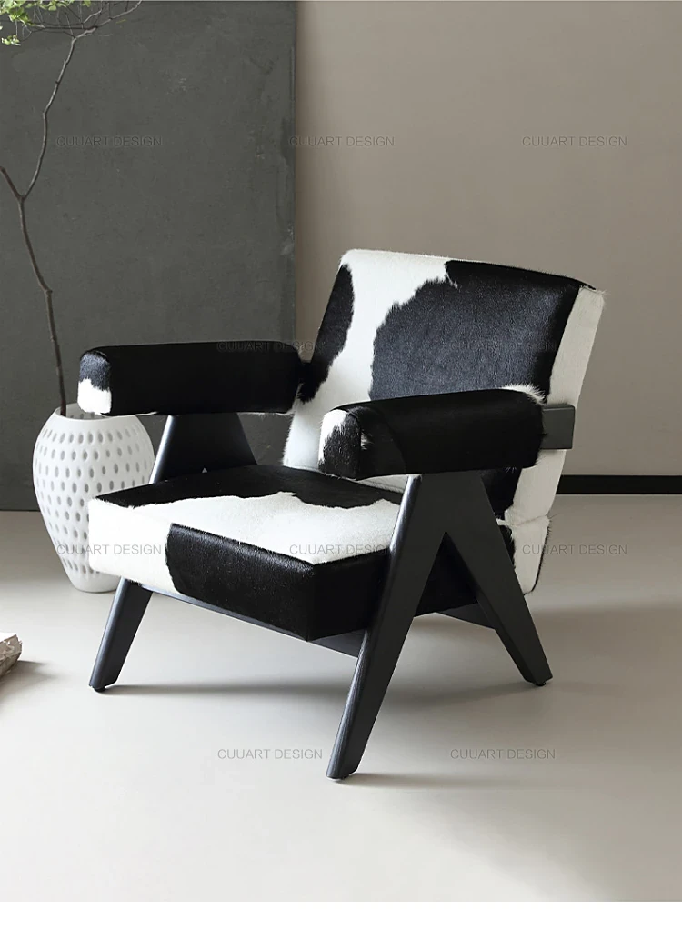 Nordic Designer Leather Armchair - Genuine Cowhide Accent Chair for Living Room, Chandigarh Style, Solid Wood Relaxation Chair