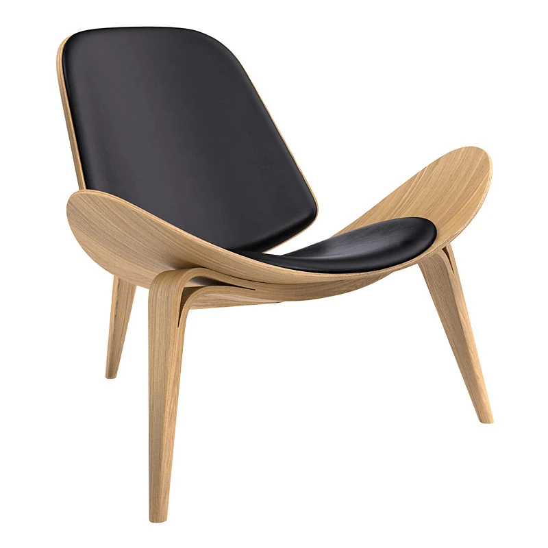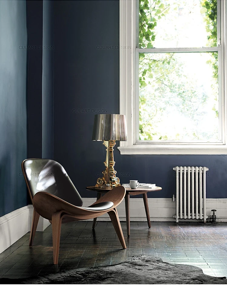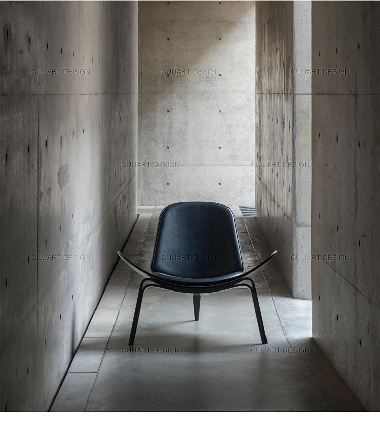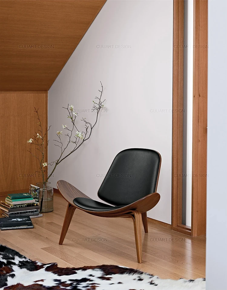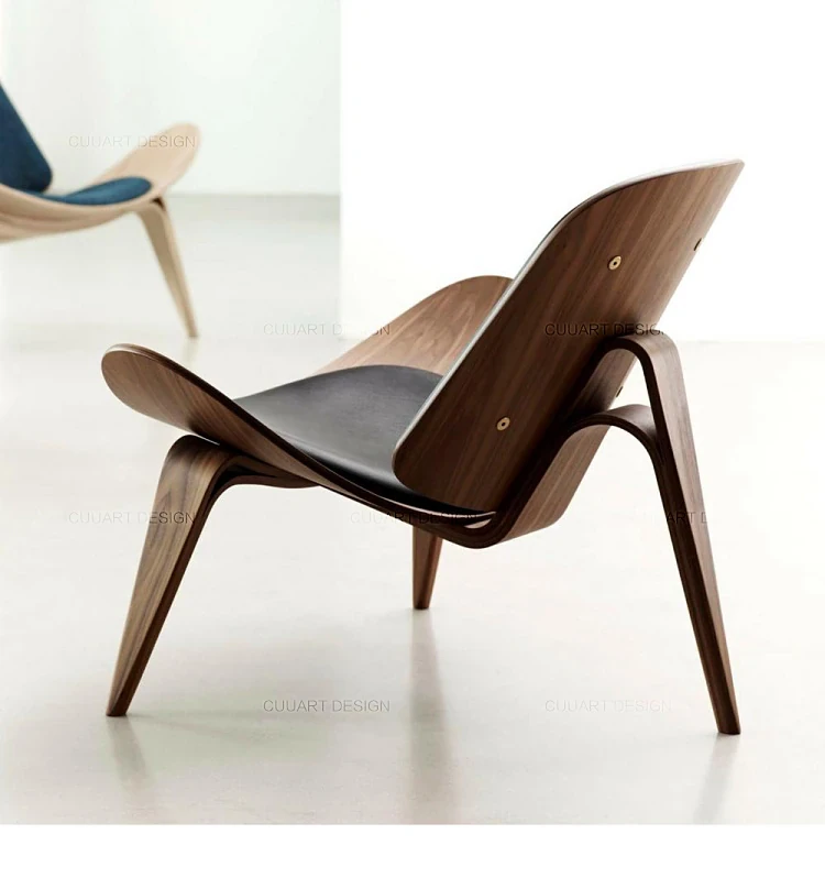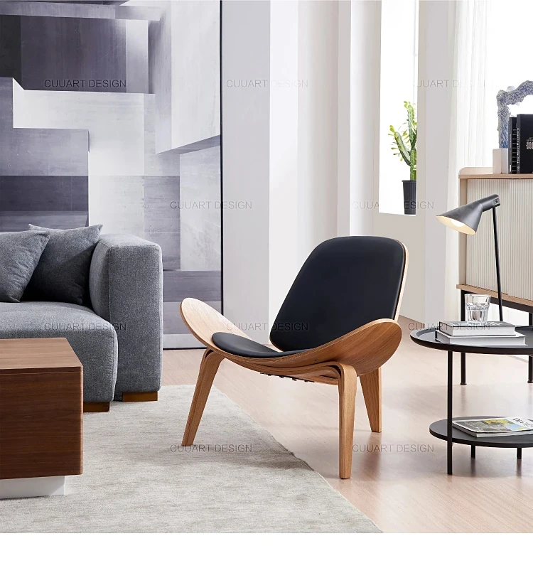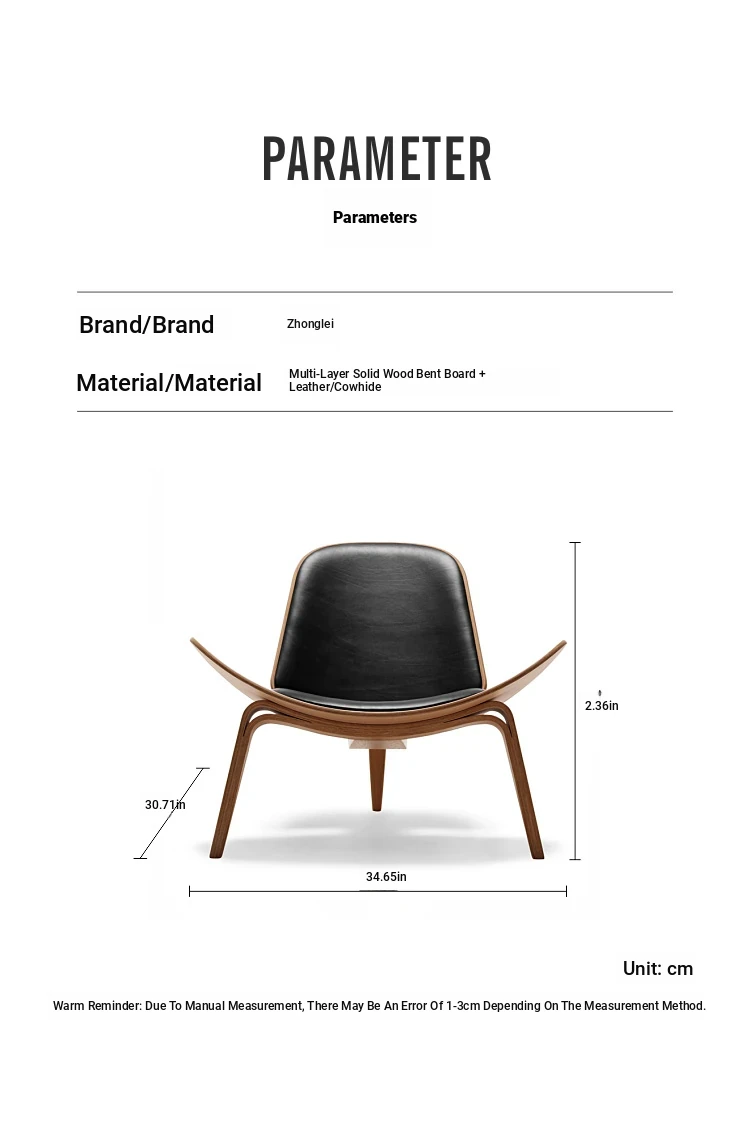 Nordic Designer Shell Chair - Single Seater Solid Wood Lounge Chair with Genuine Leather Upholstery - Perfect for Living Room Relaxation and Style