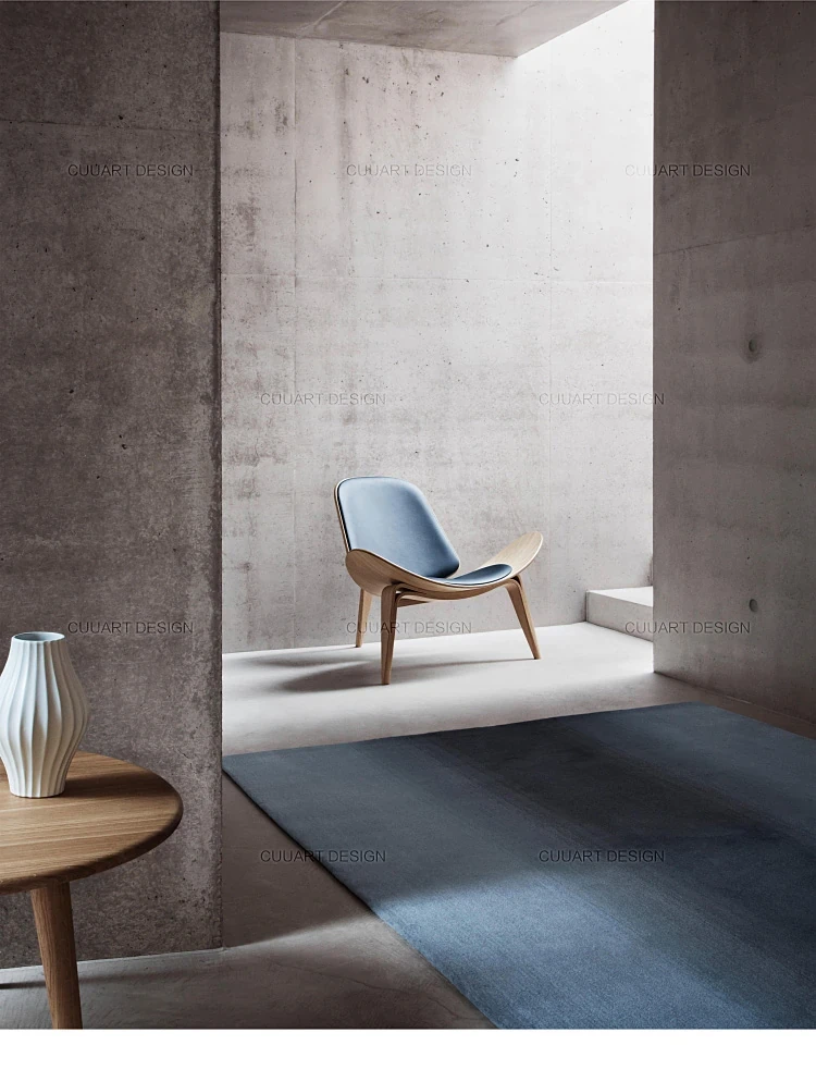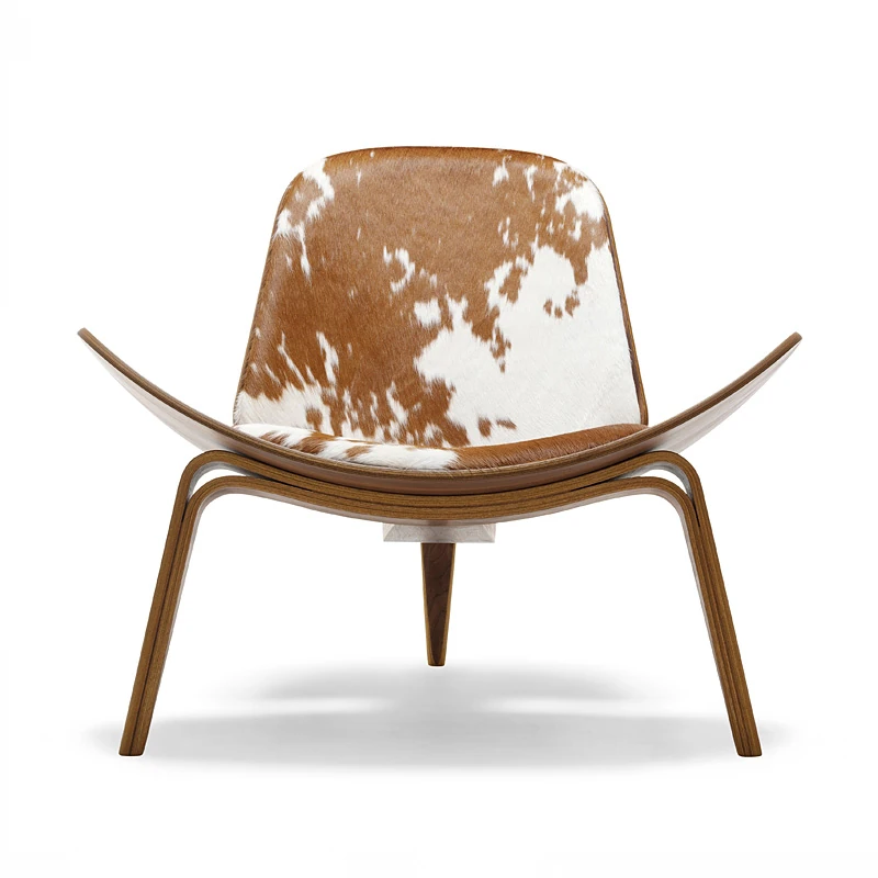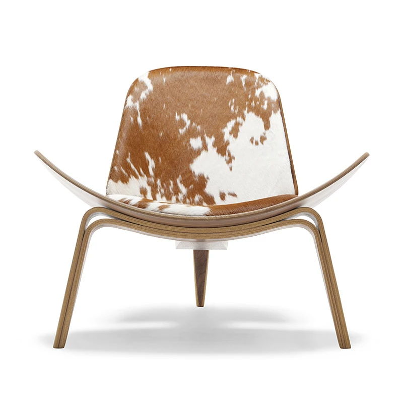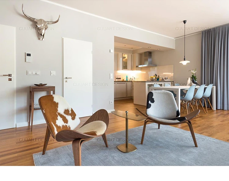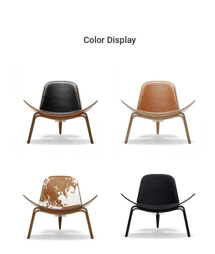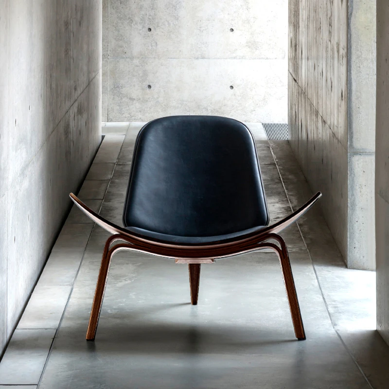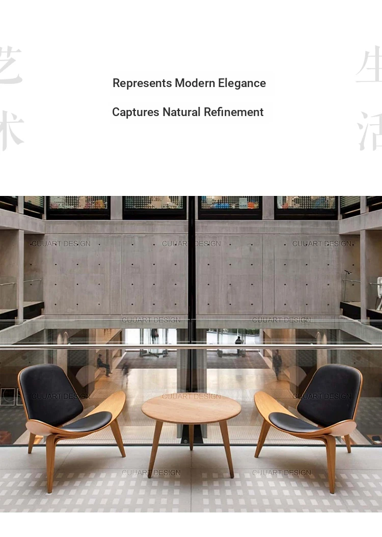 Nordic Designer Shell Chair - Single Seater Solid Wood Lounge Chair with Genuine Leather Upholstery - Perfect for Living Room Relaxation and Style