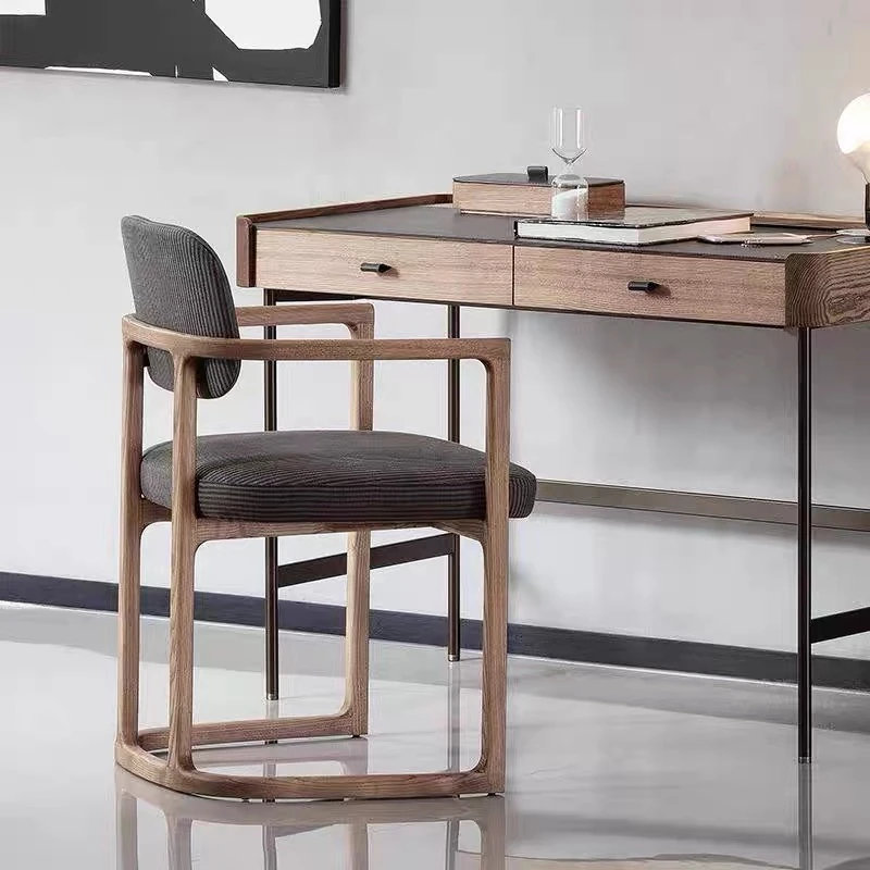 Nordic Minimalist Solid Wood Dining Chair - Modern Luxury Fabric Coffee Chair for Hotels and Home Use, Perfect for Meeting Tables and Study Desks with Comfortable Backrest