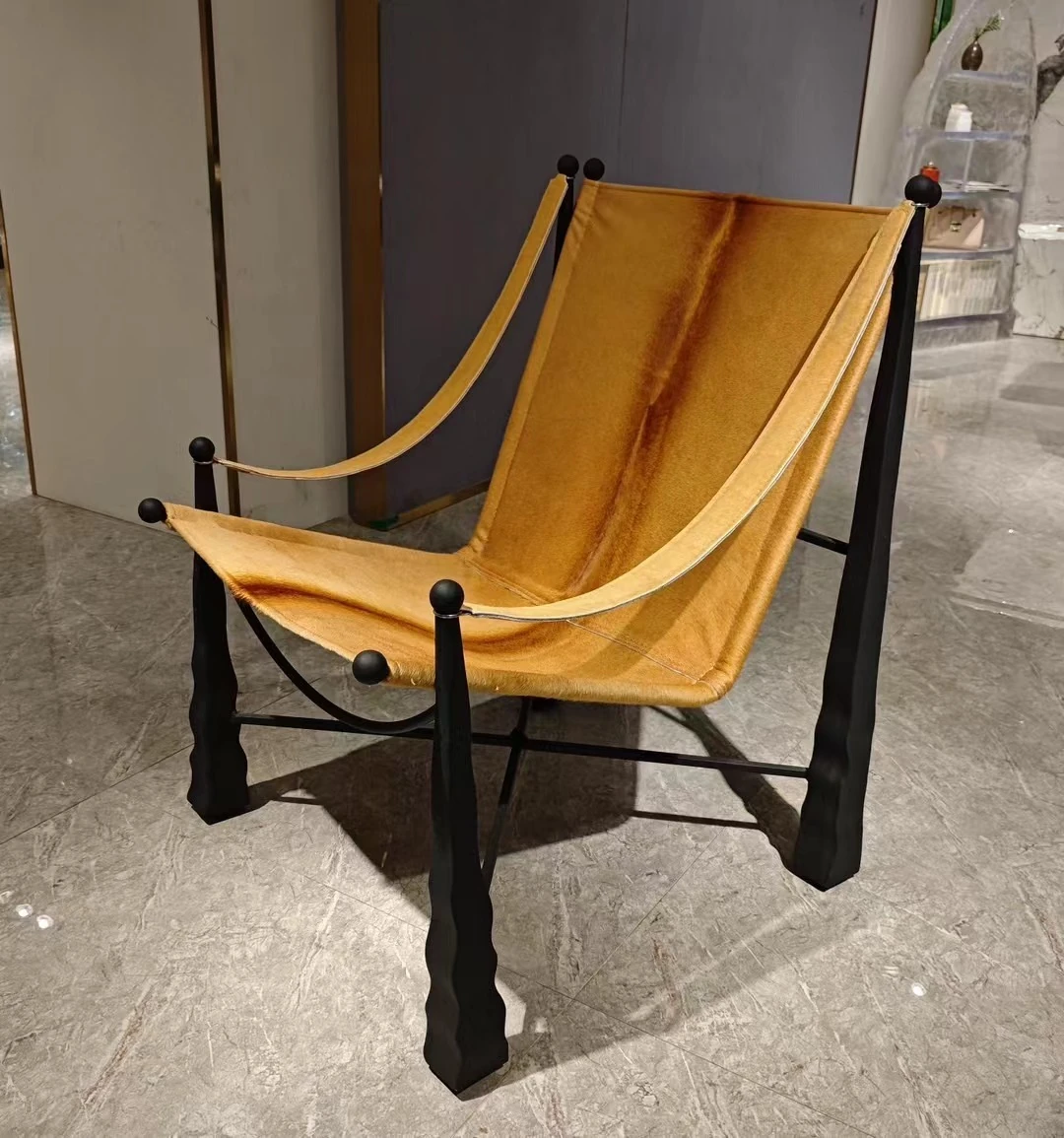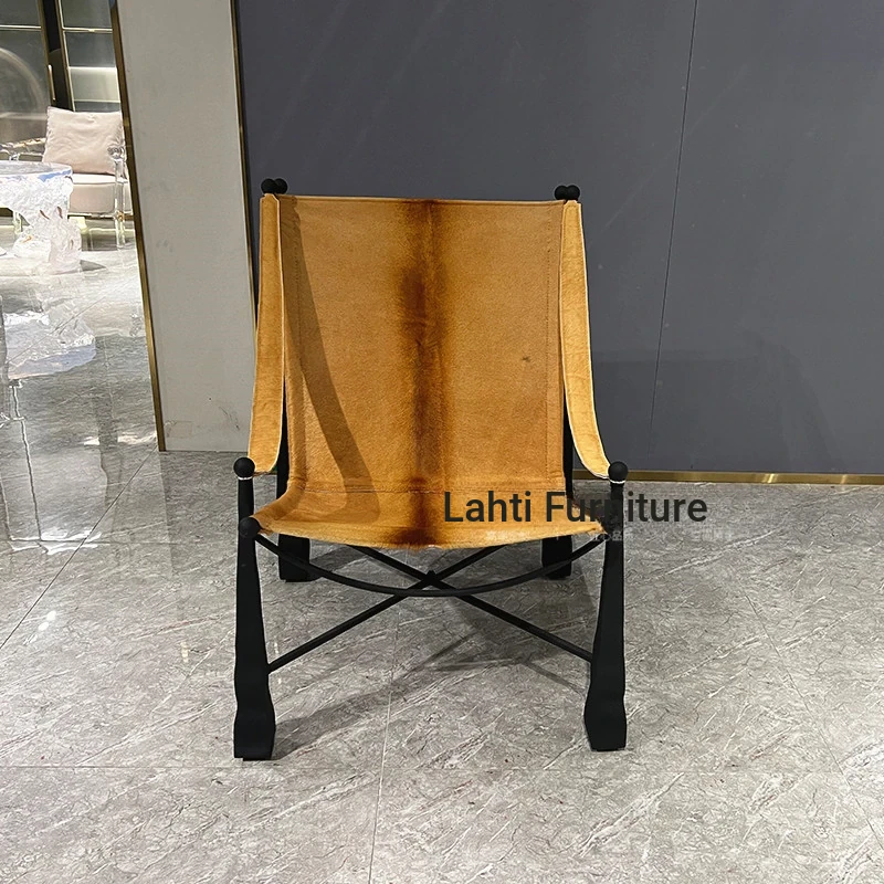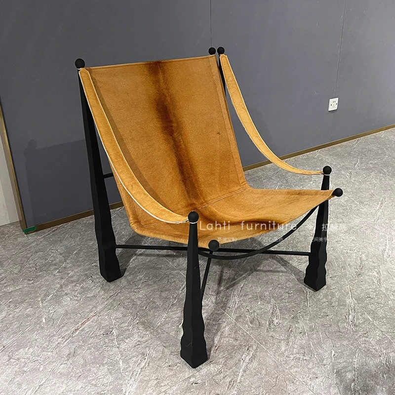 Nordic Modern Designer Leisure Chair - Stainless Steel, Unique Shaped Armrest, Luxurious Villa Sample Room Seating for Living Room