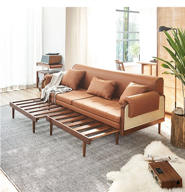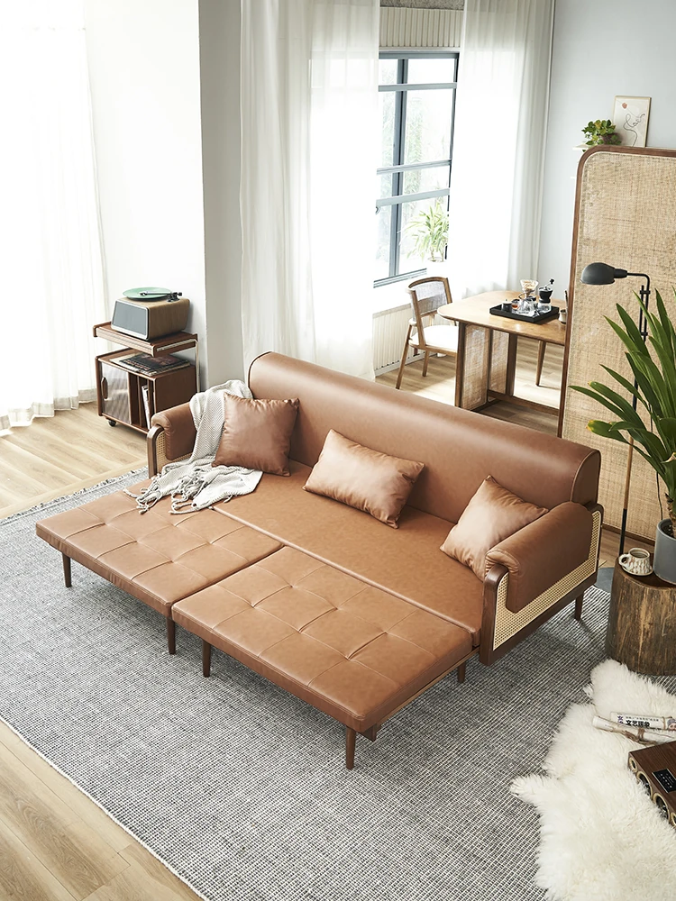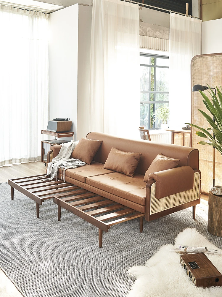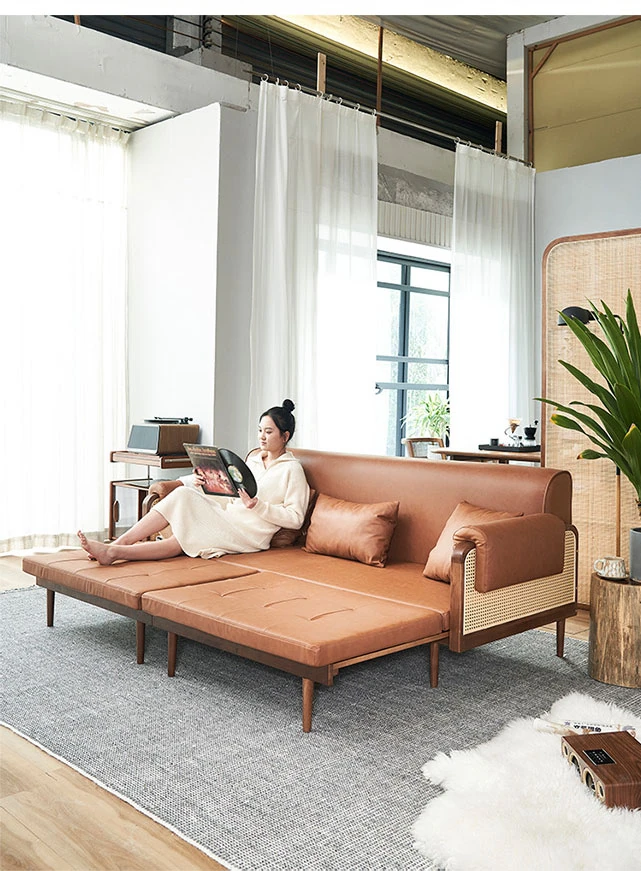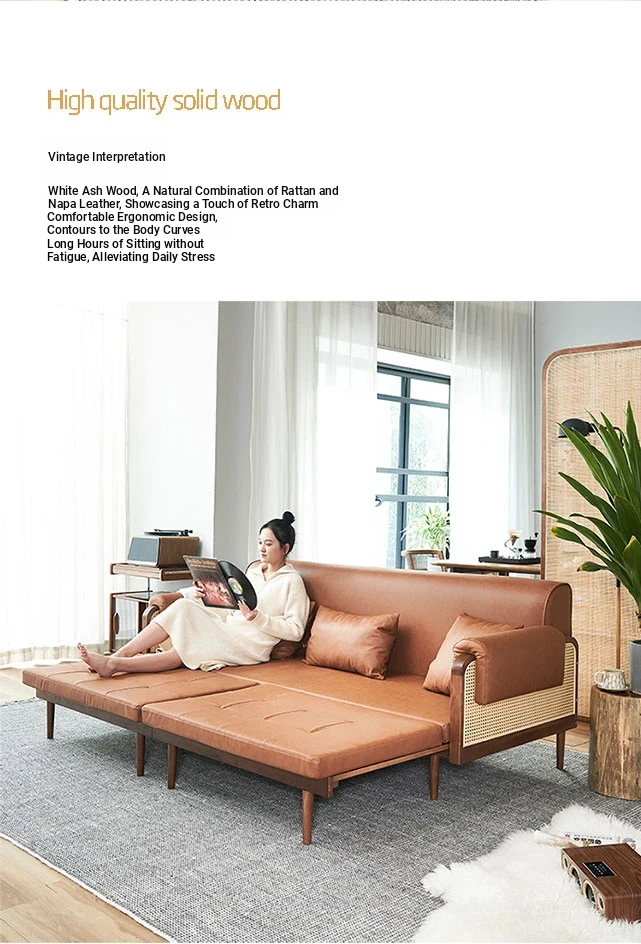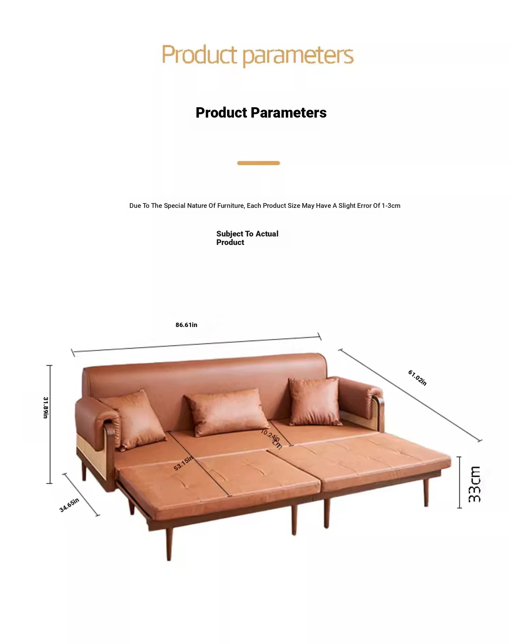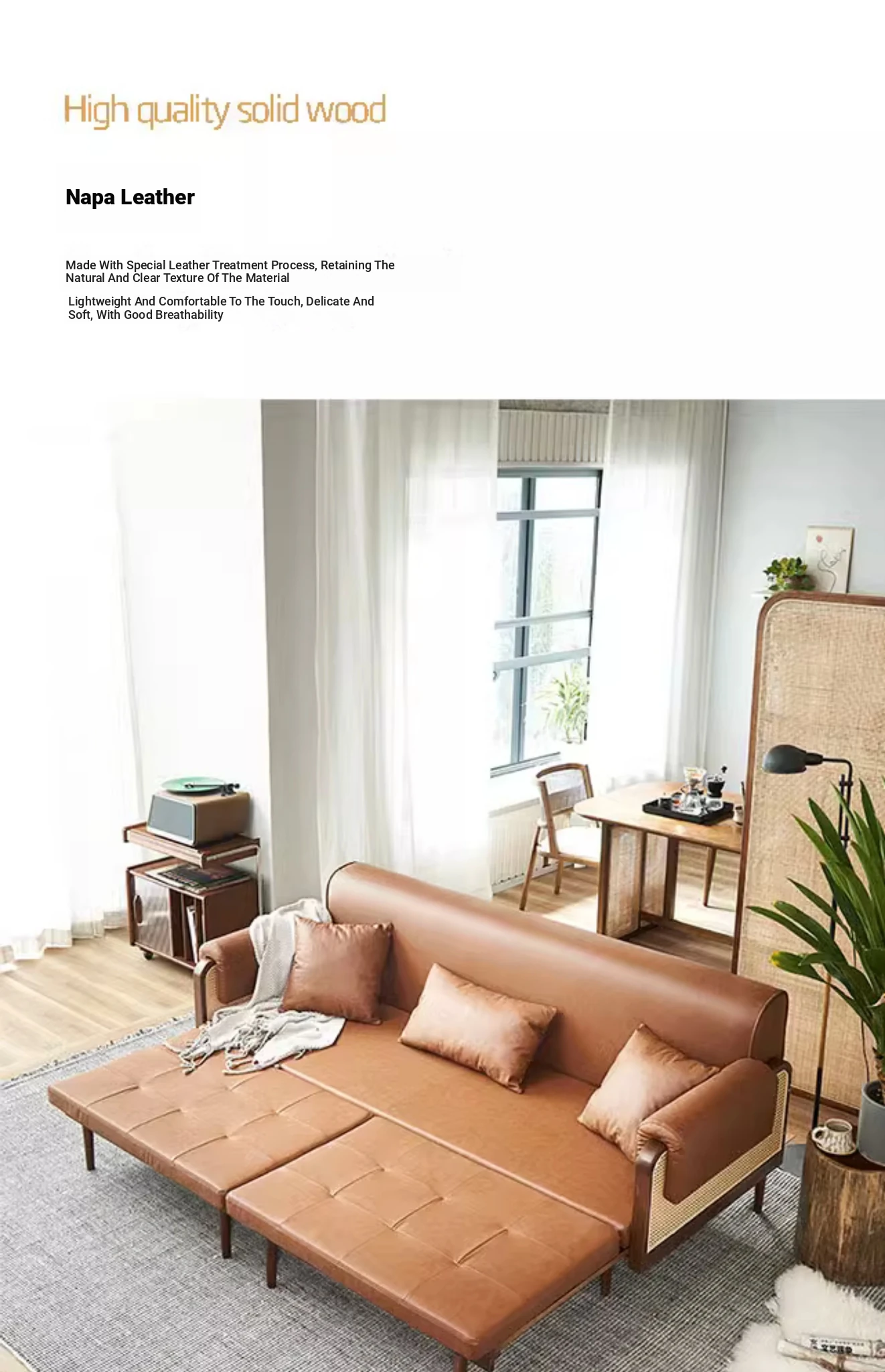 Nordic Solid Wood Sofa Bed - Foldable, Space-Saving Multifunctional 3-Seater for Small Living Rooms, Simple and Stylish Expandable Daybed