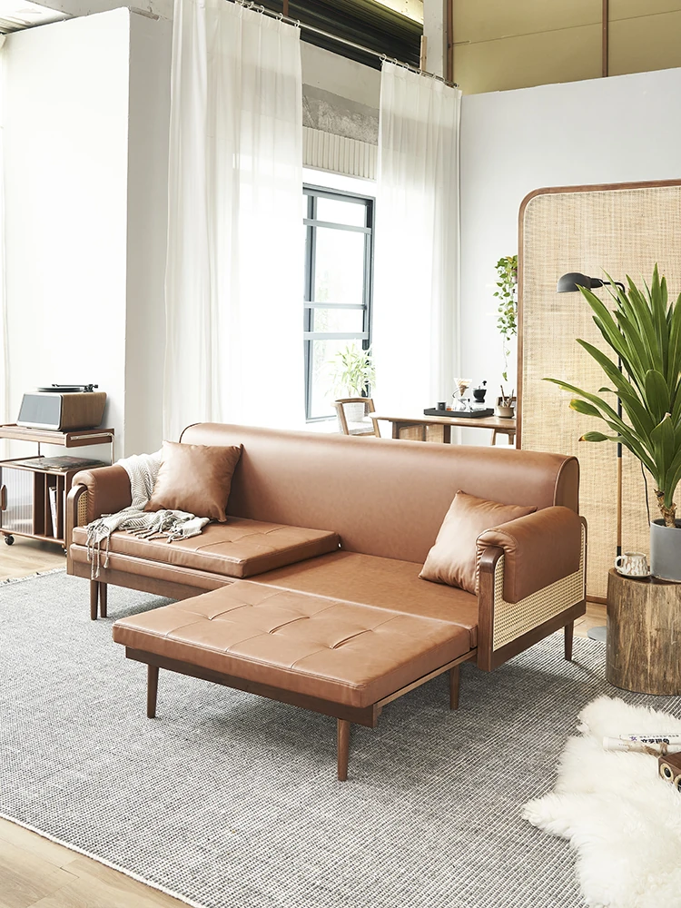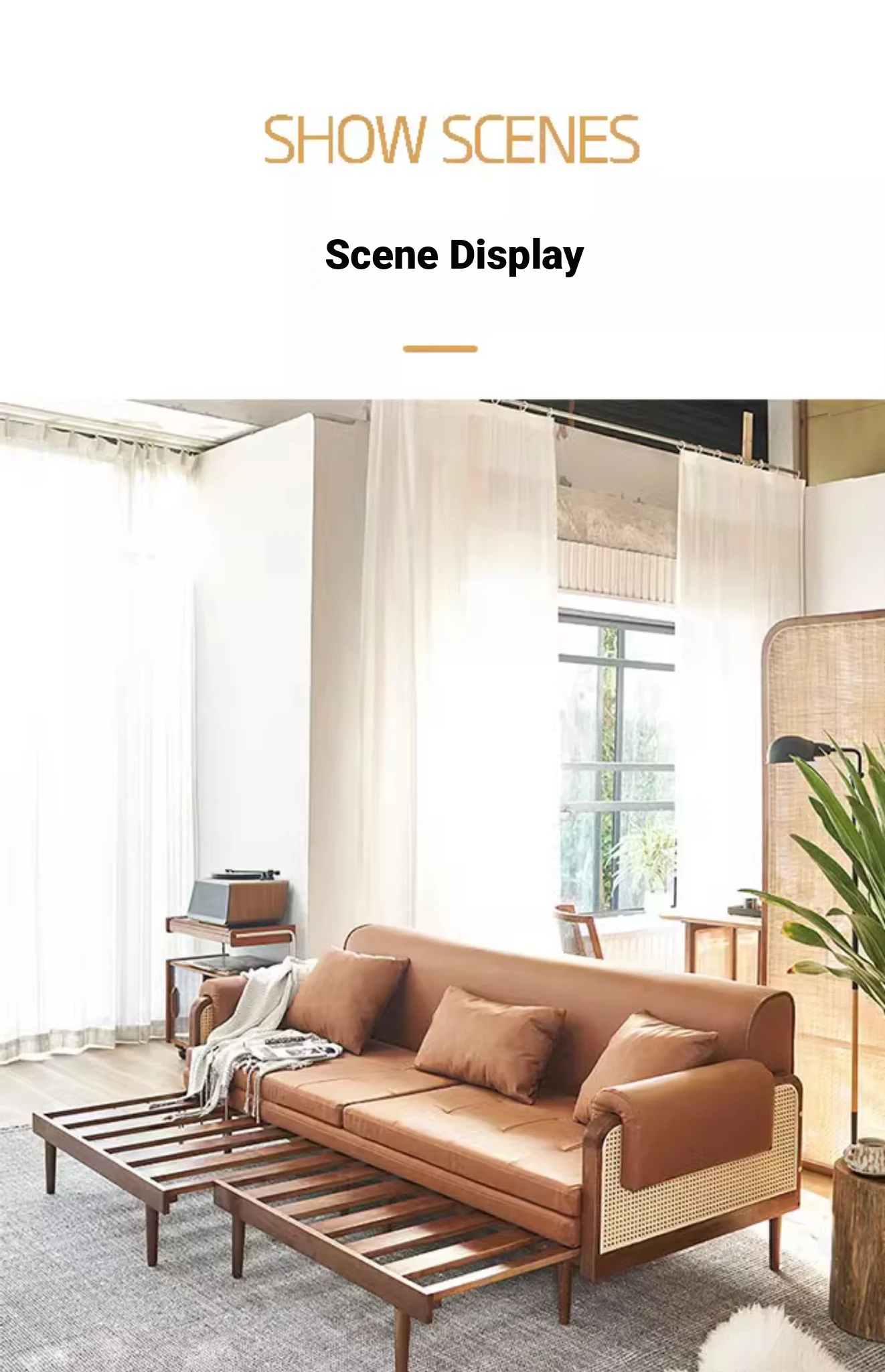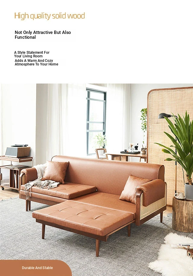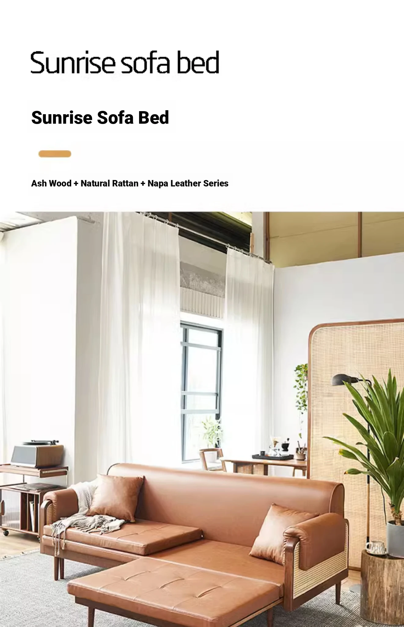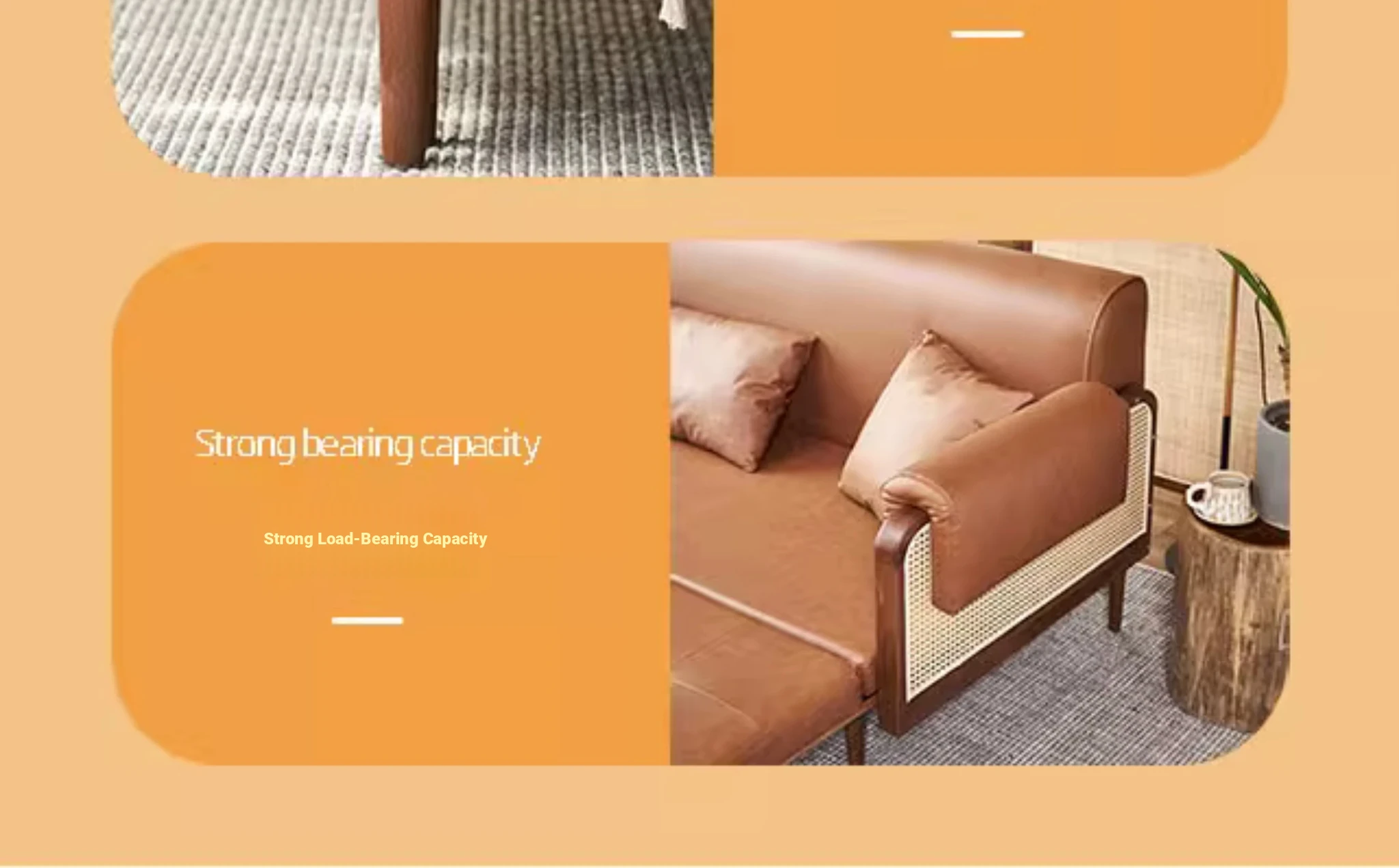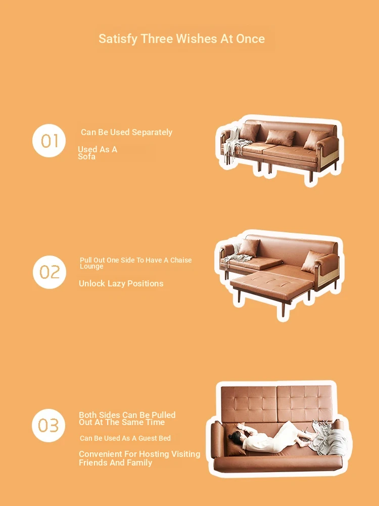 Nordic Solid Wood Sofa Bed - Foldable, Space-Saving Multifunctional 3-Seater for Small Living Rooms, Simple and Stylish Expandable Daybed