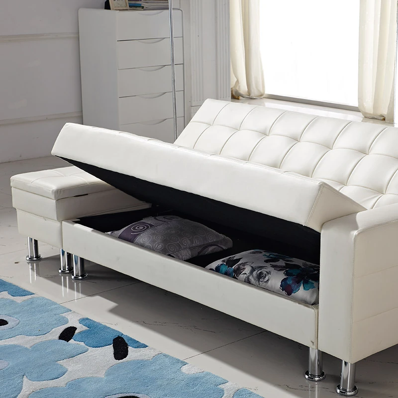 Nordic-Japanese Style Compact Faux Leather Sofa Bed - Multi-functional Foldable Corner Sofa with Chaise Lounge for Small Living Rooms