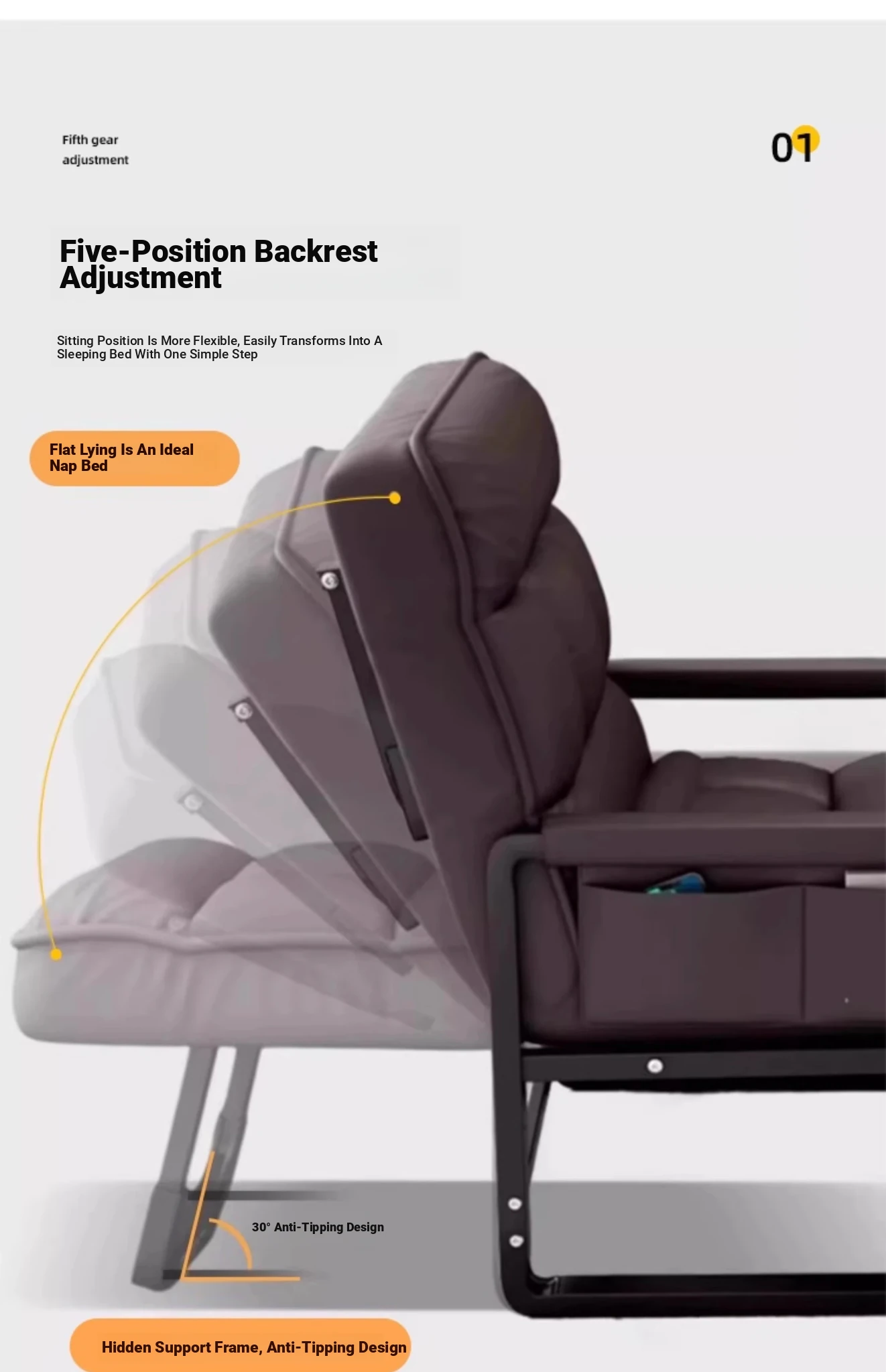 Portable Folding Recliner Chair for Office Naps – Versatile Sofa Chair for Home and Computer Use, Ideal for Relaxation and Comfort!