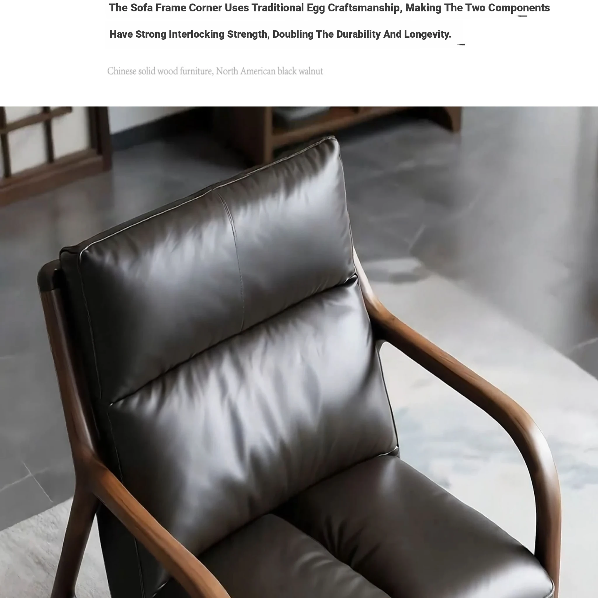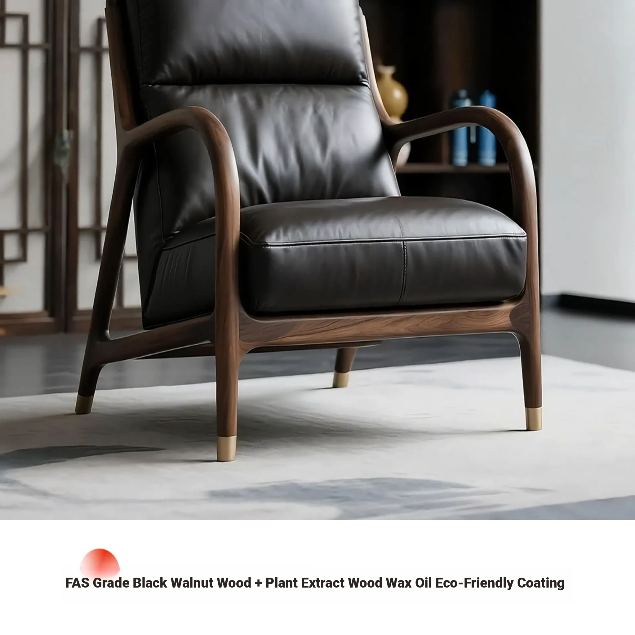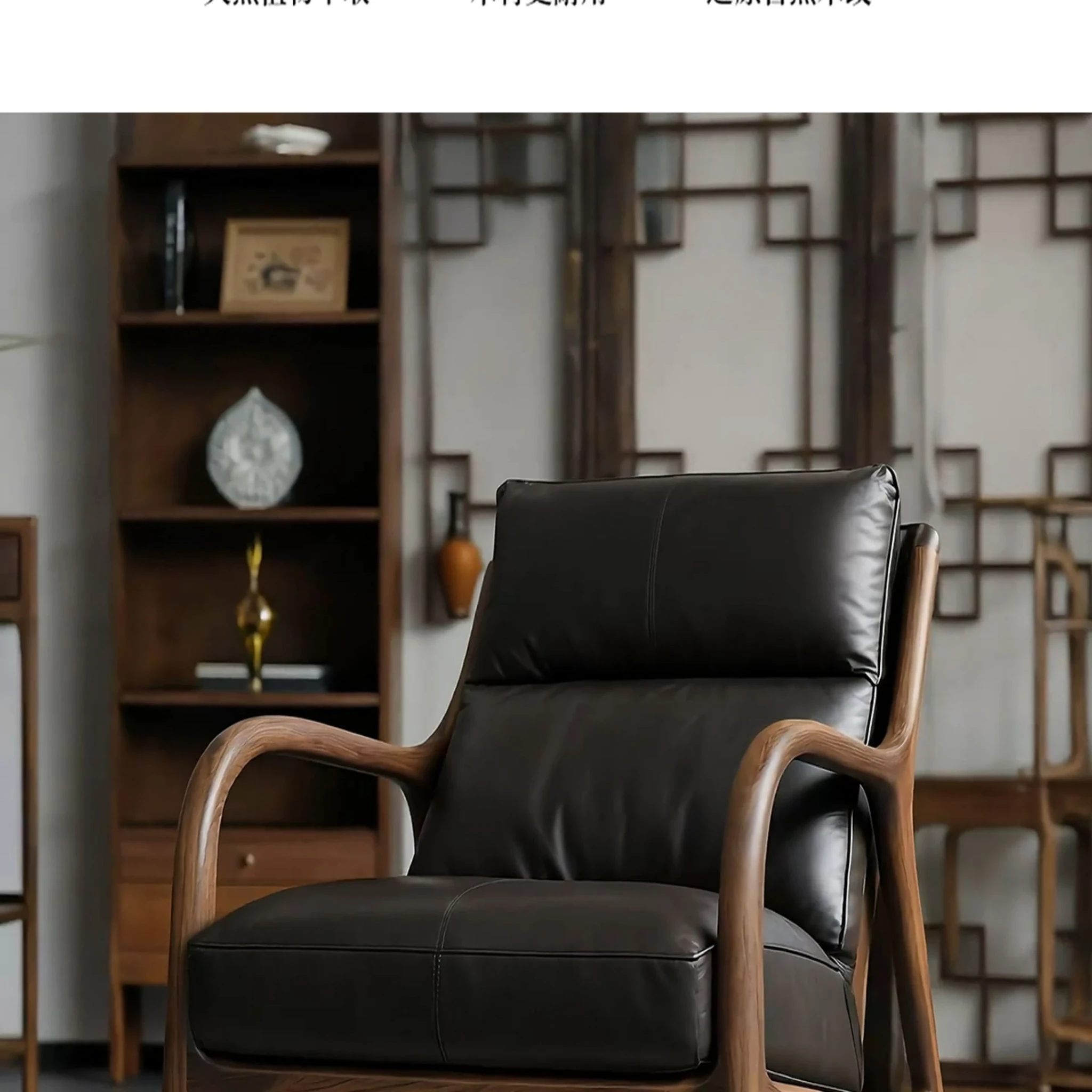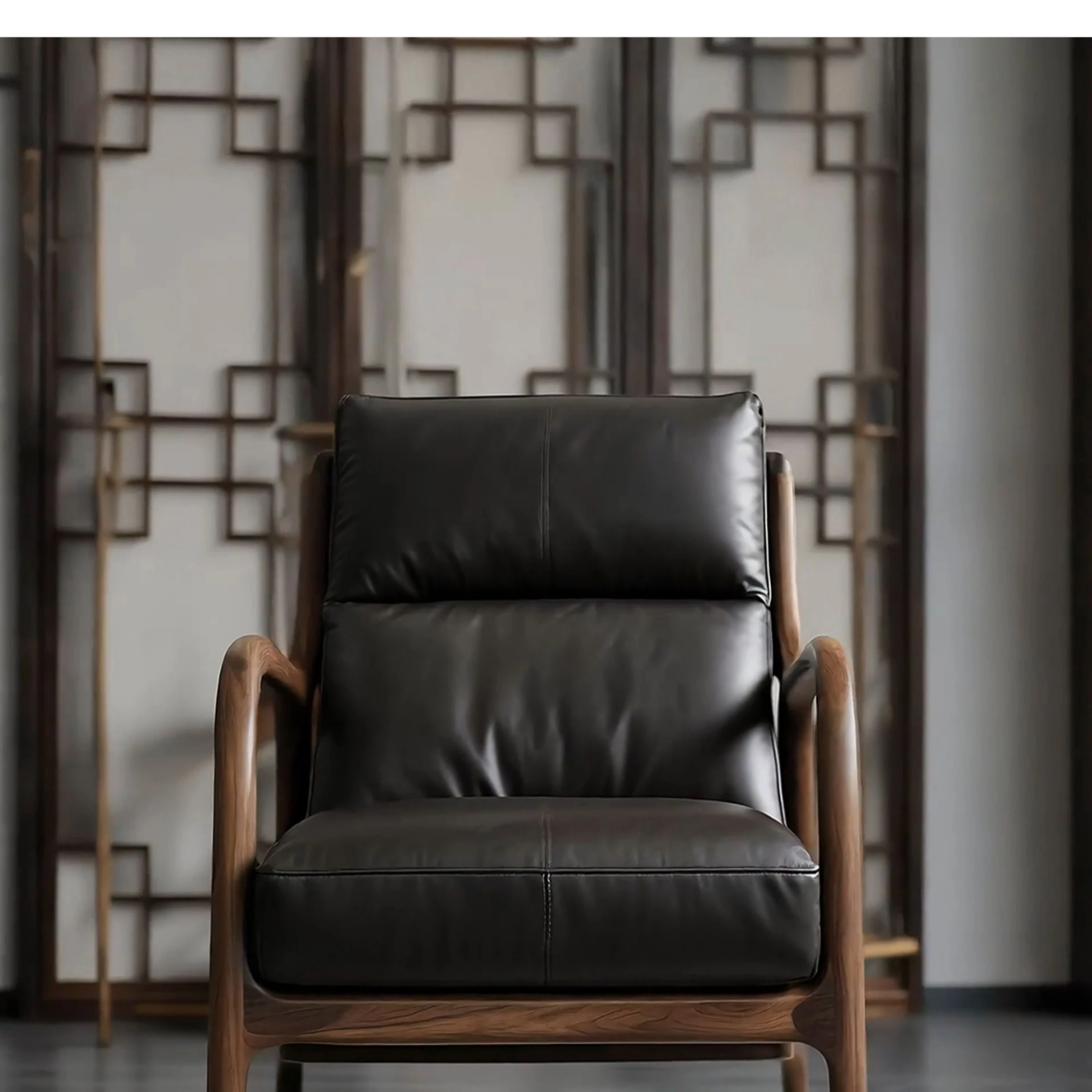 Premium North American Black Walnut Solid Wood Armchair - Genuine Leather Sofa Chair for Living Room, Minimalist High-End New Chinese Style Leisure Furniture