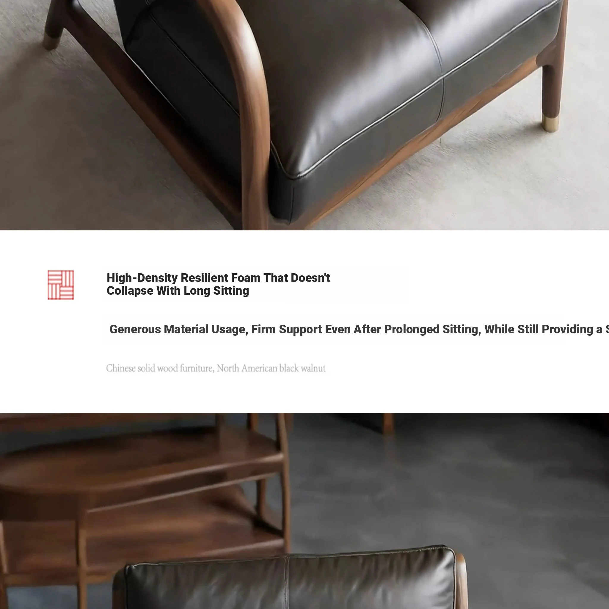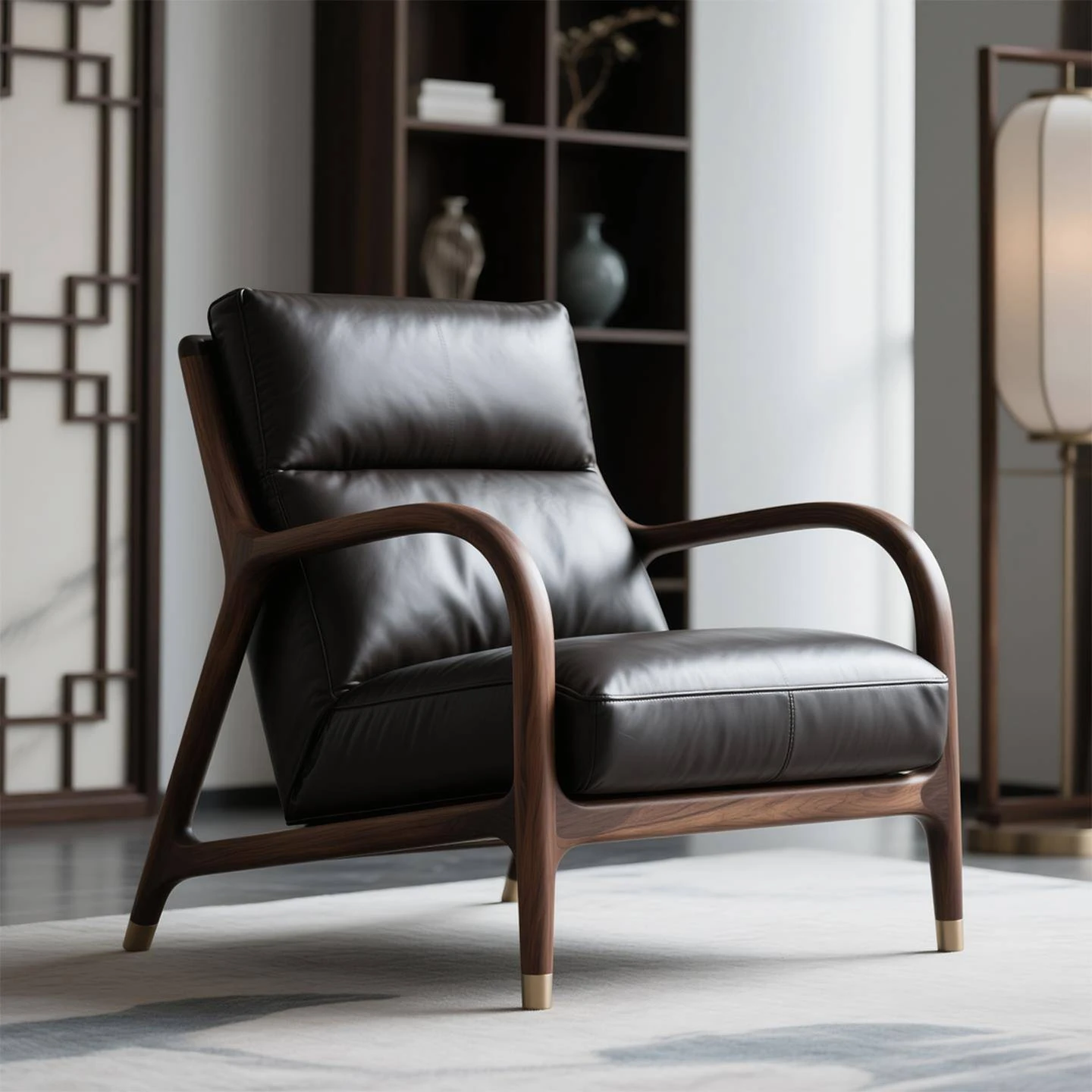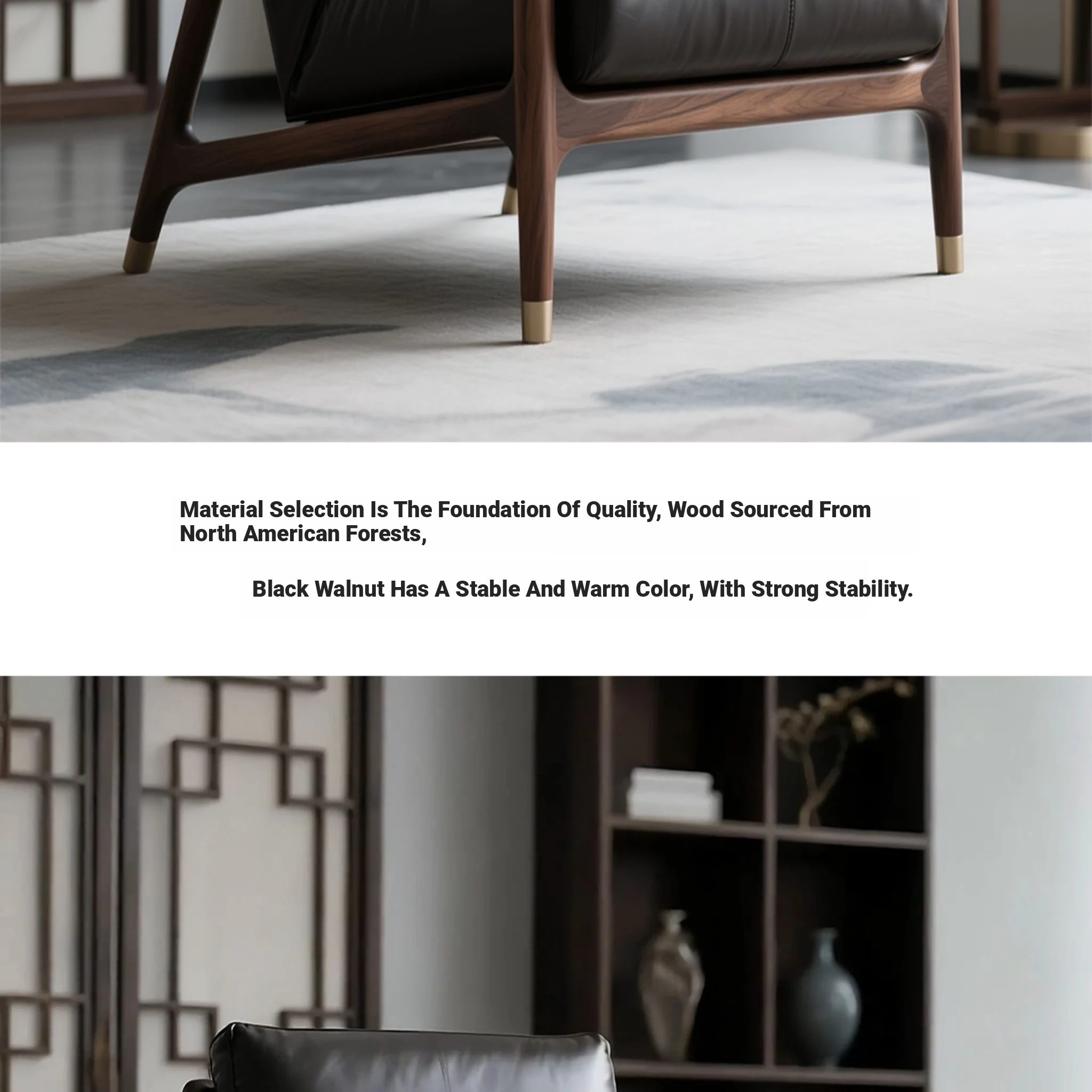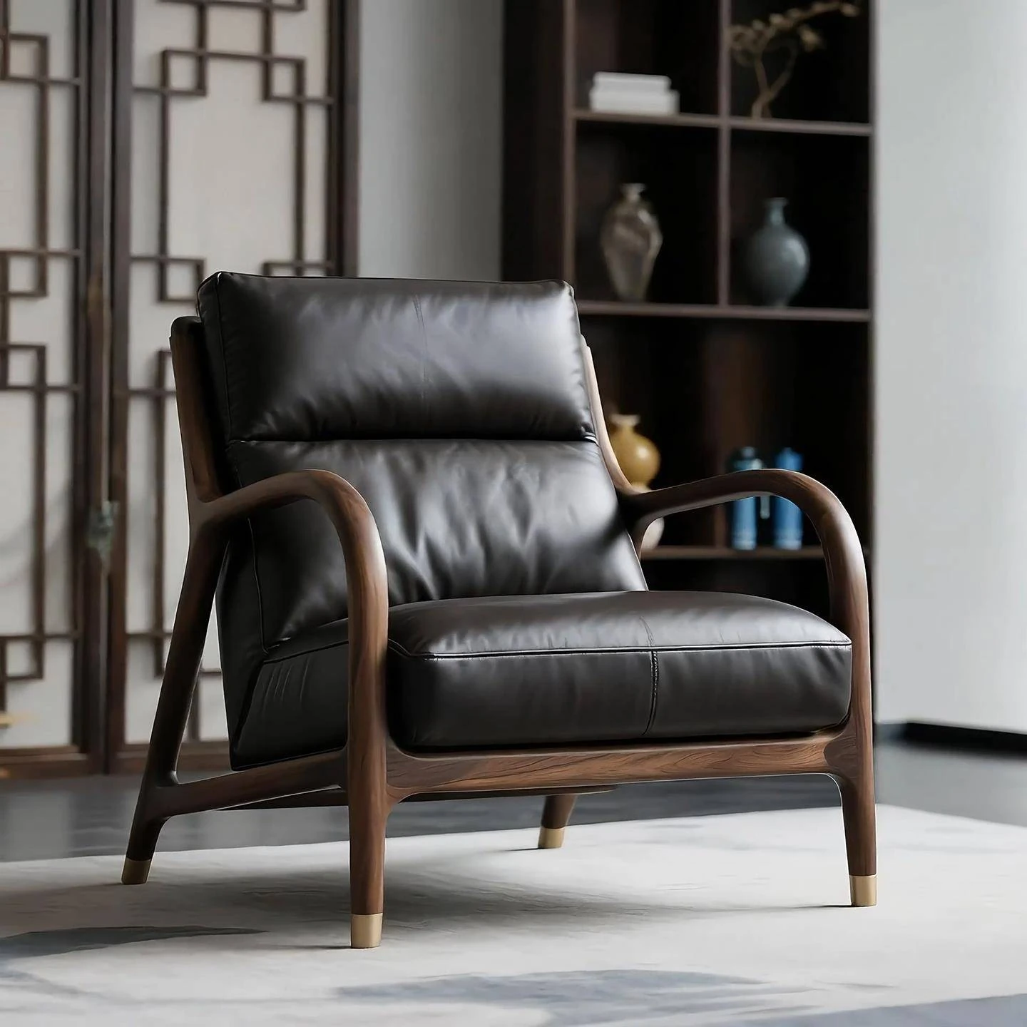 Premium North American Black Walnut Solid Wood Armchair - Genuine Leather Sofa Chair for Living Room, Minimalist High-End New Chinese Style Leisure Furniture