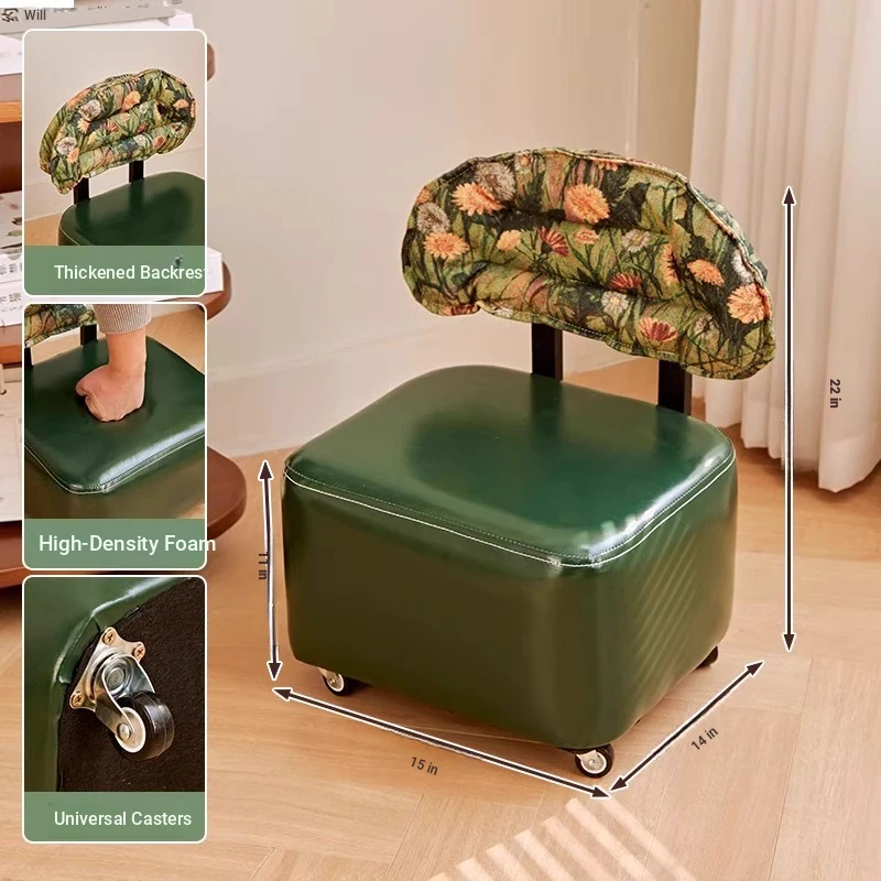 Soft bag seat surface solid wood stool-Emerald Green